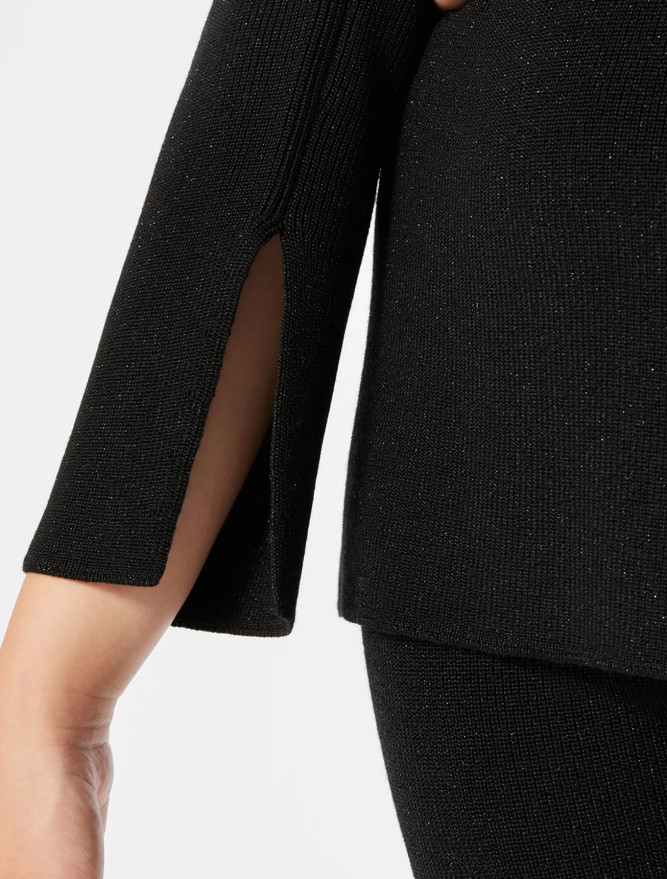 Pullover aus Viskose- und Lurexgarn in Patentmuster-Verarbeitung. Eleganz für jeden Tag.Das Kleidungsstück ist Teil der Kollektion „Voyage“.