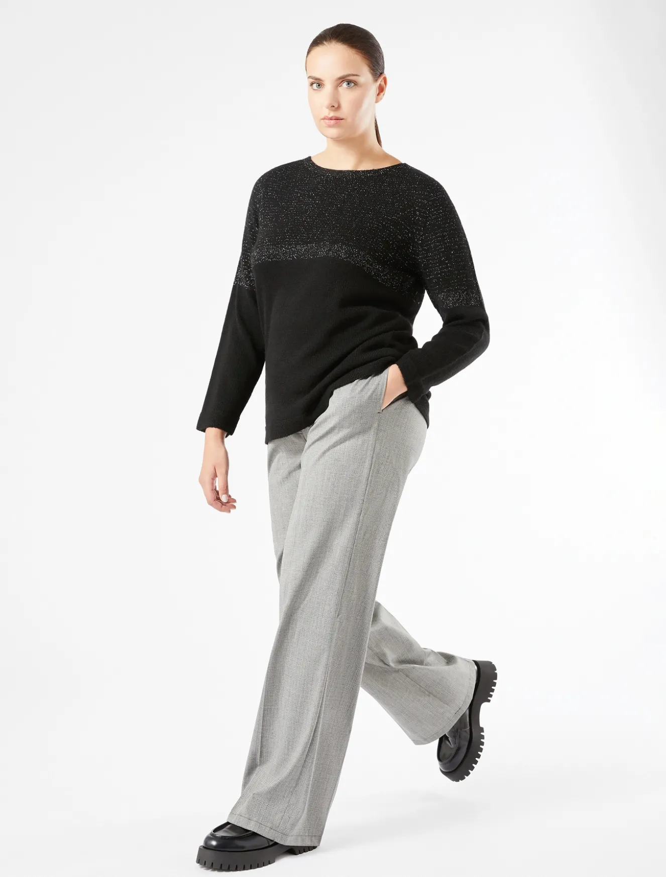 Schlichter und vielseitiger Pullover aus einer Wolle-Viskose-Mix. Das angenehme Garn und die Verarbeitung mit Schulterpasse zeichnen das Modell, das für verschiedene Anlässe geeignet ist, aus.Das Kleidungsstück ist Teil der N.O.W.