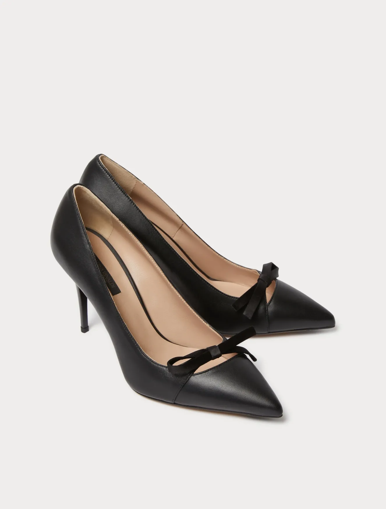 Für Ihre besonderen Outfits können sich auf die Pumps aus Leder mit asymmetrischem Ausschnitt und Satinschleife verlassen. Perfekt, um den Stil aufzuwerten.