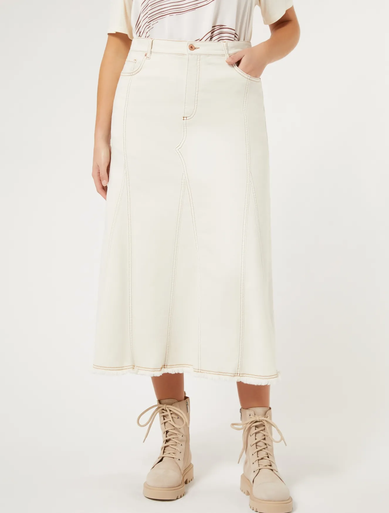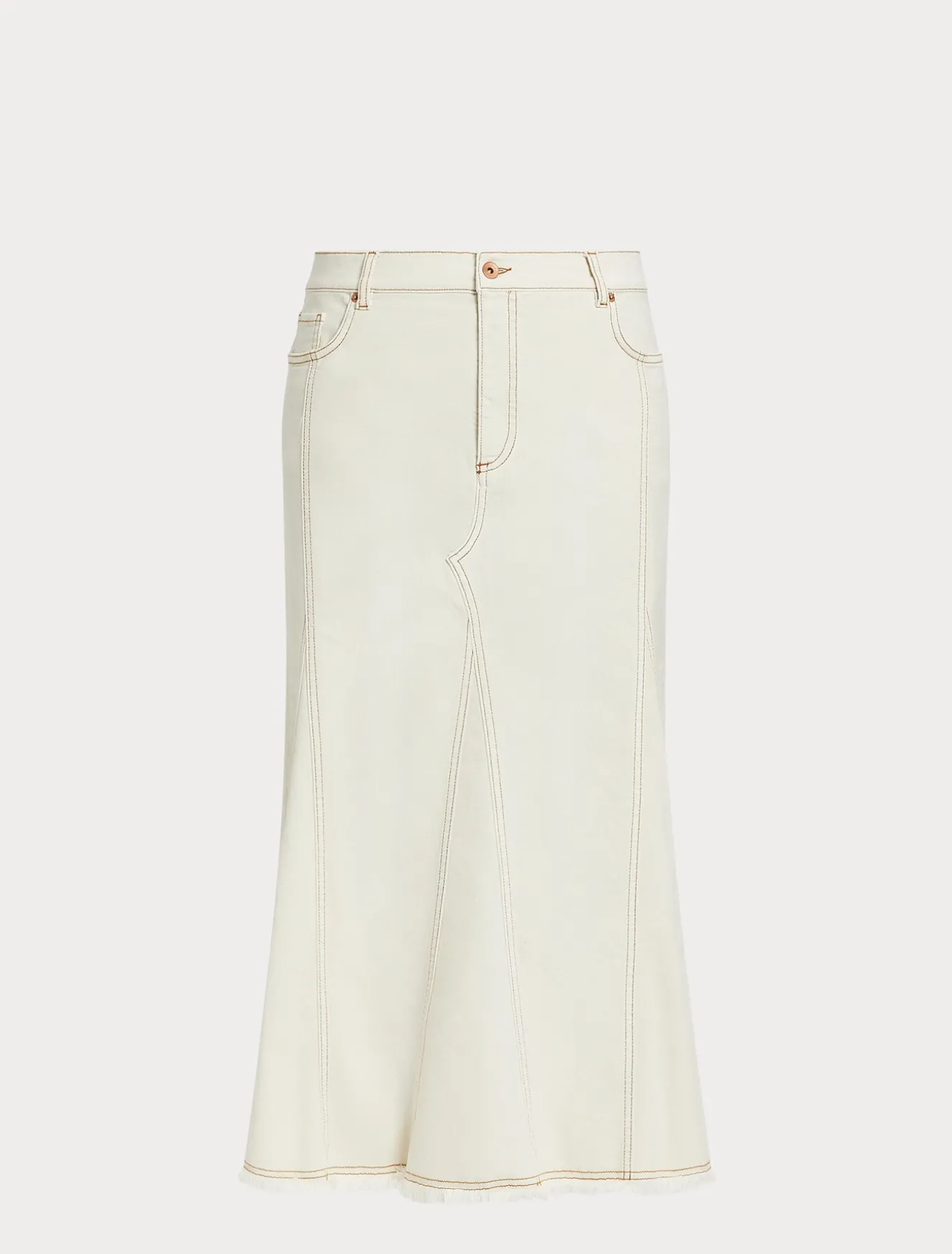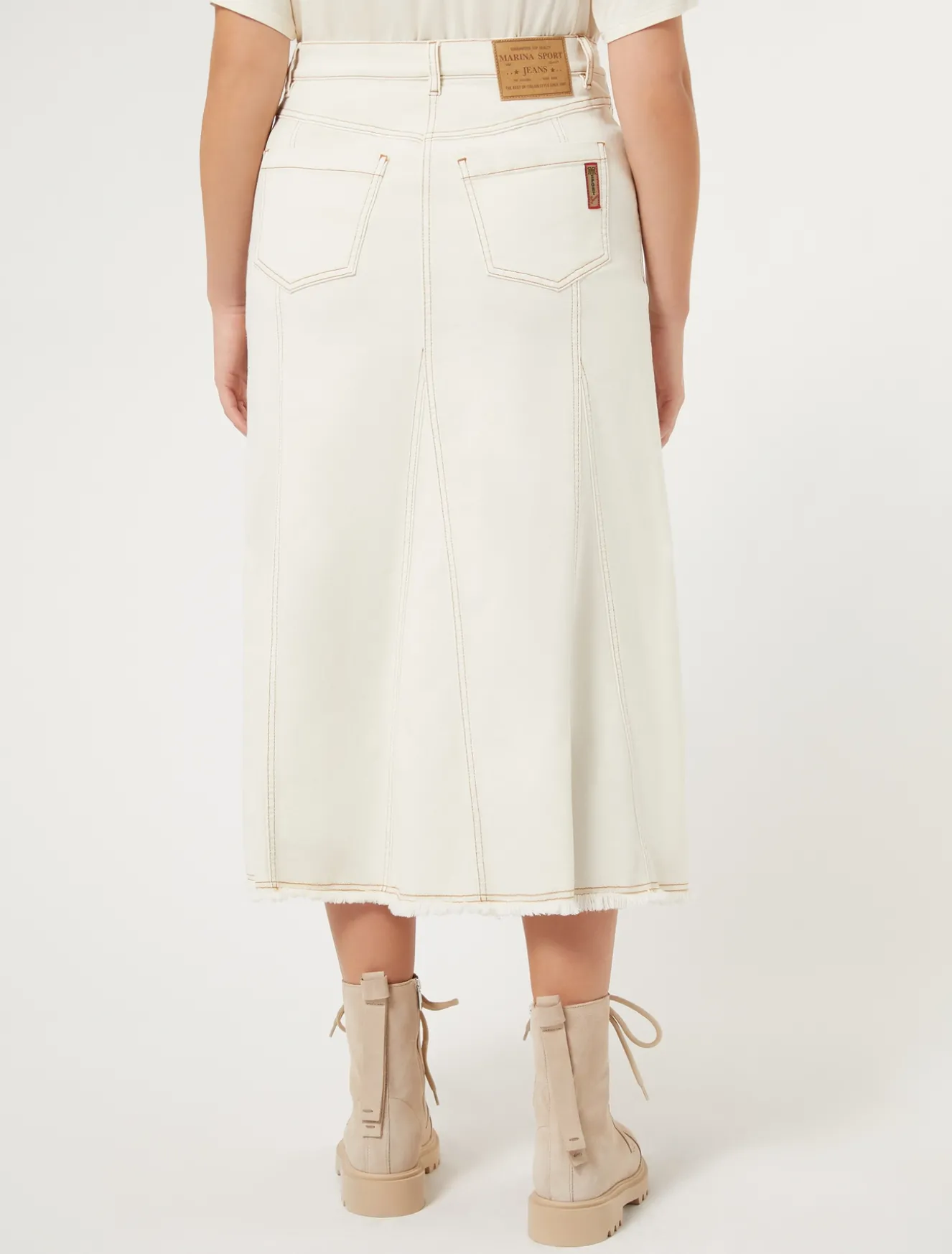 Der Godet-Linien-Rock ist aus garngefärbtem Baumwoll-Bull gefertigt. Er verfügt über eine Doppelnaht in einer kontrastierenden Farbe. Das neuartige Design verleiht Alltagslooks eine besondere Note, auch in Kombination mit der passenden Jacke.Das Kleidungsstück ist Teil der Kollektion Marina Sport.