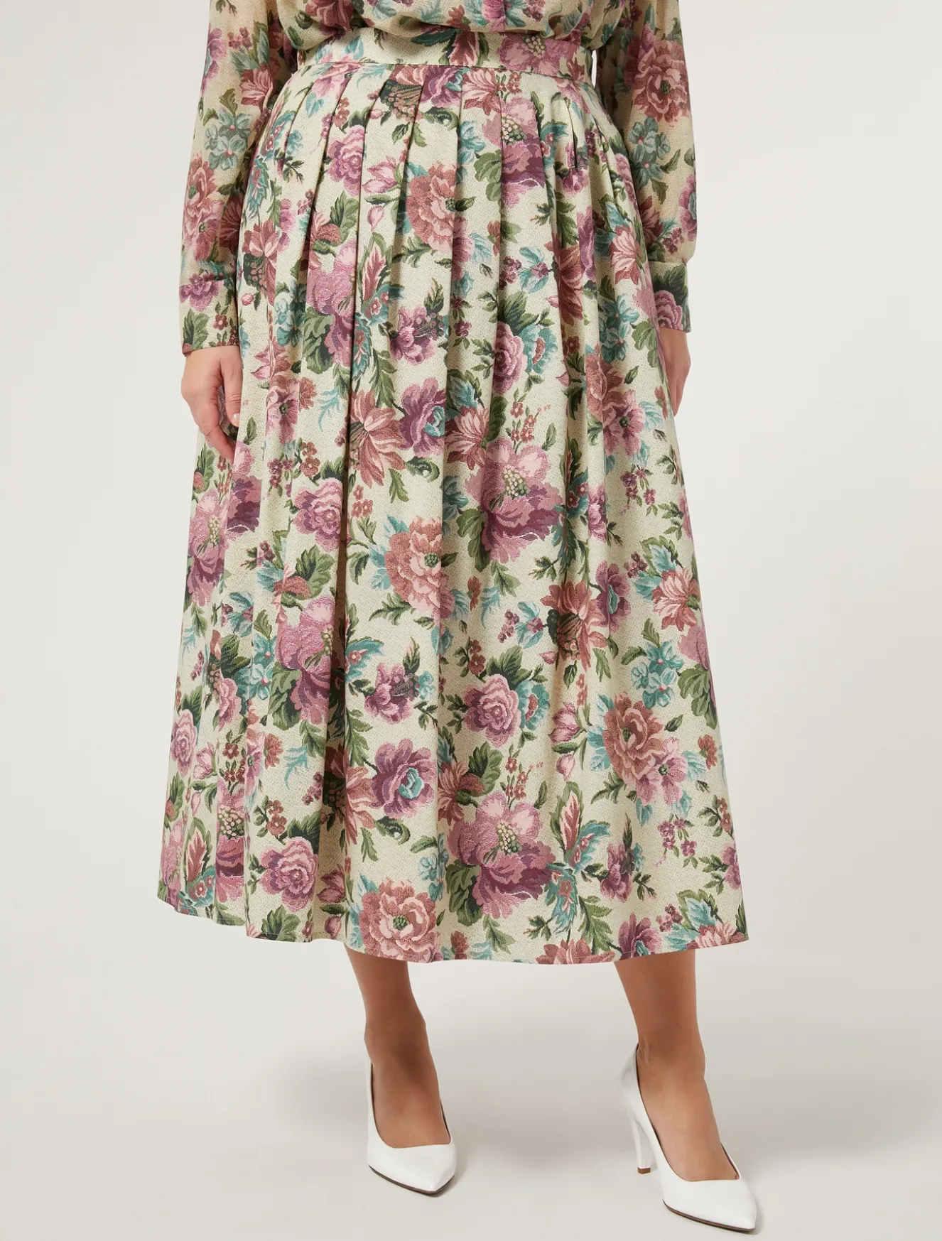 Der mittellange Rock ist aus reiner Baumwollpopeline gefertigt und mit einem einzigartigen Print mit Falten in der Mitte versehen. Der perfekte feminine Rock, der zu einer Vielzahl von Outfits passt.Dieses Modell gehört zur Hauptkollektion von Marina Rinaldi.