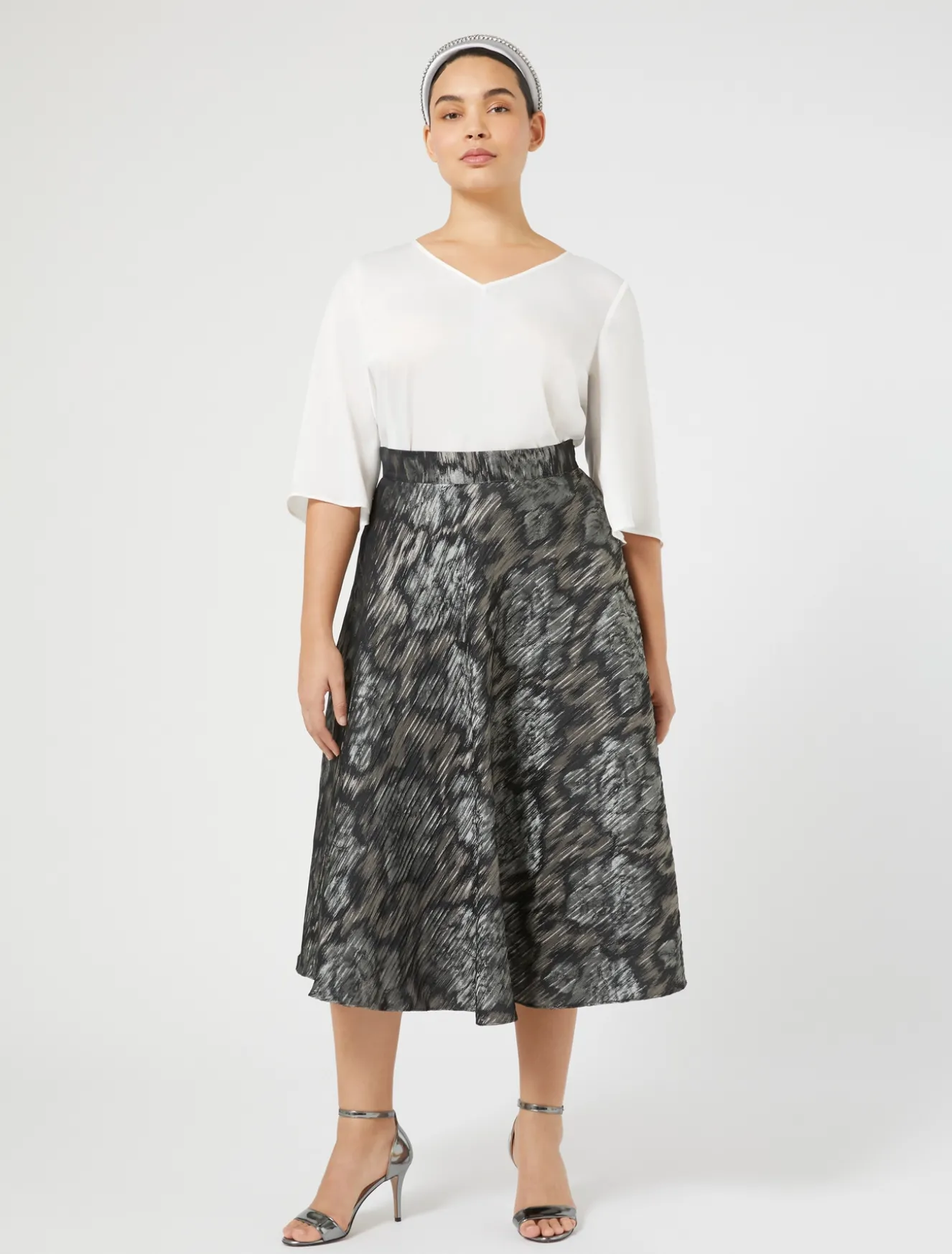 Tellerrock aus floralem Jacquard mit zeitlosem Design. Ein Reißverschluss auf einer Seite rundet das Modell ab. Das Kleidungsstück ist Teil der Kollektion Persona by Marina Rinaldi.