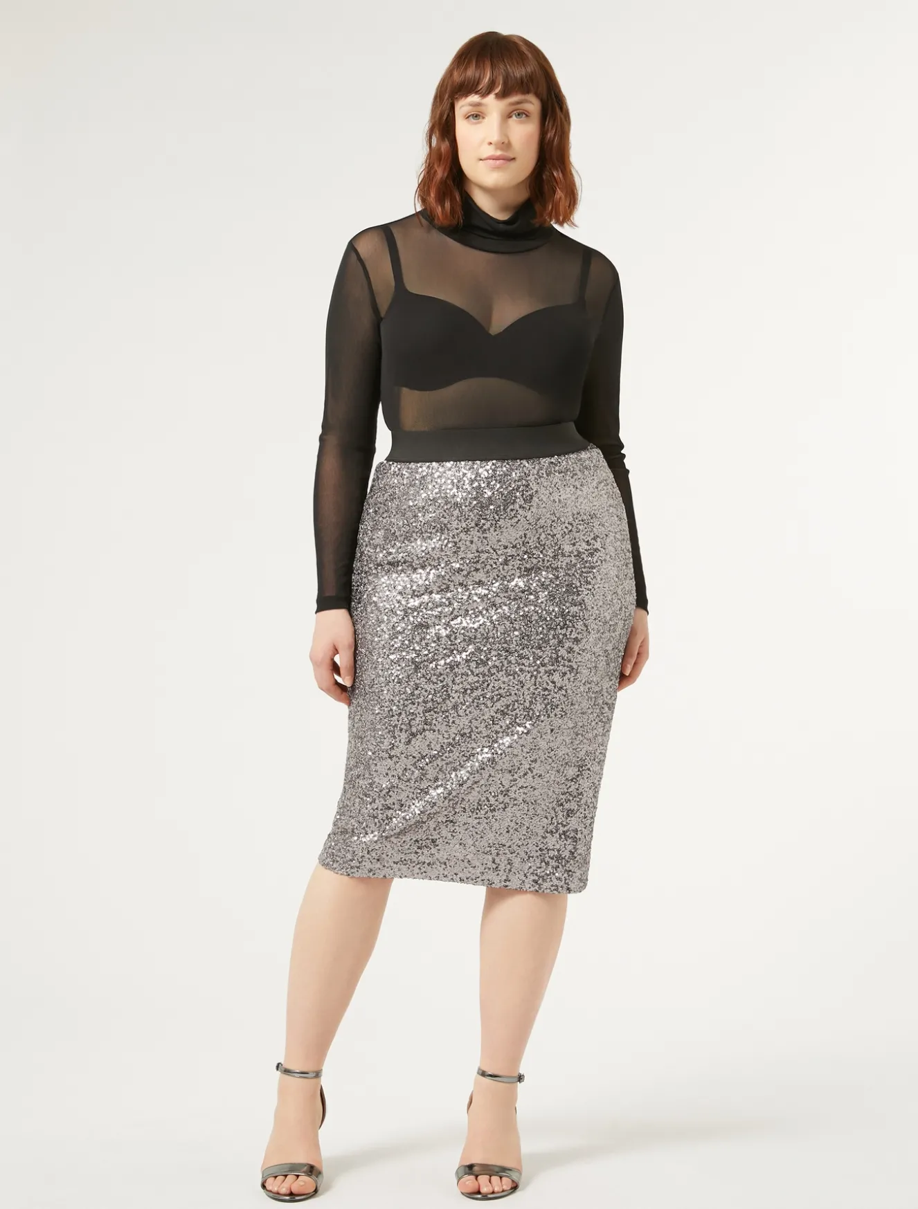 Jerseyrock mit Pailletten, Elastikeinsatz am Bund und bequemem Innenfutter, der sich durch schimmernde Strukturen auszeichnet. Unverzichtbare Etui-Silhouette.Das Kleidungsstück ist Teil der Kollektion Persona by Marina Rinaldi.– Jersey und Pailletten– Etuikleid– Elastikband in der Taille– Innenfutter