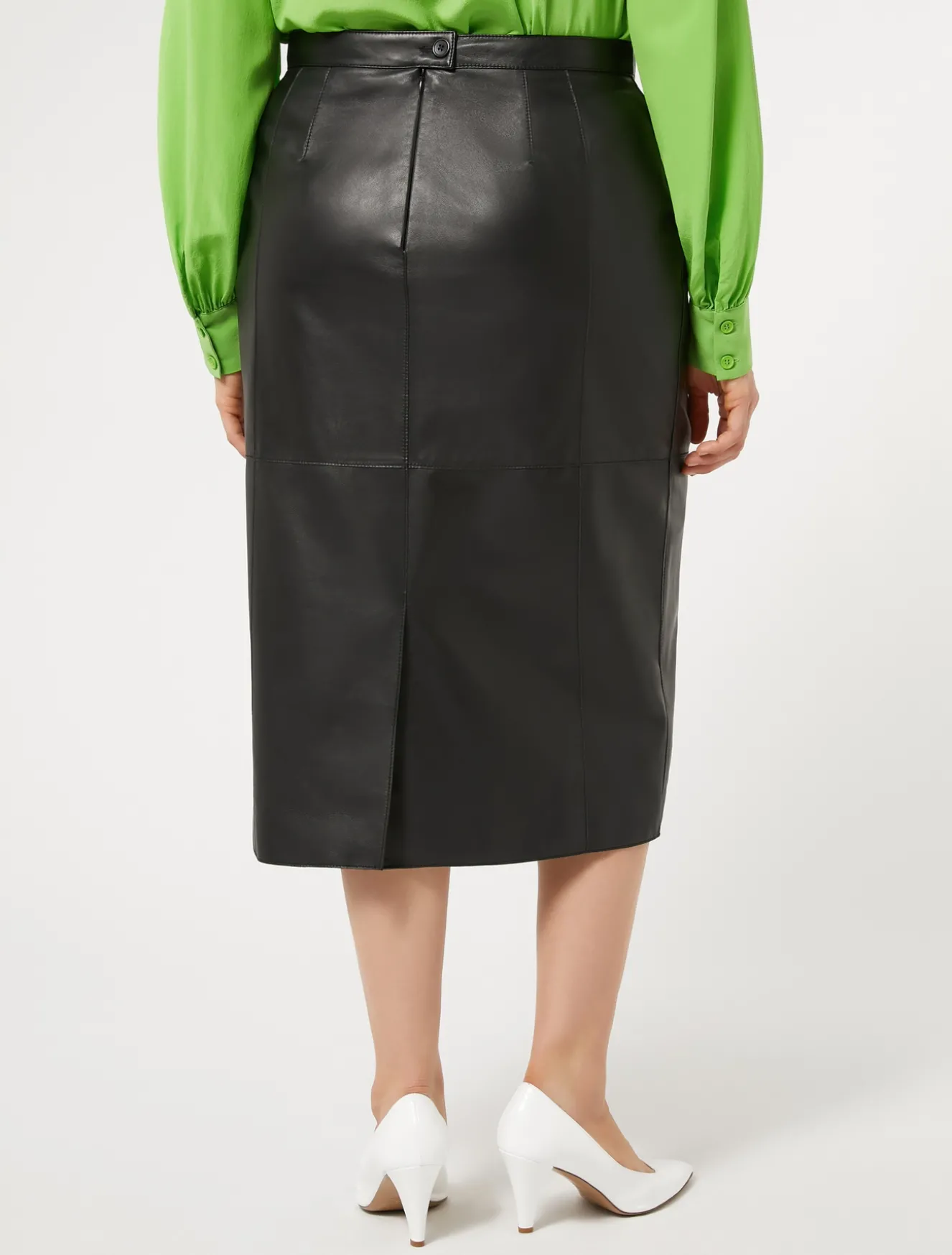 Dieser Bleistiftrock aus Leder mit ergonomischen Abnähern auf Vorder- und Rückseite verleiht deinem Outfit sofort einen Hauch von Eleganz. Perfekte Basis für aktuelle Looks.Dieses Modell gehört zur Hauptkollektion von Marina Rinaldi.