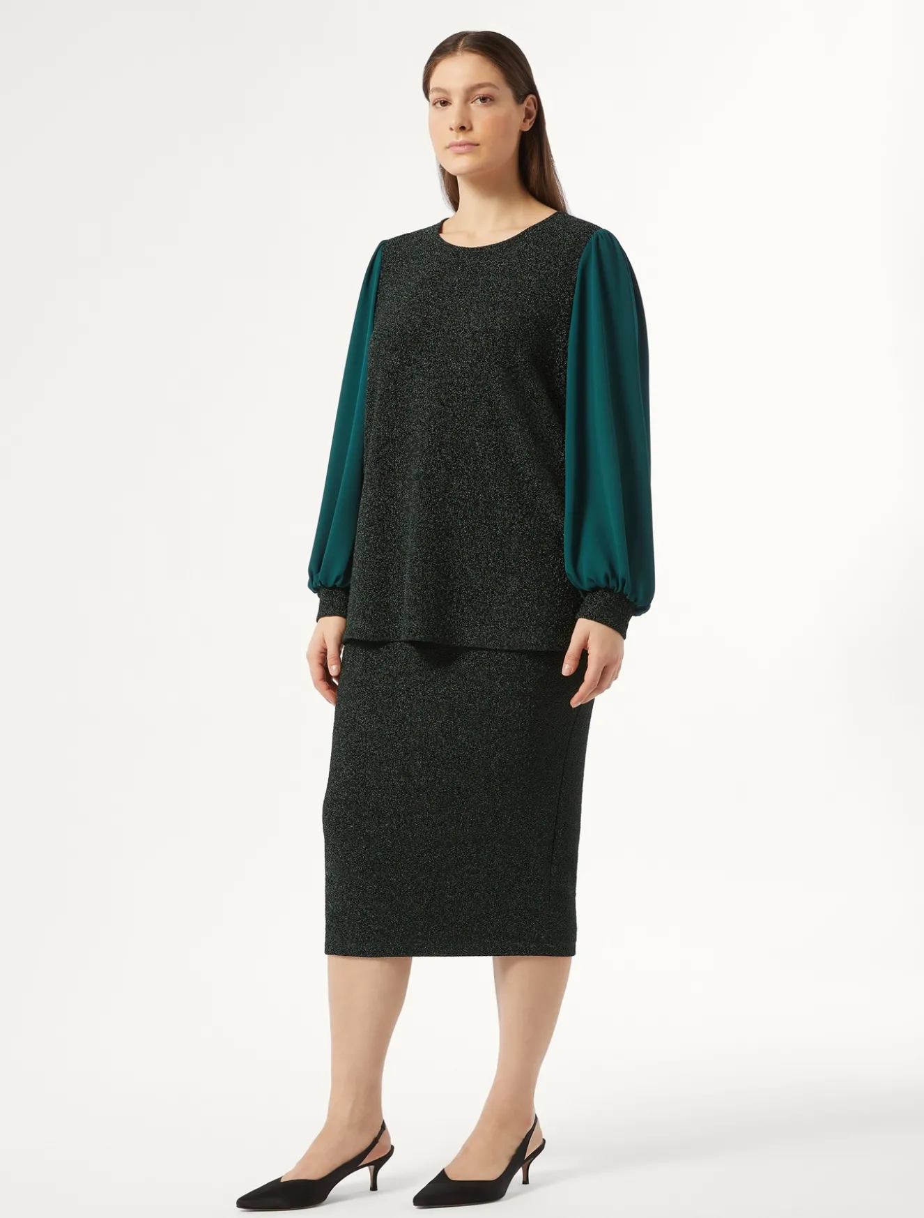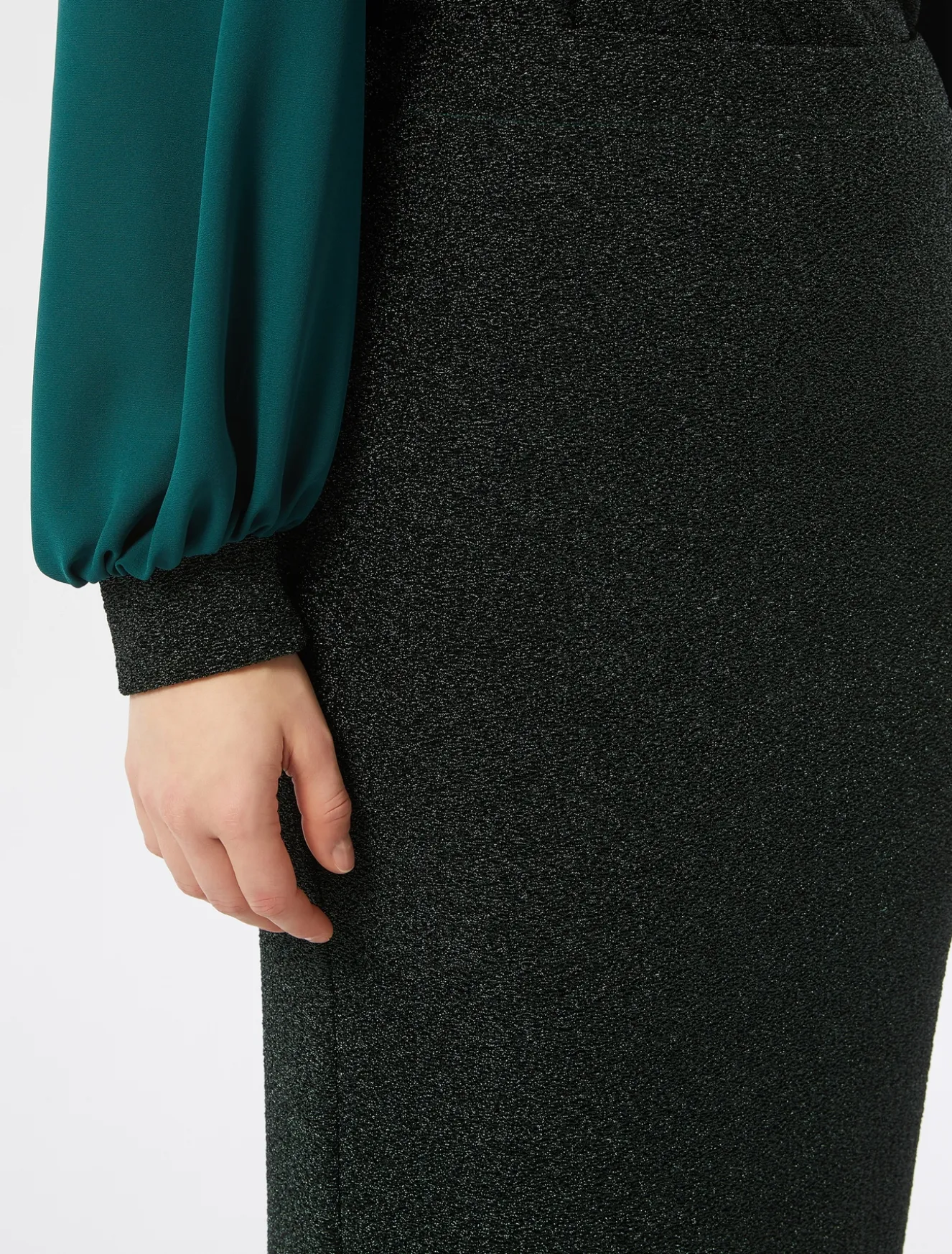 Eleganter und vielseitiger Rock aus elastischem Lamé-Jersey mit Bleistift-Silhouette. Mit Elastikbund für eine bequeme Passform.Trage dieses Kleidungsstück am besten in Kombination mit dem dazu passenden Pullover. Das Kleidungsstück ist Teil der Kollektion NOW by Marina Rinaldi.– Jersey mit Stretchanteil– Etuikleid– Elastikband in der Taille– Gefüttert