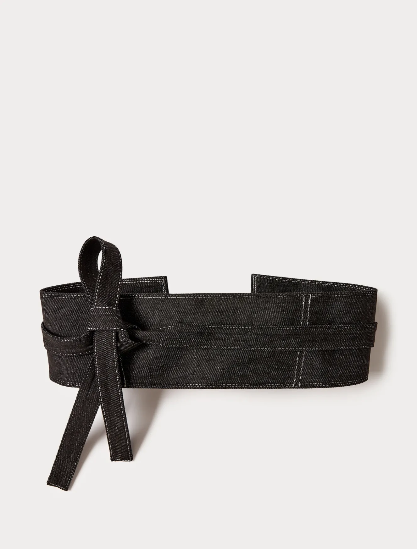 Denimgürtel im Obi-Stil mit Ziersteppmotiv in Kontrastfarbe. Sorgt für einen Trompe-l’oeil-Effekt.Dieses Modell gehört zur Hauptkollektion von Marina Rinaldi.
