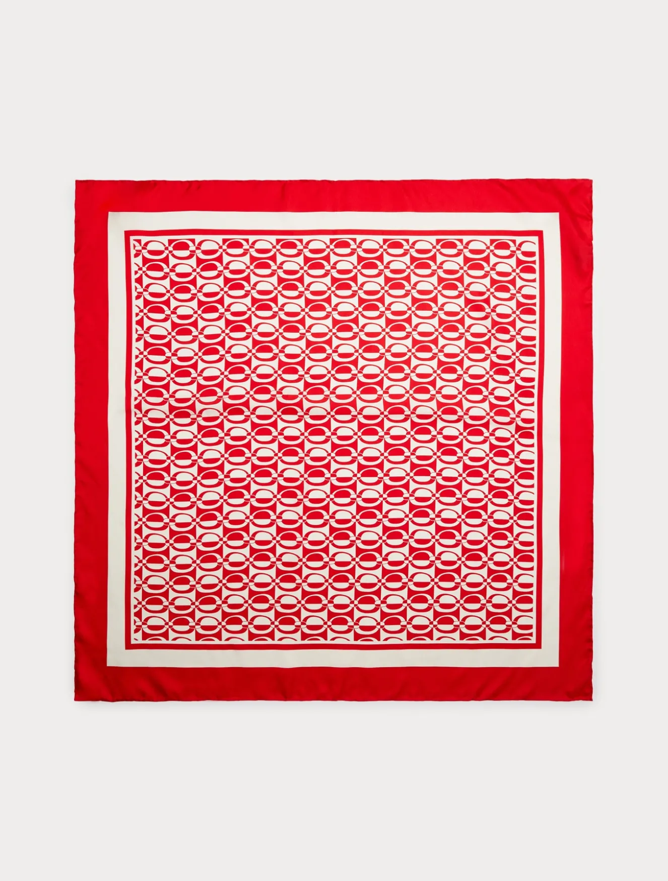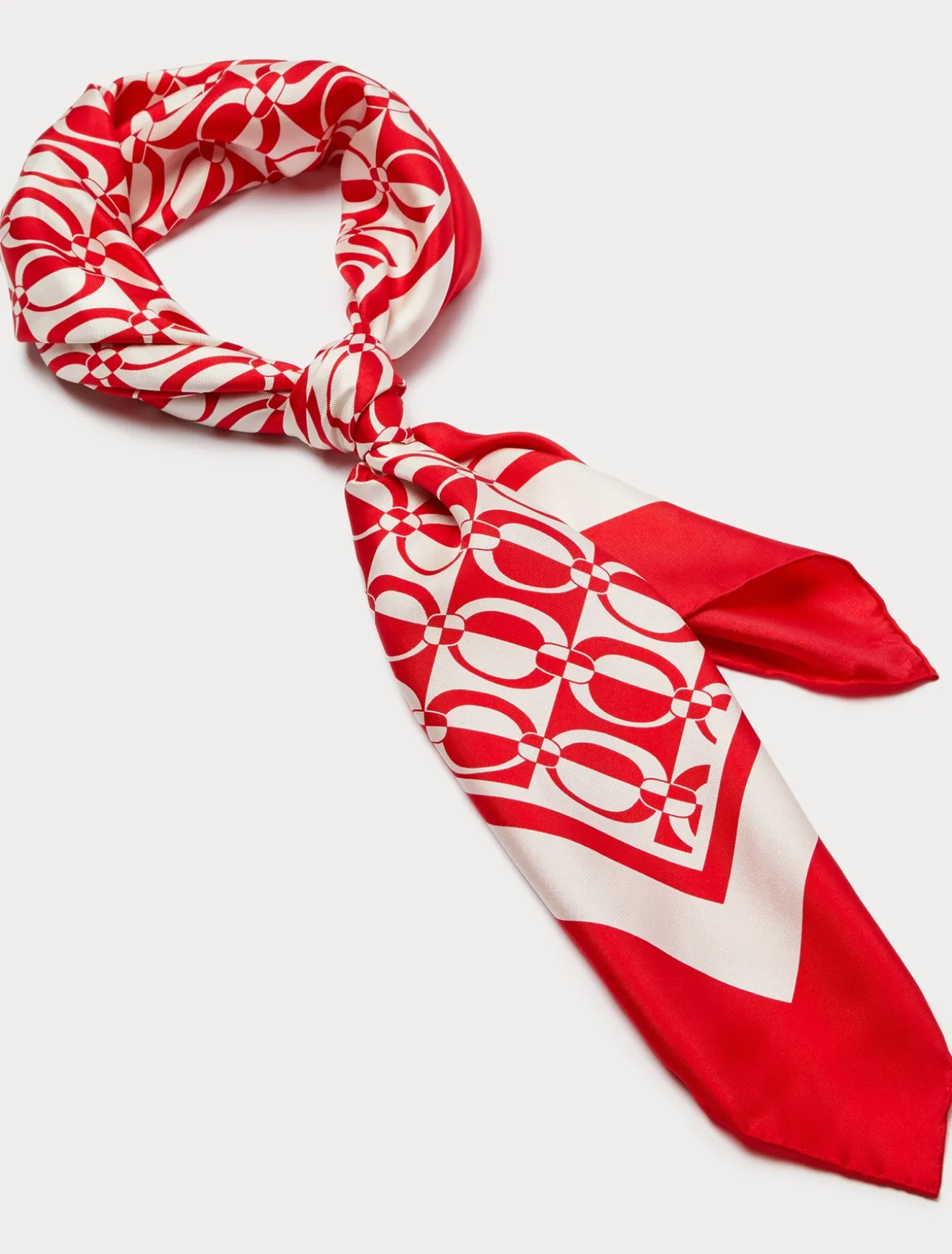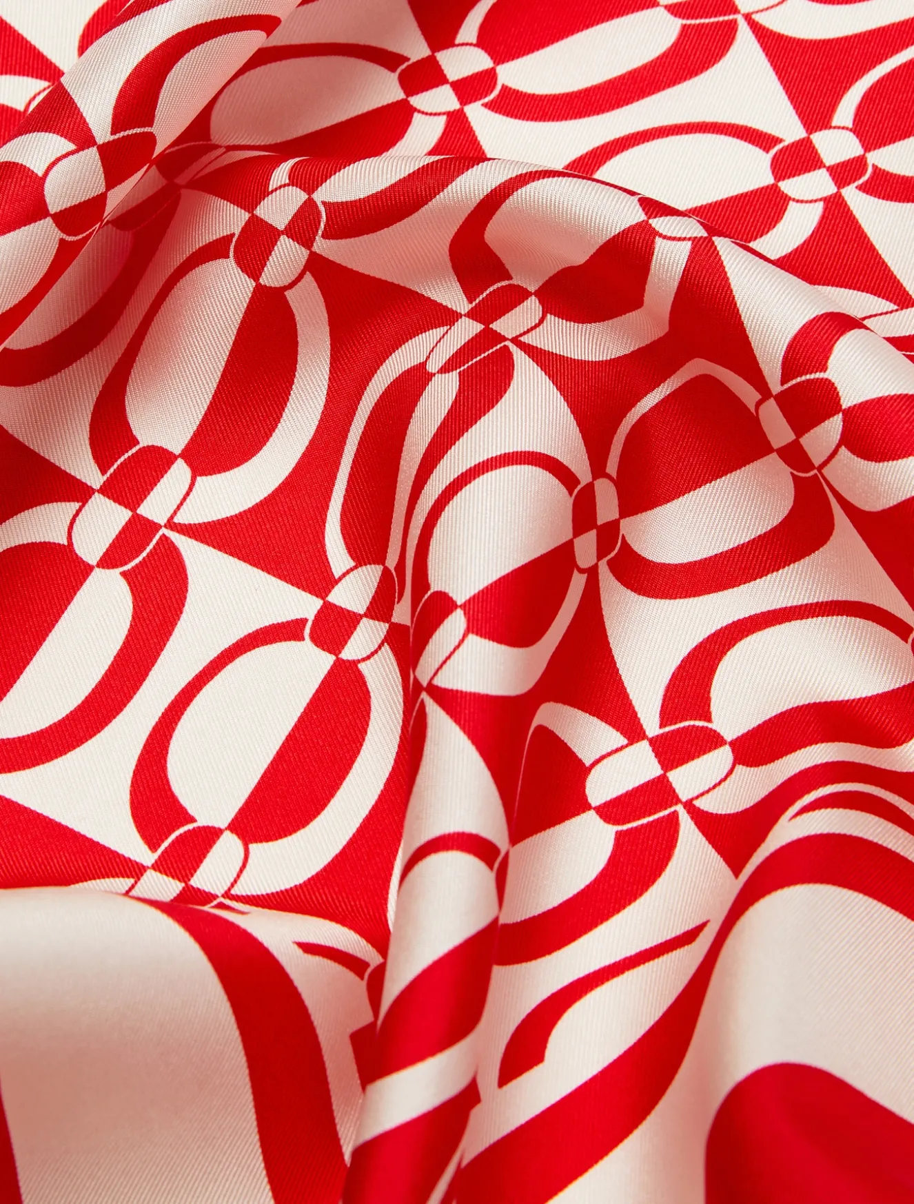 Dieser Schal aus reinem Seidentwill mit den Motiven der Kollektion verleiht Outfits einen grafischen Touch. Perfekt geeignet, um eine Vielzahl von Looks zu interpretieren.
