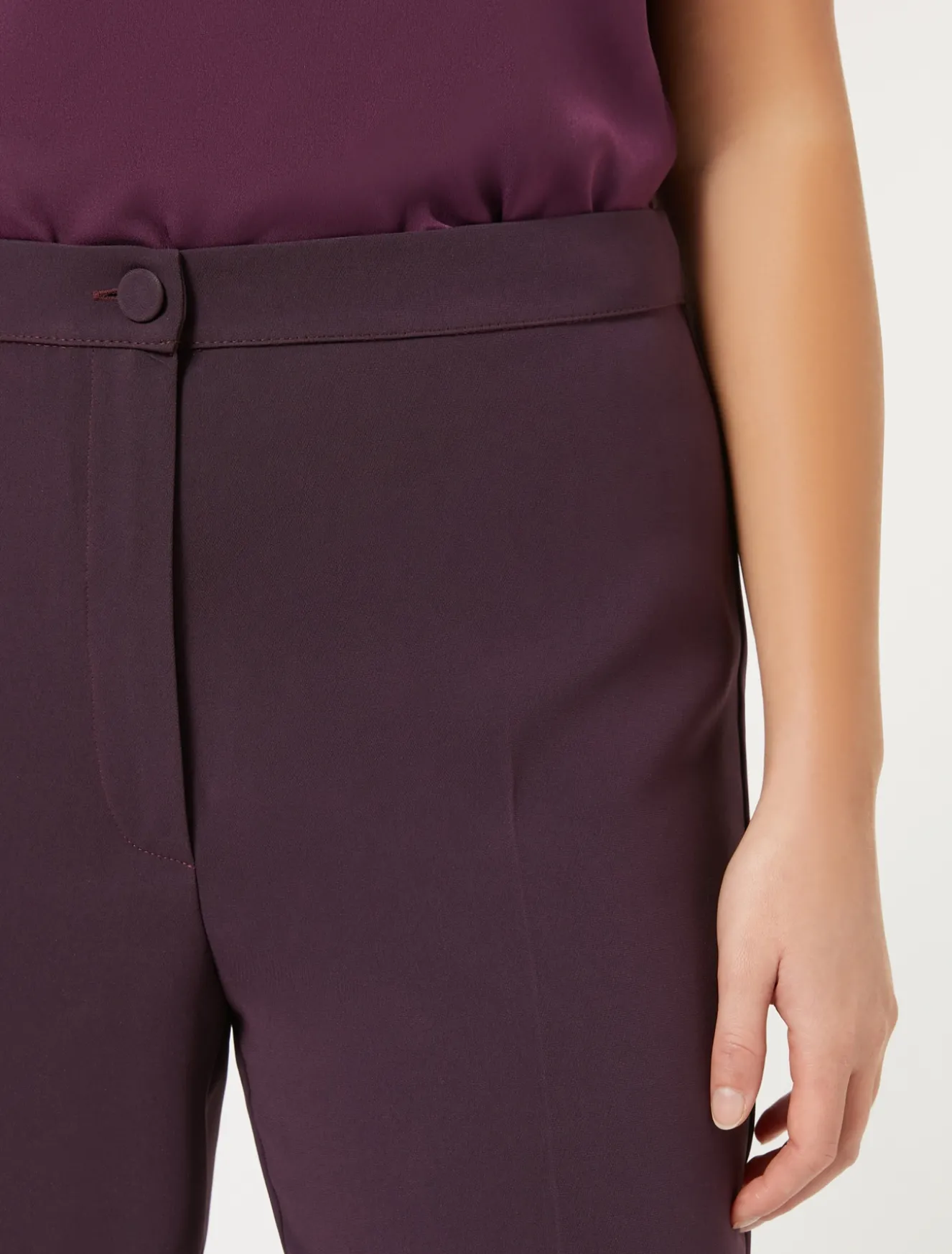 Diese Slim-Fit Hose aus kompaktem Triacetat, einem glatten, pflegeleichten Material, das Problemzonen kaschiert, ist vielseitig und einfach zu kombinieren. Du kannst sie mit dem passenden Blazer kombinieren. Das Kleidungsstück ist Teil der Kollektion Elegante.