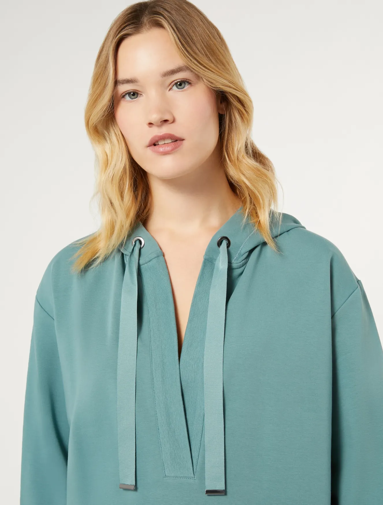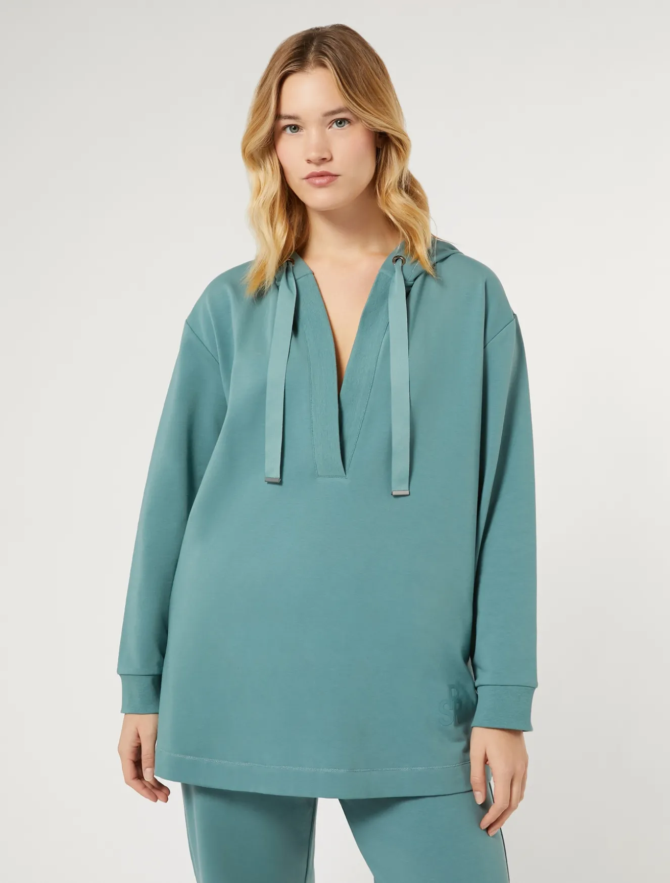 Dieses Sweatshirt aus Baumwoll-Sweatjersey verleiht deiner Garderobe einen Hauch Athleisure. Die Kapuze ist mit einem Ripsband-Tunnelzug versehen und das aufgedruckte Schriftzug-Detail am Saum verleiht Charakter.Das Kleidungsstück ist Teil der Kollektion Persona by Marina Rinaldi.
