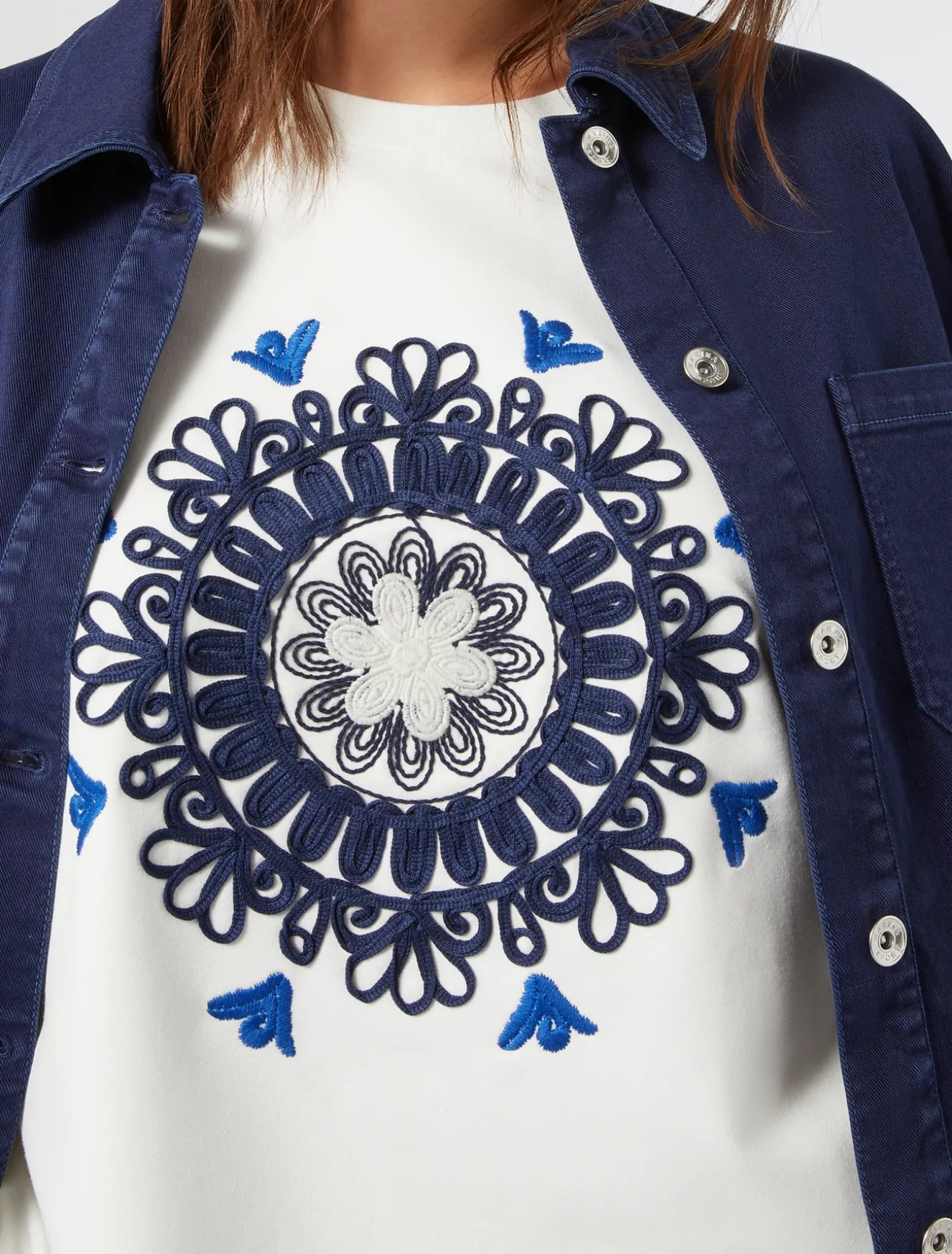 Auf der Vorderseite ist das Sweatshirt aus Baumwoll-Jersey im Boxy-Schnitt mit einer Cornely-Stickerei verziert. Raffiniertes Piece, das einfach immer dazupasst.