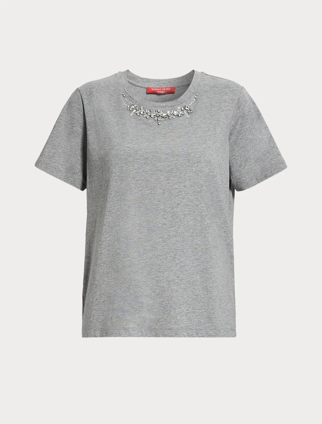 Gerade geschnittenes T-Shirt mit Rundhalsausschnitt und Lünettenstickerei auf der Vorderseite. Perfekt geeignet, um deine Freizeitlooks aufzuwerten.Das Kleidungsstück ist Teil der Kollektion Marina Sport.