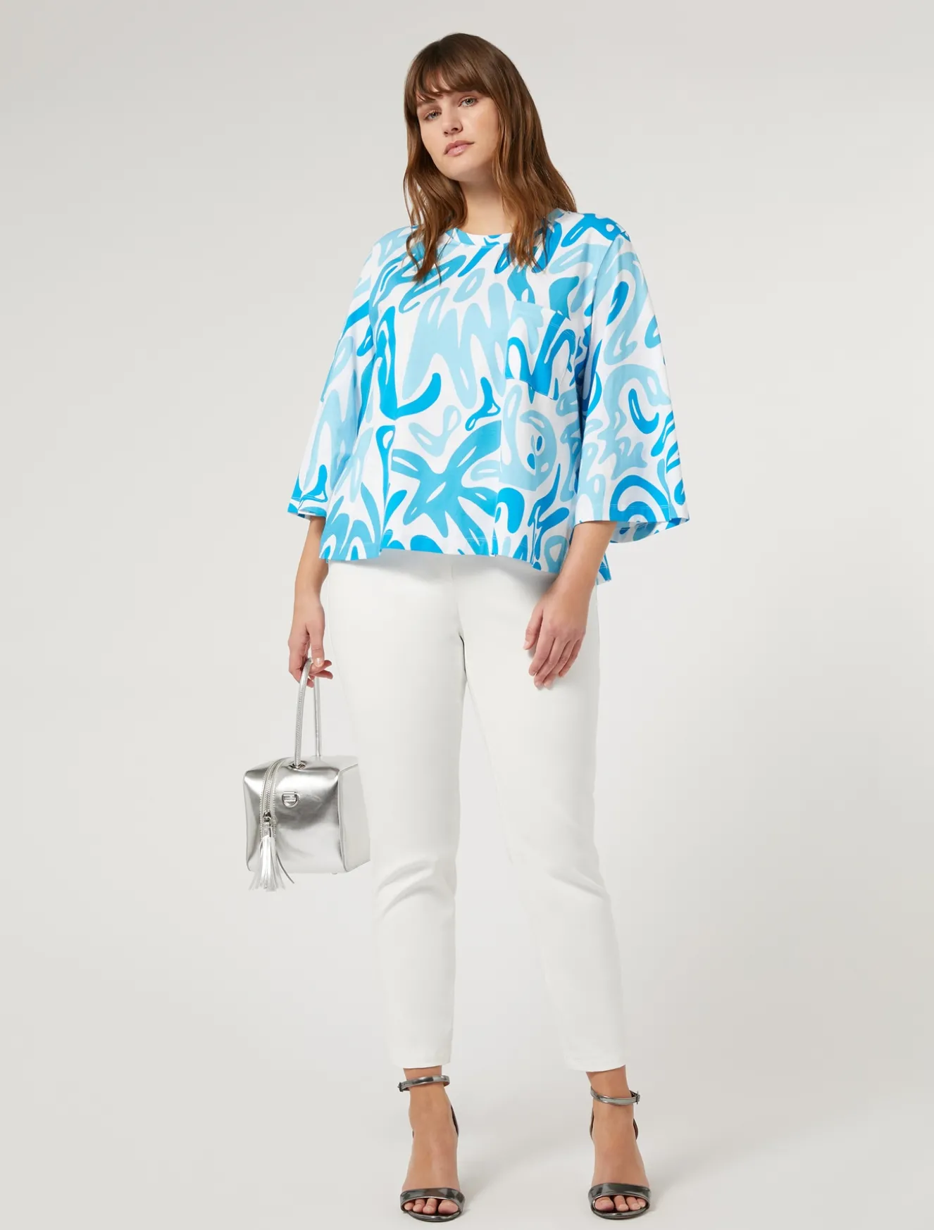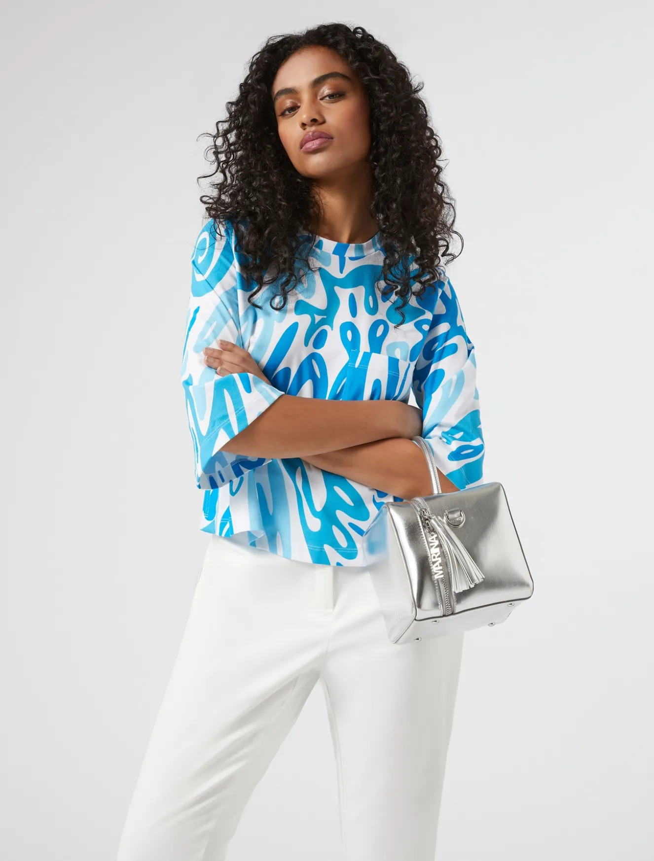 Dieses gerade geschnittene T-Shirt aus Baumwoll-Jersey besticht durch seinen charakteristischen Allover-Print. Perfekt, um dem Style einen grafischen Twist zu verleihen.Das Kleidungsstück ist Teil der Sonderkollektion von Sara Battaglia für Marina Rinaldi.