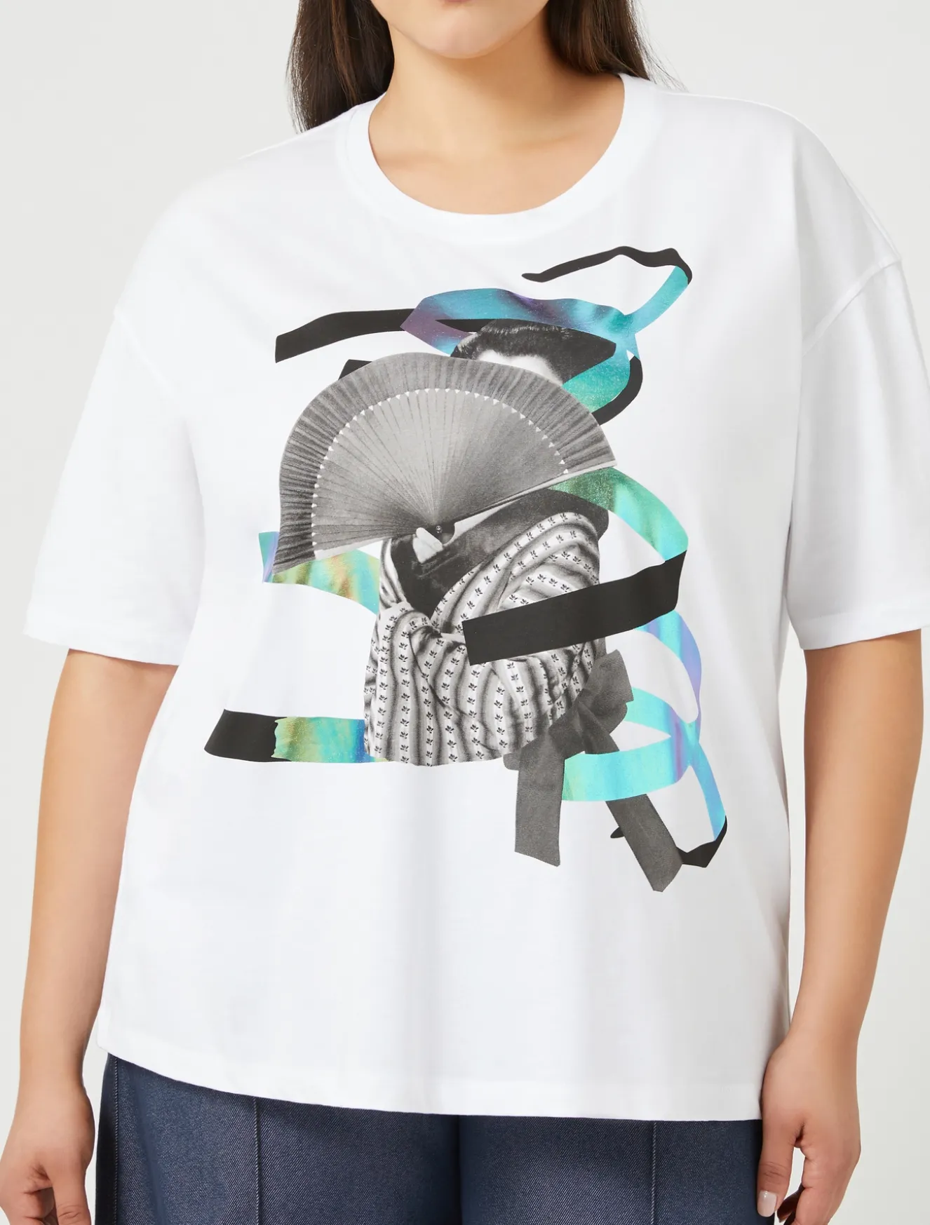 Dieses T-Shirt aus Baumwoll-Jersey mit Oversize-Silhouette besticht durch einen Print mit laminierten Details. Hilft eine Vielzahl von Looks zu interpretieren.Das Kleidungsstück ist Teil der Sonderkollektion von Sara Battaglia für Marina Rinaldi.