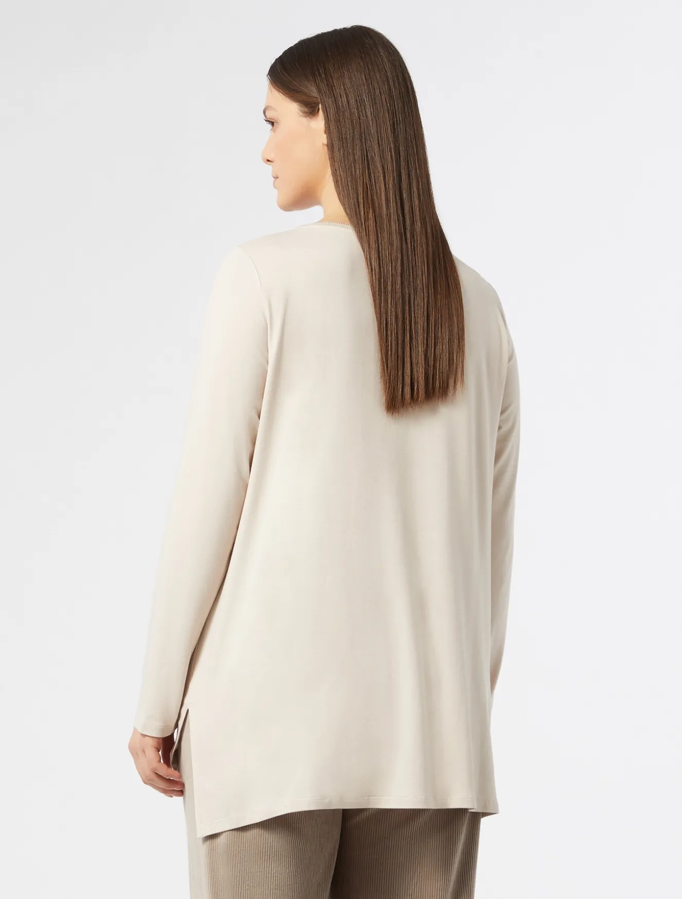 Dieses T-Shirt aus Viskose-Stretch-Jersey mit einem Rippstrickkragen mit Lurexabschlüssen lässt sich einfach kombinieren. Perfekte Basis für deine Layering-Looks der Saison.Das Kleidungsstück ist Teil der Kollektion Marina Sport.
