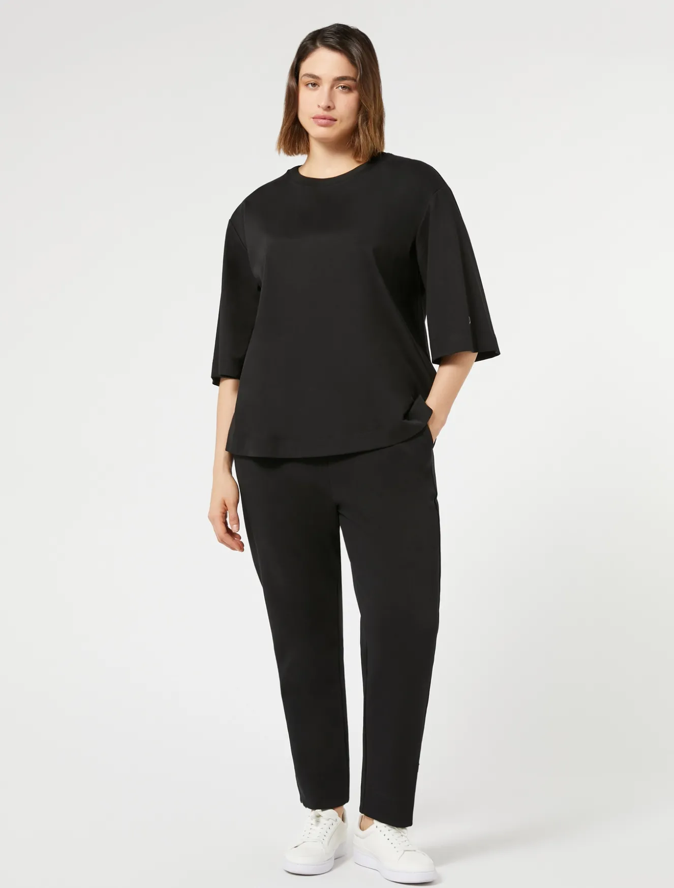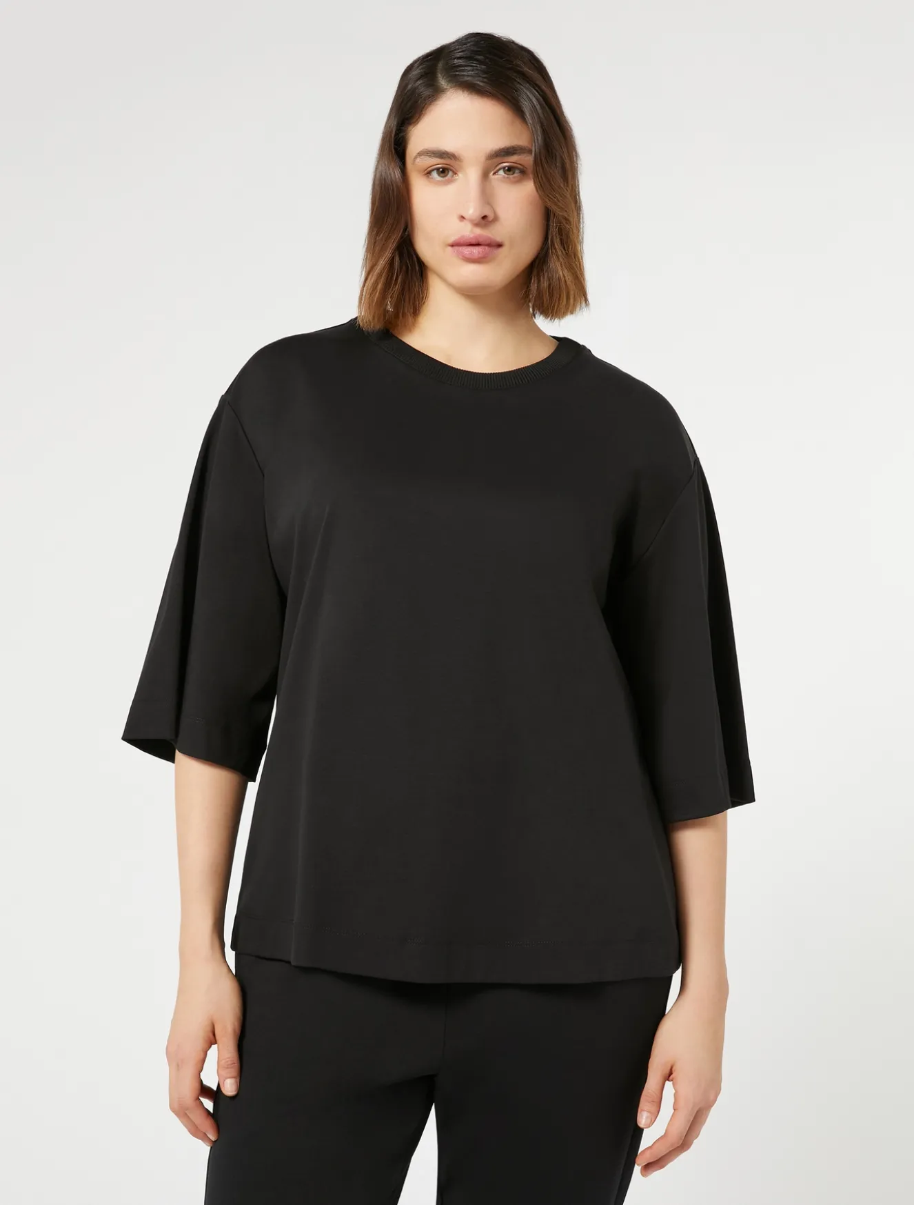 Schlicht und modern zugleich: T-Shirt aus merzerisiertem Baumwoll-Interlock-Jersey mit geripptem Rundhalsausschnitt. Hilft eine Vielzahl von Looks zu interpretieren.Das Kleidungsstück ist Teil der Kollektion Voyage Relax.