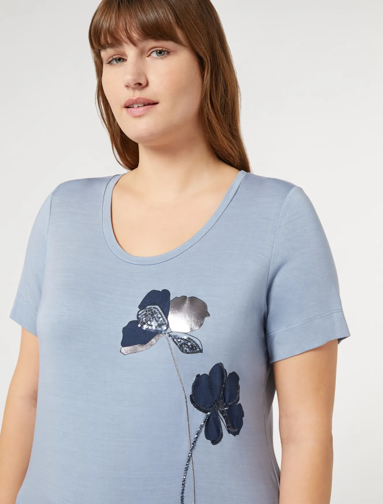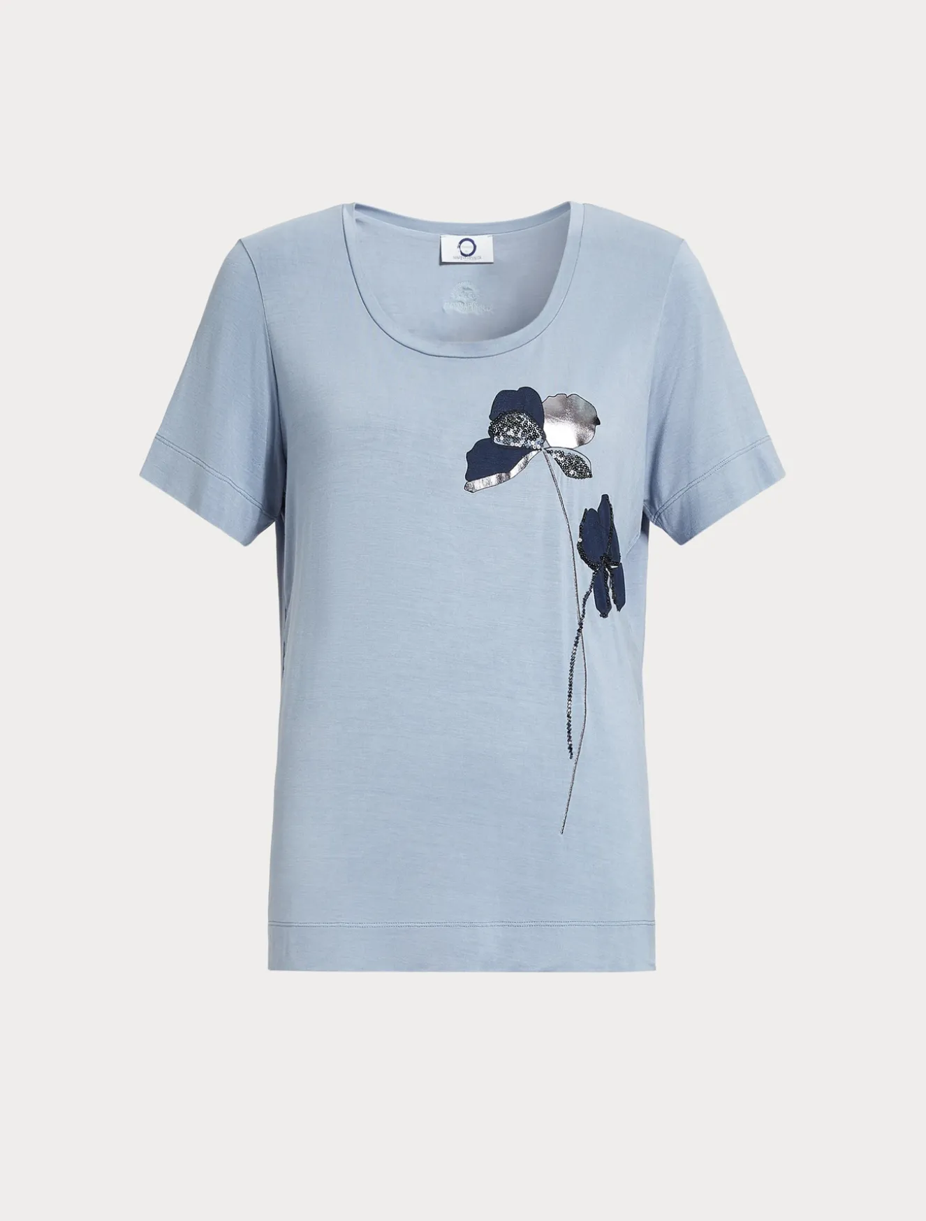 Dieses T-Shirt aus weichem Viskose-Jersey ist mit einer Garnstickerei und einem Print verziert. Schlicht und doch schick.Das Kleidungsstück ist Teil der Kollektion „Voyage“.