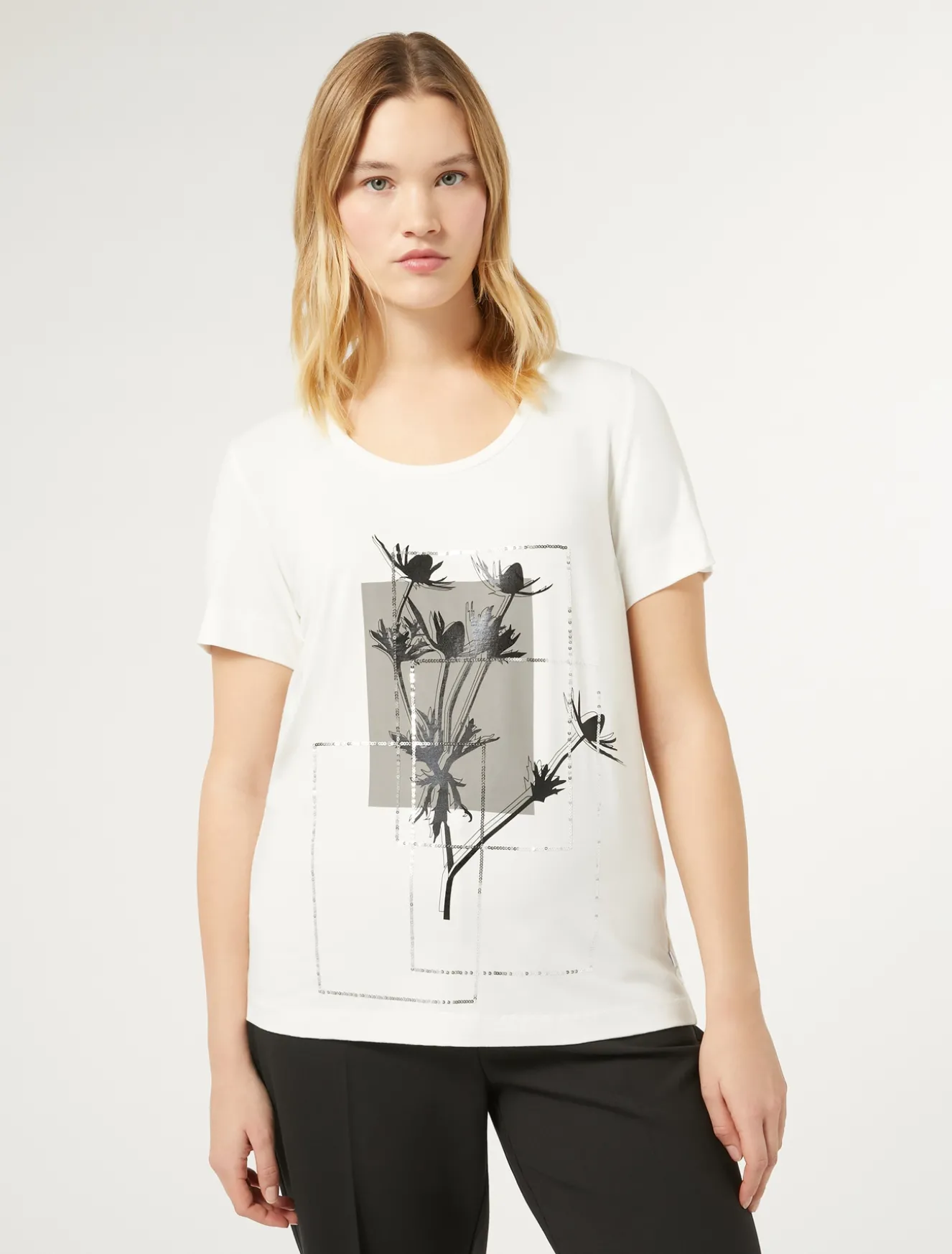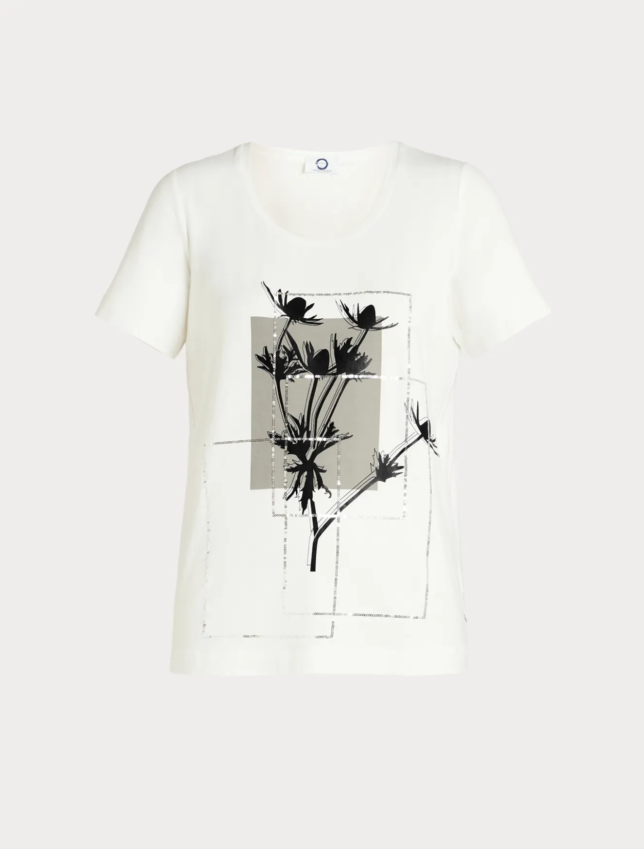 Dieses T-Shirt aus weichem Viskose-Jersey ist mit einer Paillettenstickerei und einem Print verziert. Schlicht und doch schick.Das Kleidungsstück ist Teil der Kollektion „Voyage“.