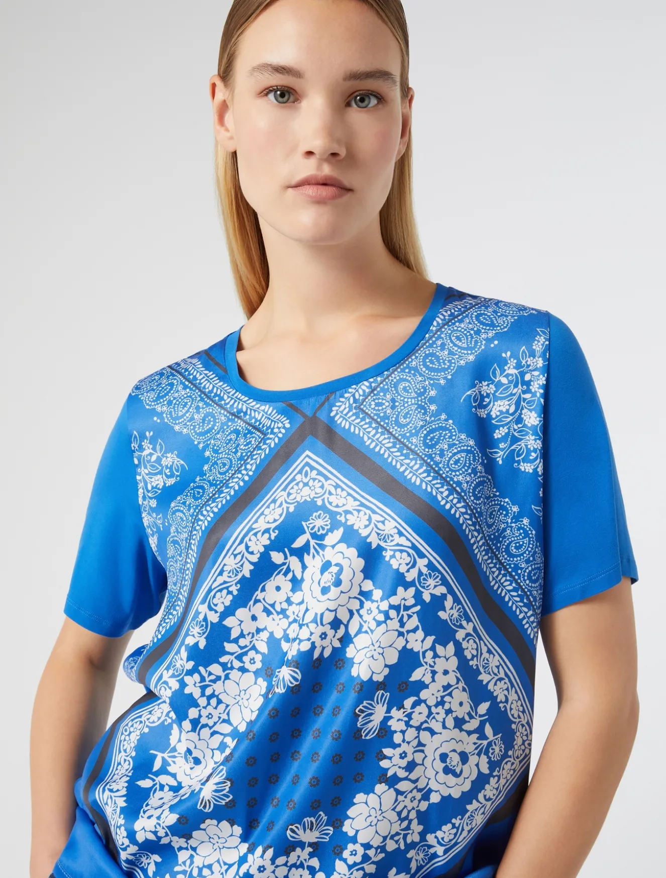 Dieses T-Shirt aus Viskose-Jersey mit Stretch und bedrucktem Stoff auf der Vorderseite verleiht Ihrem Style einen einzigartigen grafischen Touch. Mit allen Teilen Ihrer Garderobe kombinierbar.