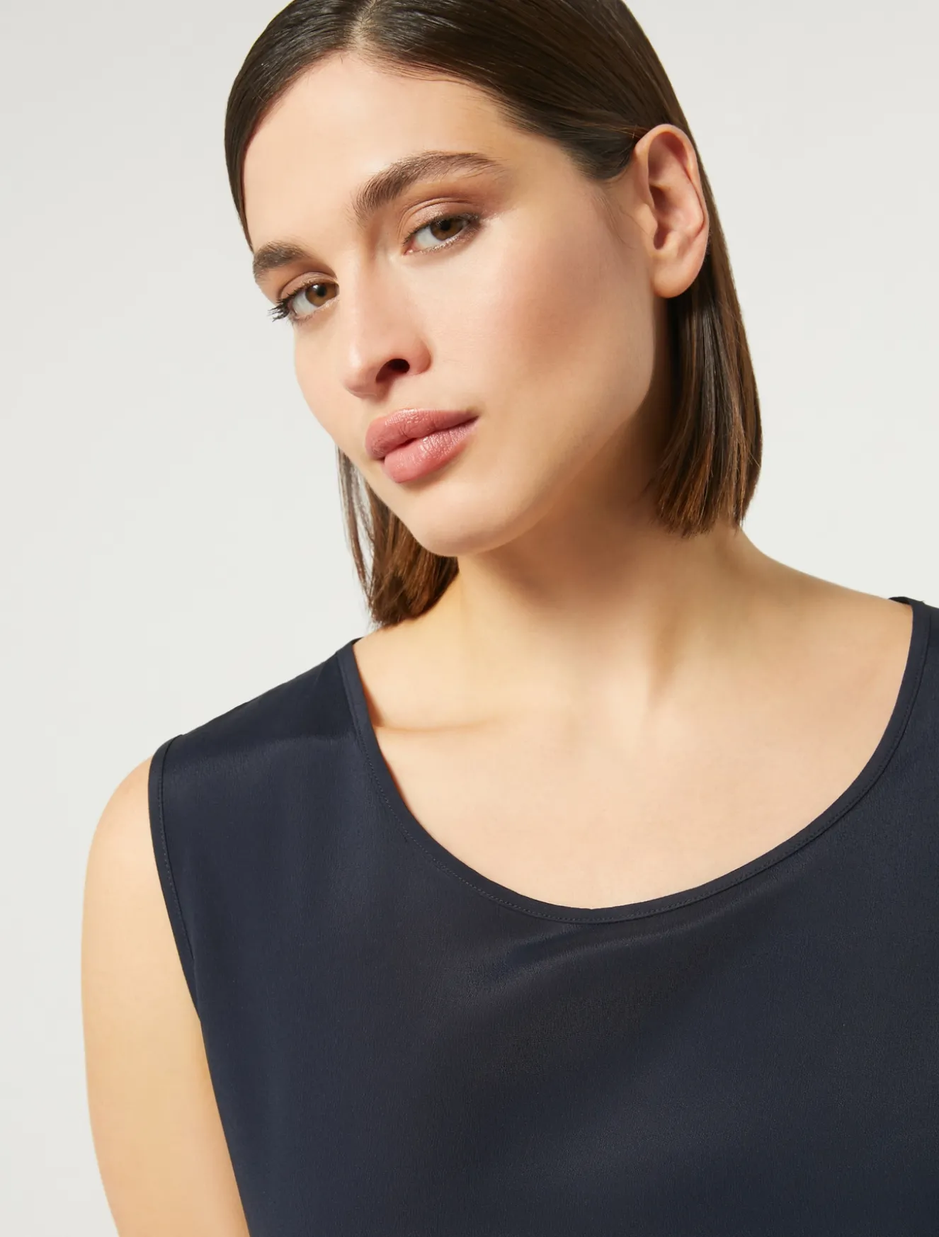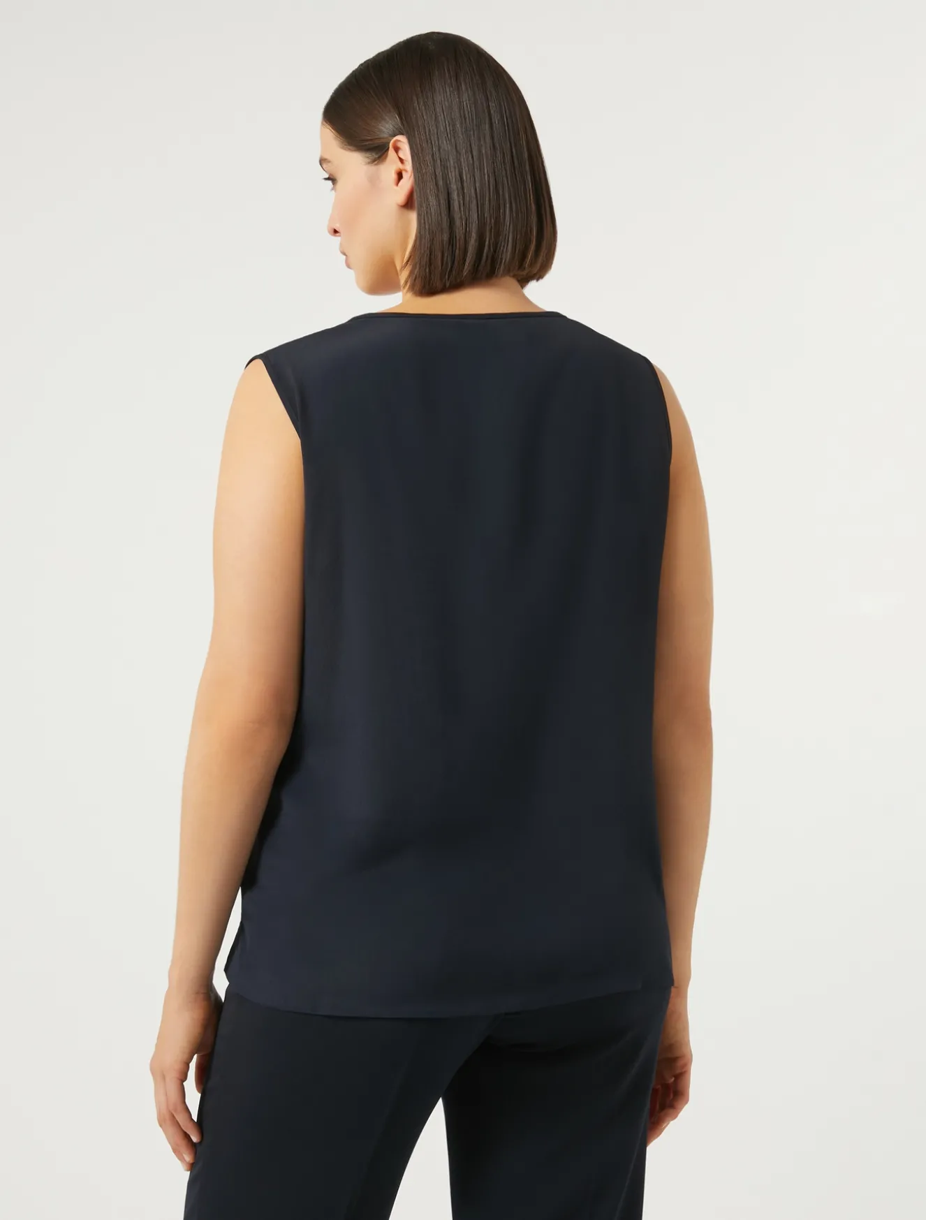 Runden Sie Ihre Looks mit dem gerade geschnittenen Top aus Crêpe de Chine aus einem Seidengemisch ab. Die kurzen Ärmel lassen sich jederzeit von einem Schneider anbringen. Der Stoff besteht unter anderem aus Holzzellulose, einer Faser, die auf nachhaltige Weise gewonnen wird.