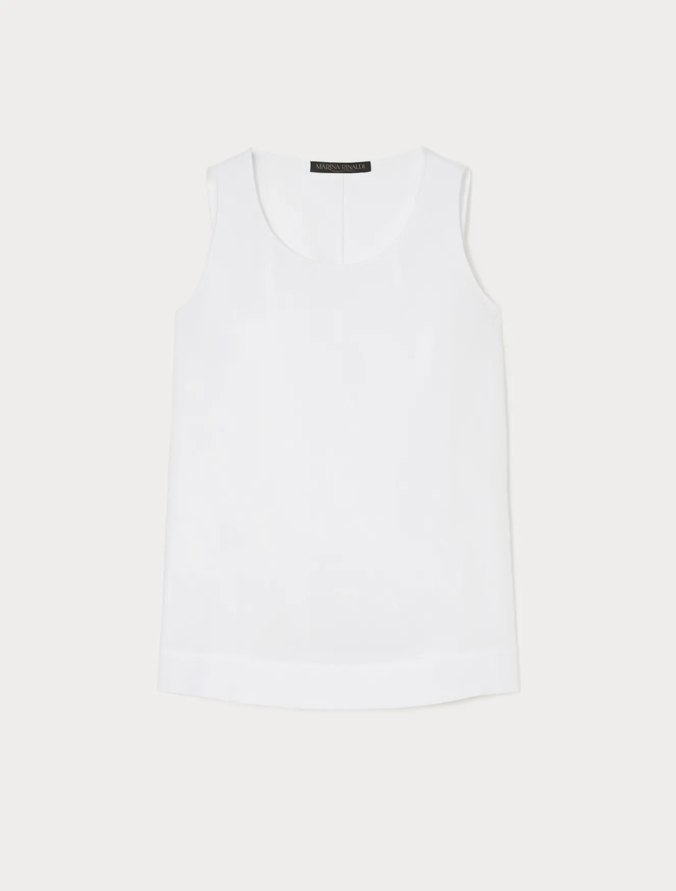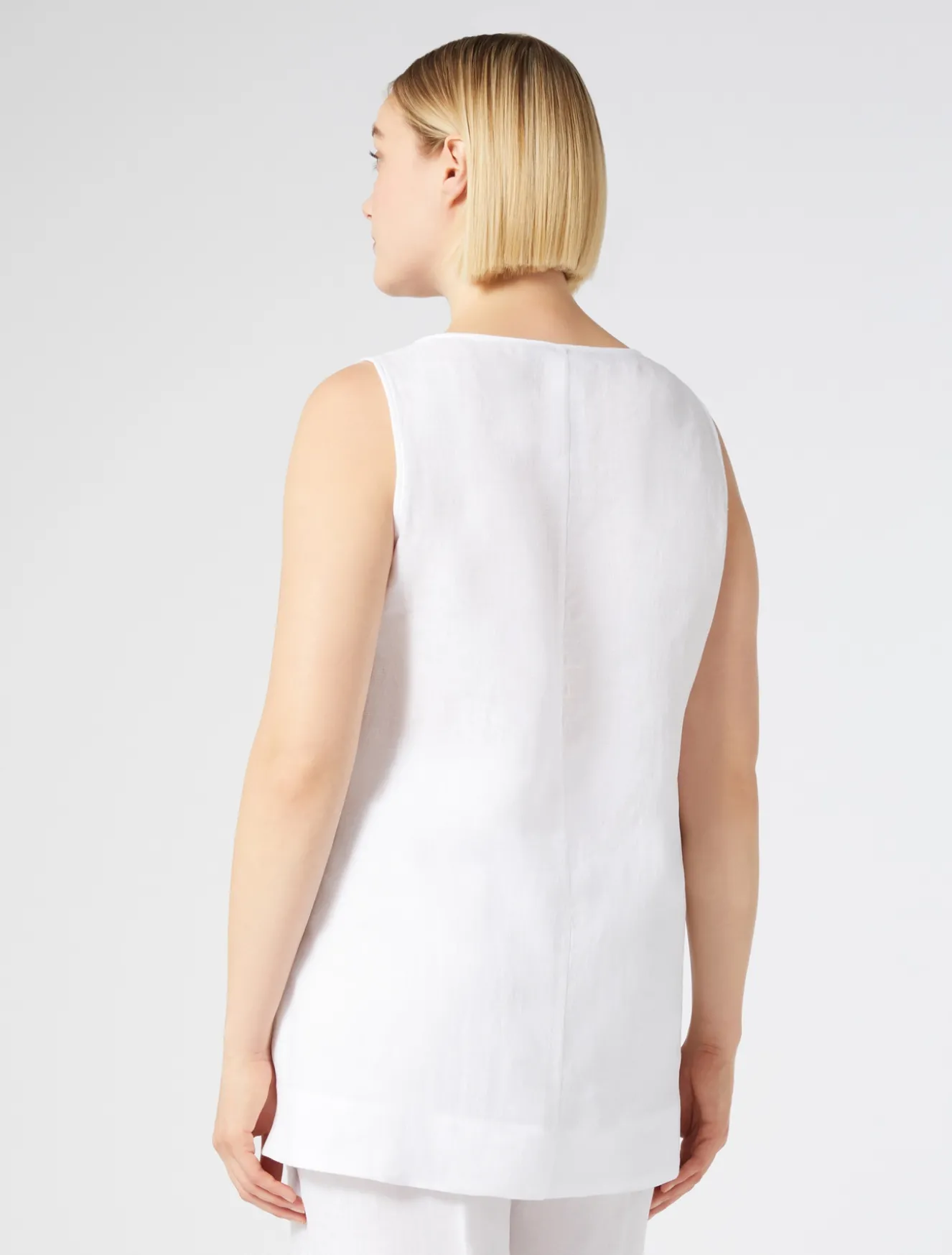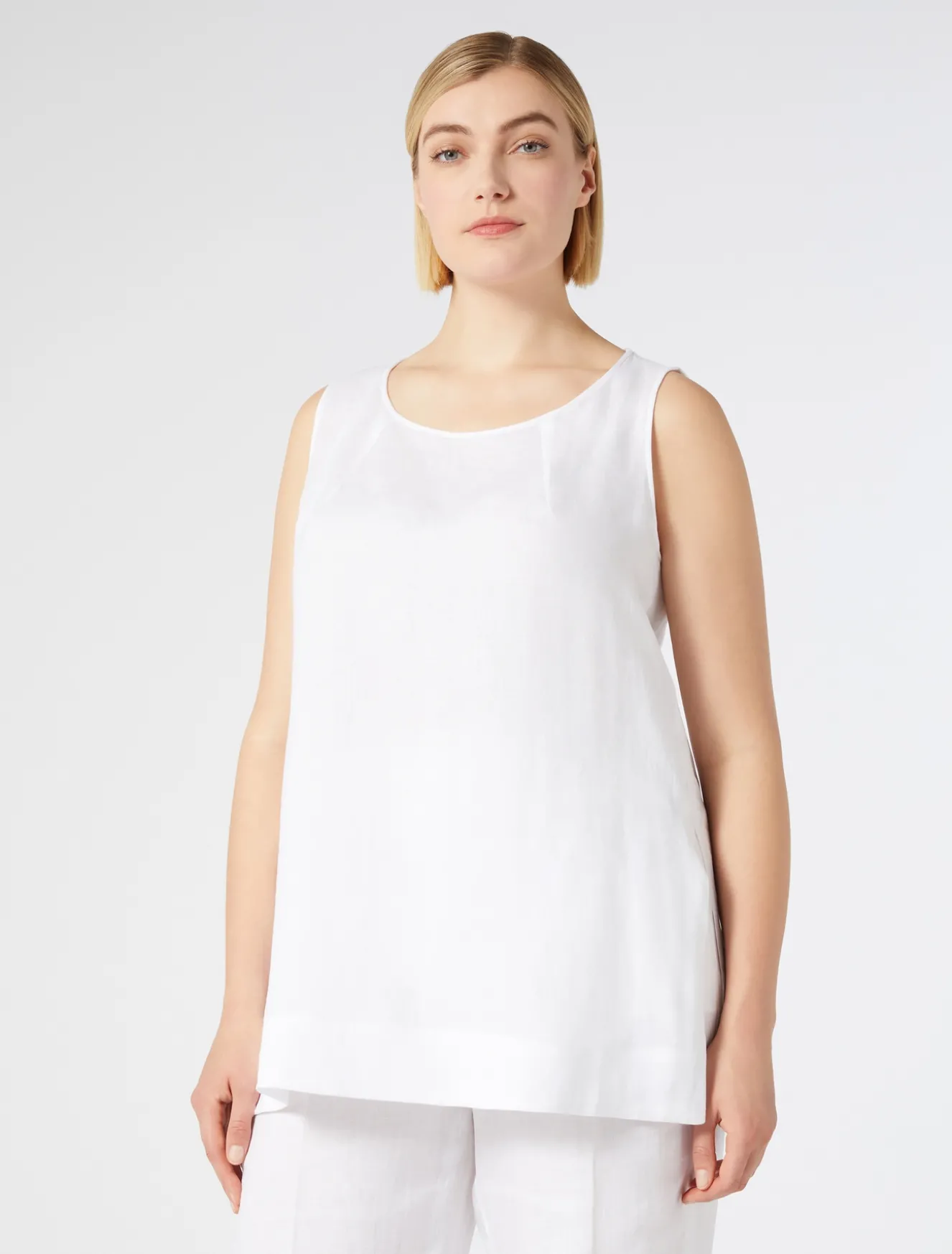 Das leichte Canvas-Top ist aus reinem, verwaschenem Leinen gefertigt und zeichnet sich durch unsichtbare Nähte und einen geraden Schnitt aus. Frisch, vielseitig und raffiniert, kann dieses Kleidungsstück jeden Alltagslook komplettieren, auch in Kombination mit einem passenden Blazer, einer Hose oder einem Rock. Dieses Modell gehört zur Hauptkollektion von Marina Rinaldi.