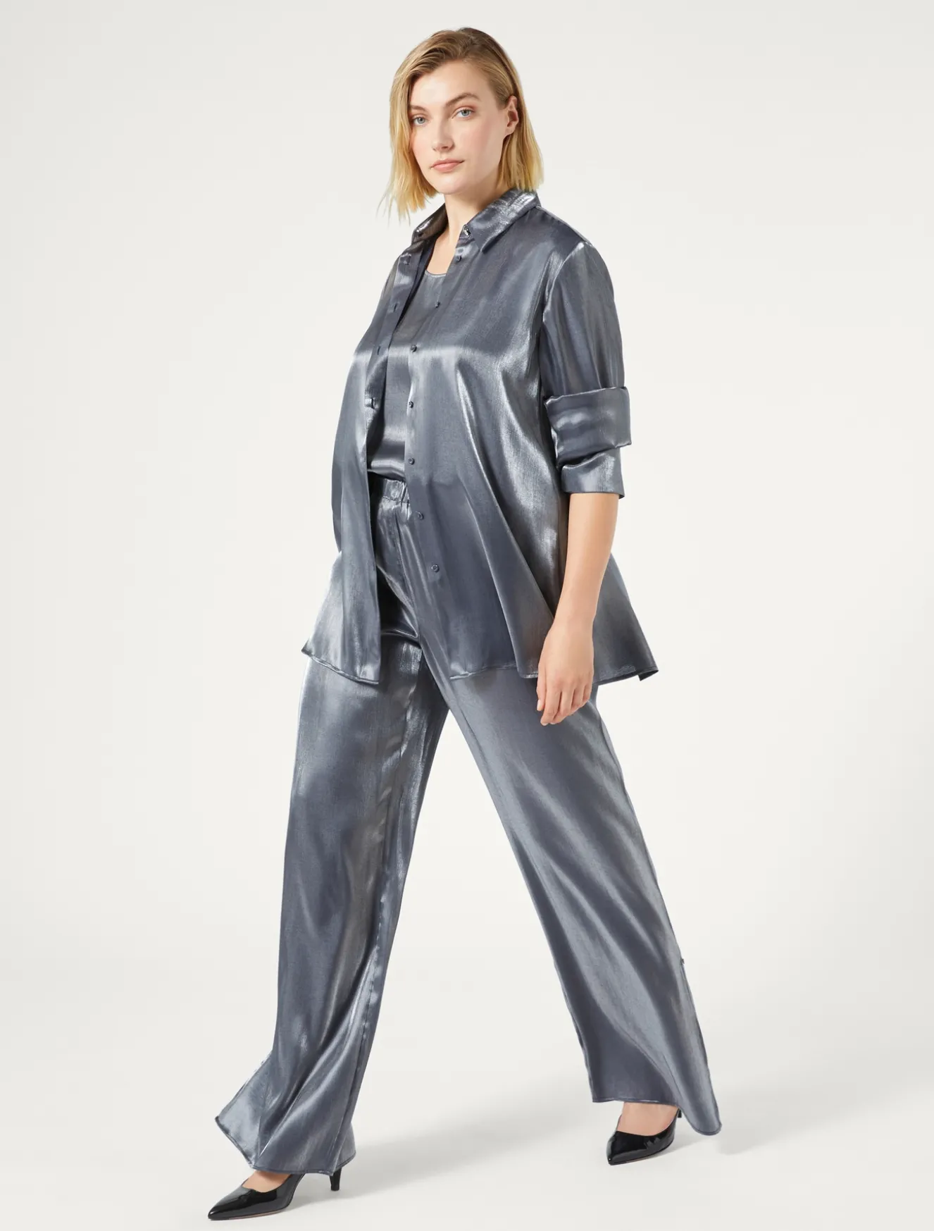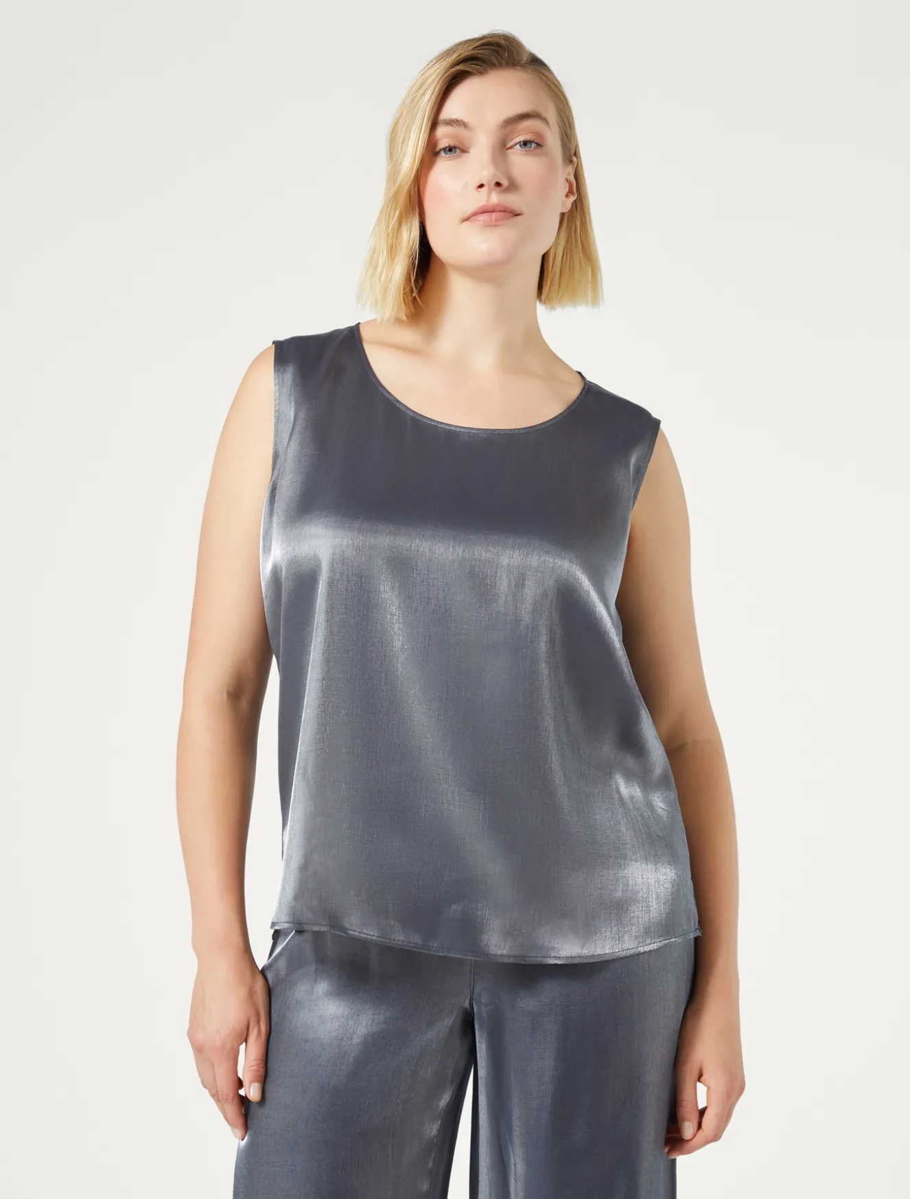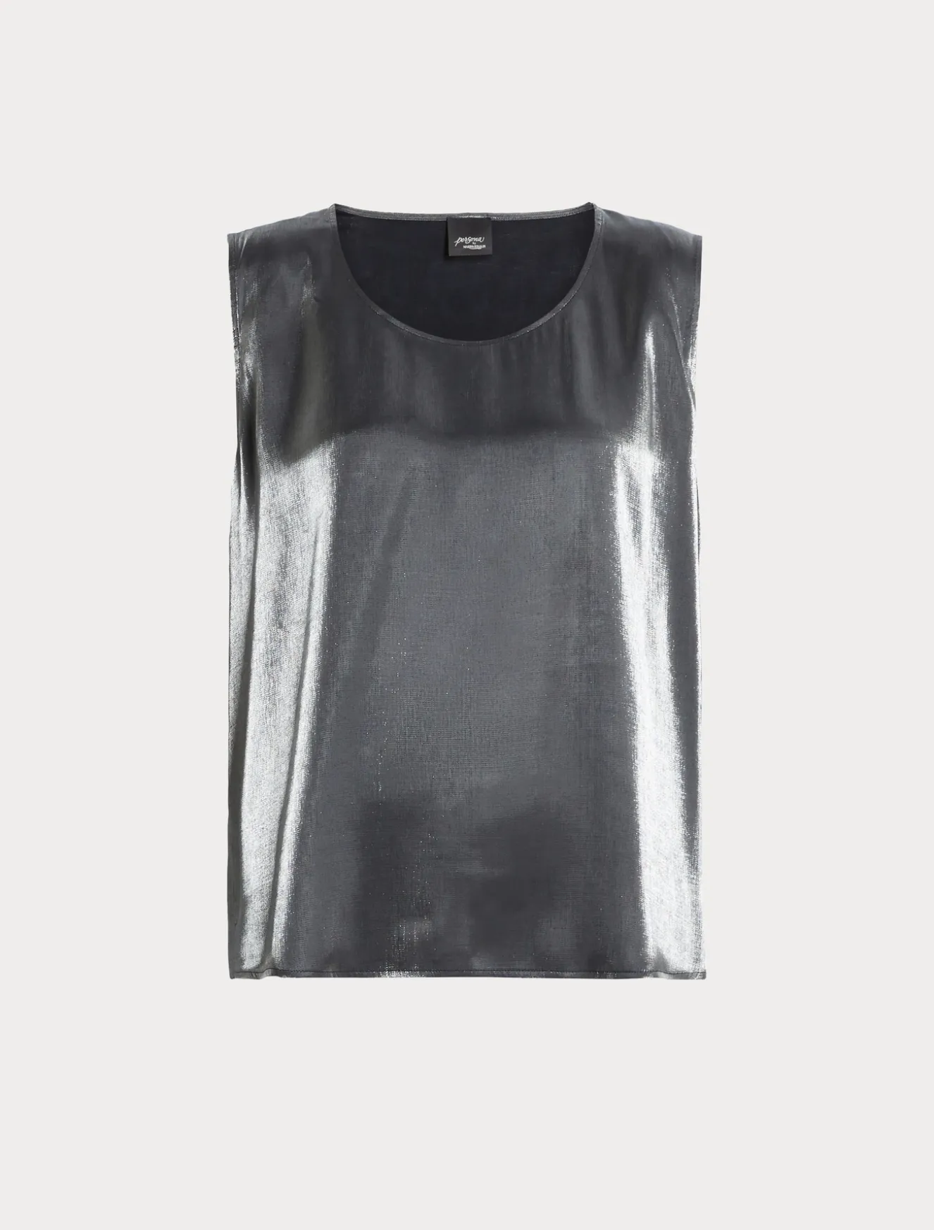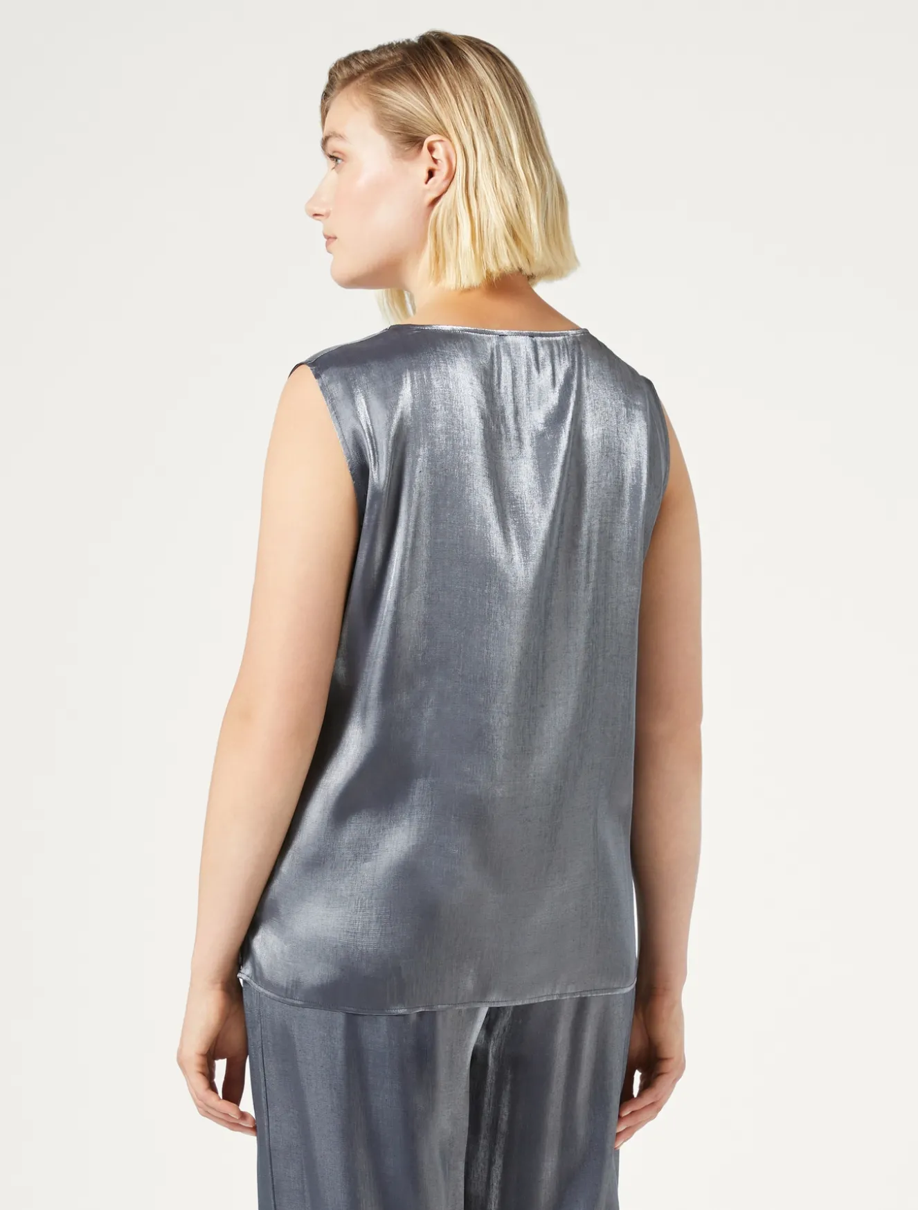 Lässt sich leicht mit dem gerade geschnittenen Top aus Viskose mit Rundhalsausschnitt kombinieren. Die kurzen Ärmel lassen sich unschwer von einem Schneider anbringen. Kann allein, unter einer Jacke oder als Teil eines Langelooks getragen werden.Das Kleidungsstück ist Teil der Kollektion Persona by Marina Rinaldi.