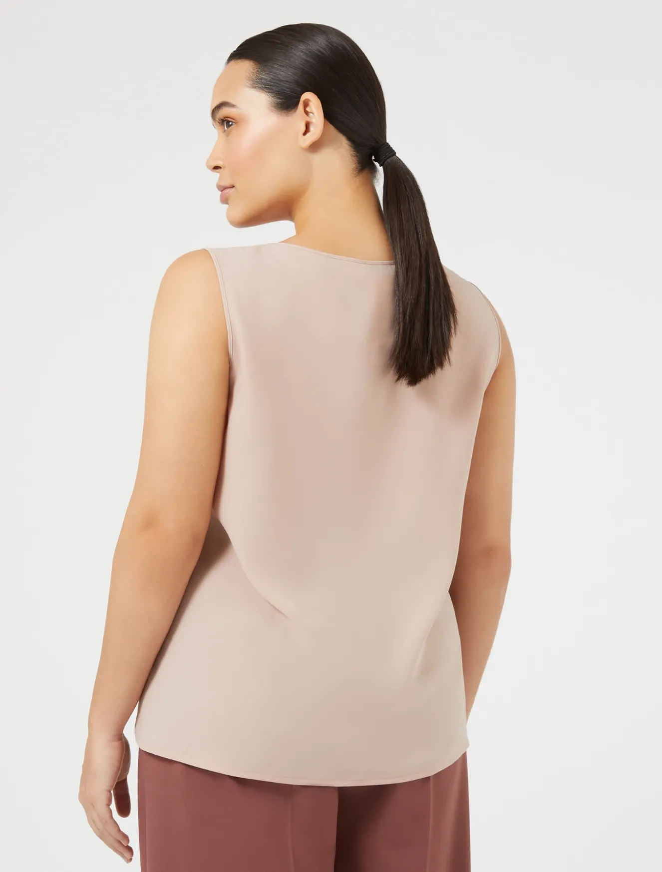 Dieses weich fließende, gerade geschnittene Top ist schlicht und vielseitig kombinierbar. Ein perfektes Oberteil, das sich leicht mit den mitgelieferten kurzen Ärmeln ergänzen lässt, die leicht von einem professionellen Schneider angebracht werden können.Das Kleidungsstück ist Teil der Kollektion „Voyage“.