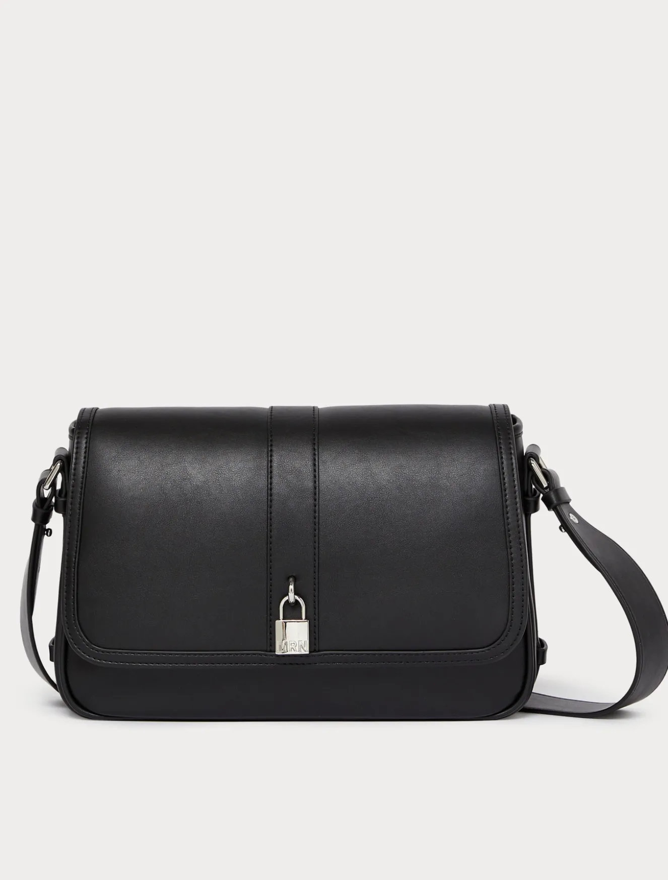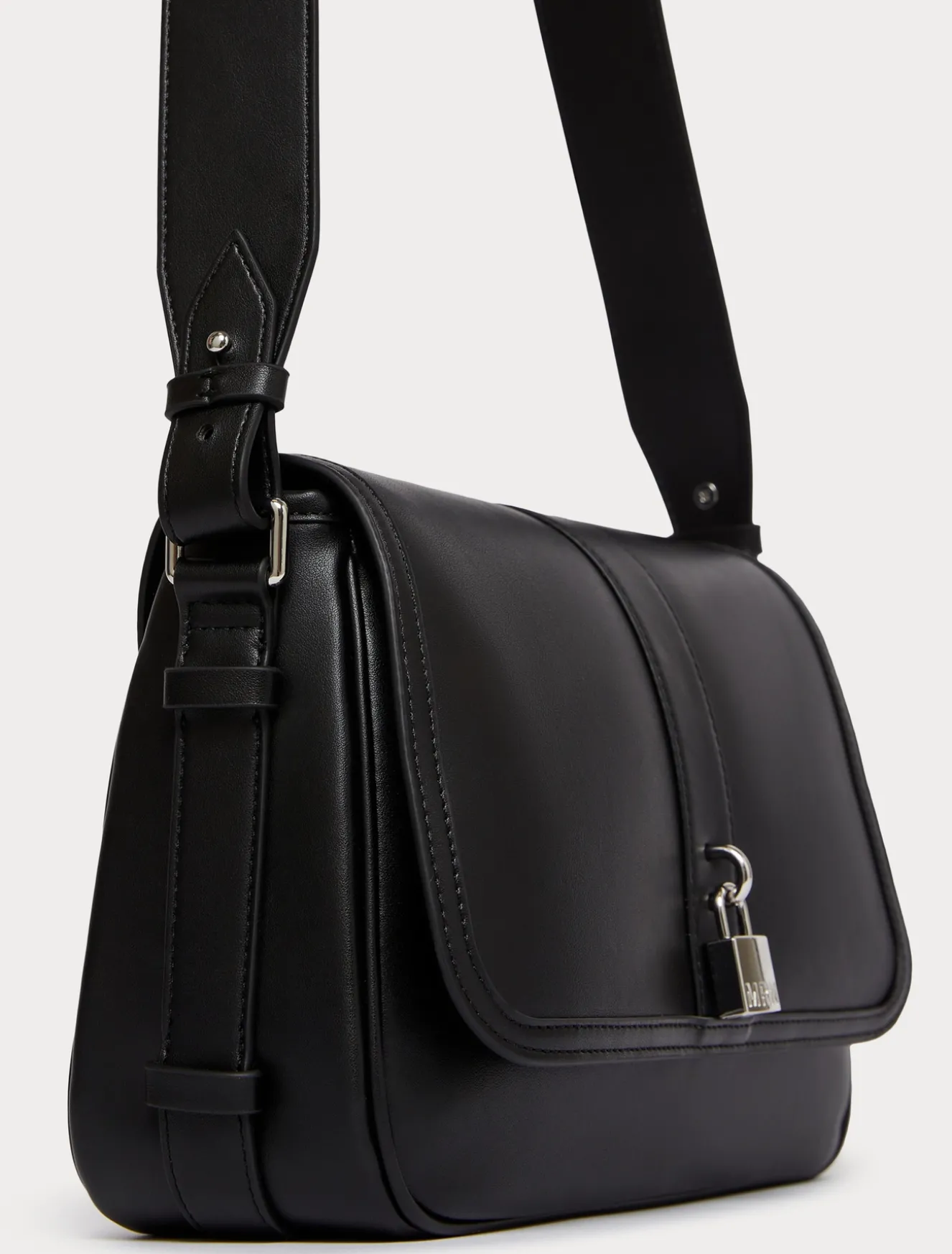 Diese Umhängetasche aus beschichtetem Stoff ist elegant und vielseitig einsetzbar. Sie ist mit einem dekorativen Vorhängeschloss-Motiv auf der Vorderseite verziert.Das Kleidungsstück ist Teil der Kollektion Marina Sport.