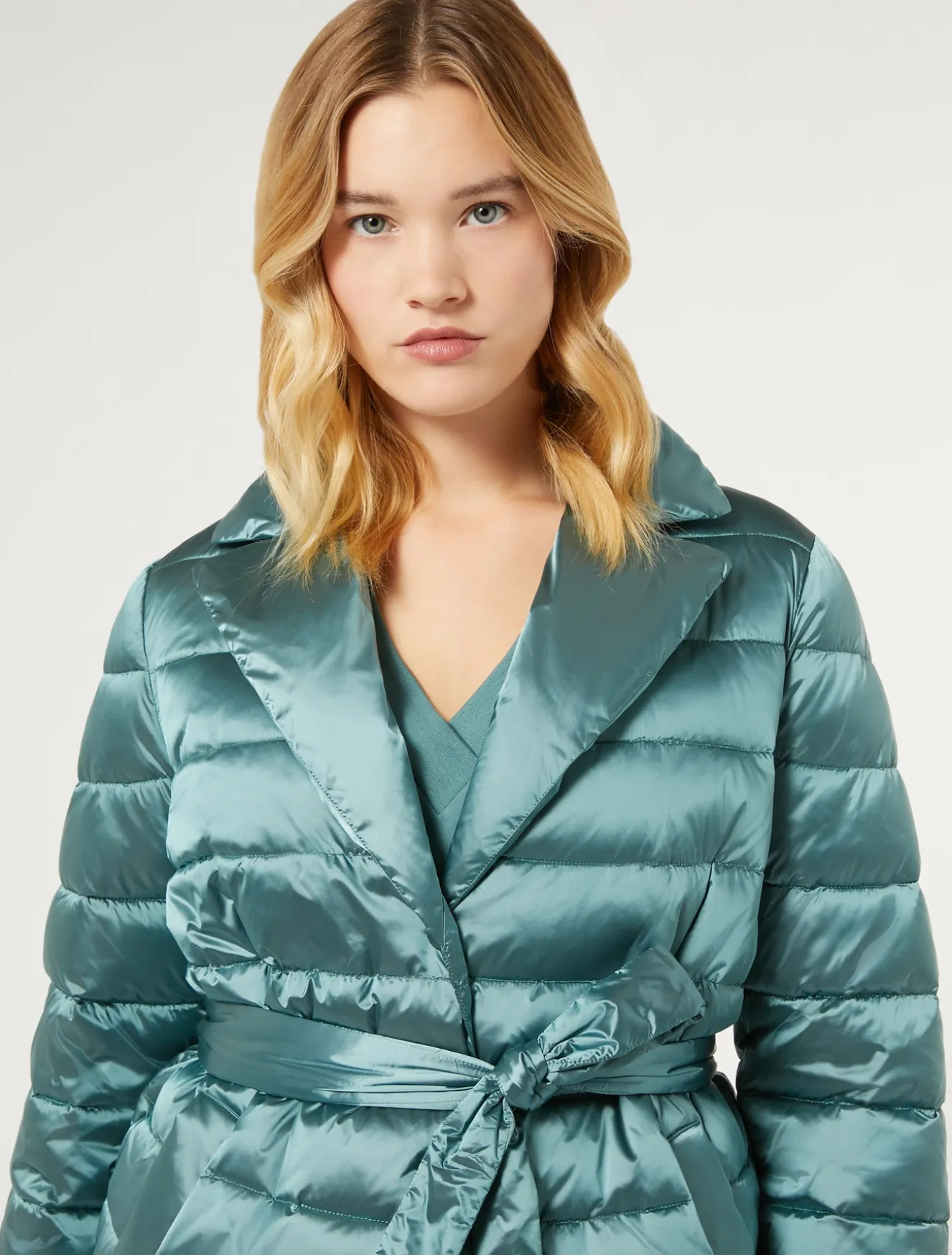 Klassischer Look und technische Strukturen: das ist die Daunenjacke mit Reverskragen, wasserabweisendem Finish und Wattierung . Mit dem passenden Gürtel kannst du die Weite anpassen.Das Kleidungsstück ist Teil der Kollektion Persona by Marina Rinaldi.