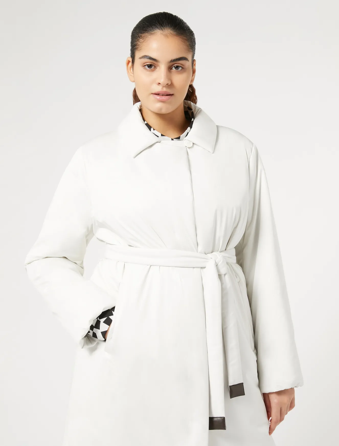 Schlicht eleganter Mantel mit 100-g-Luxepad-Wattierung. Du kannst seinen Sitz mit dem passenden Gürtel mit Lederenden in der Taille regulieren. Die Luxepad Ultra Fine Insulating Technology-Wattierung wurde entwickelt, um auch an kalten Tagen für eine optimierte Körpertemperatur zu sorgen. Das Kleidungsstück ist Teil der Kollektion „Voyage“.