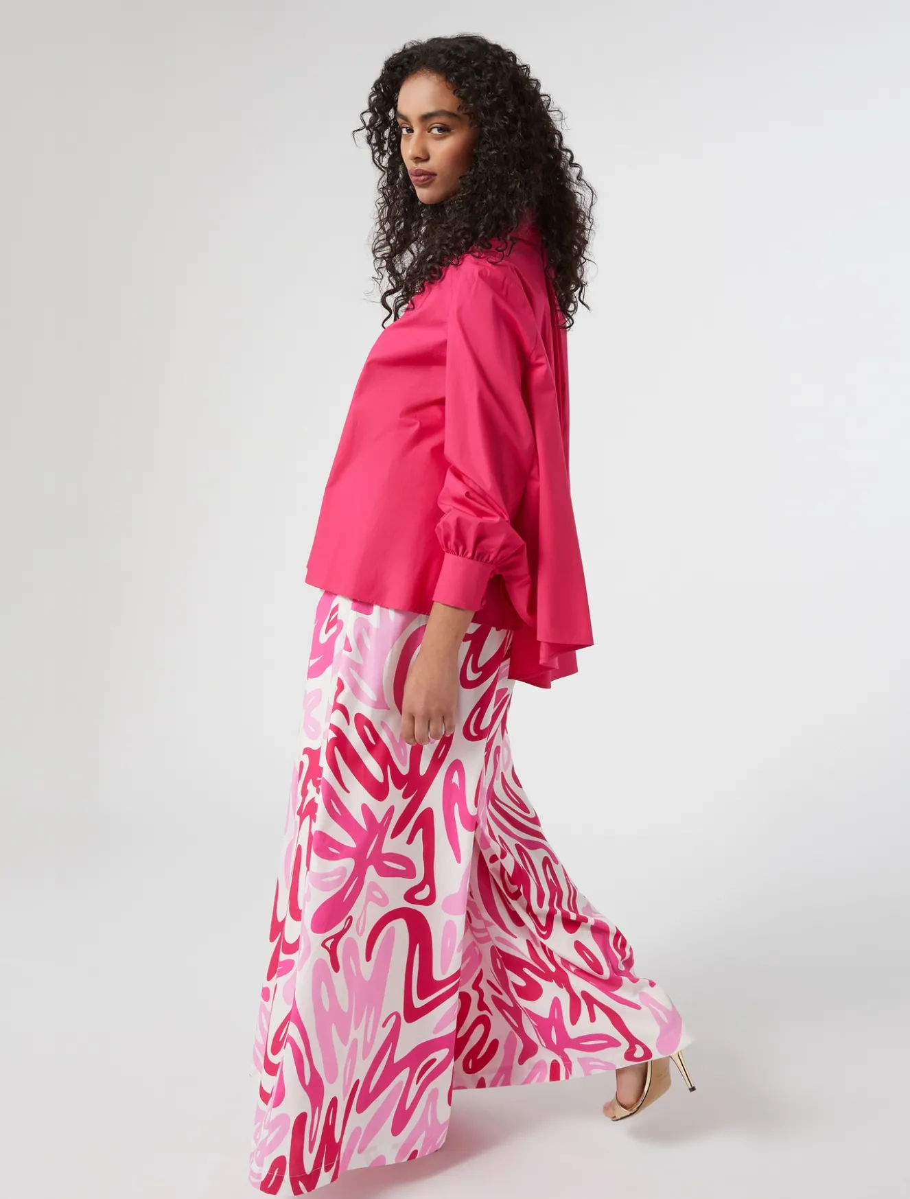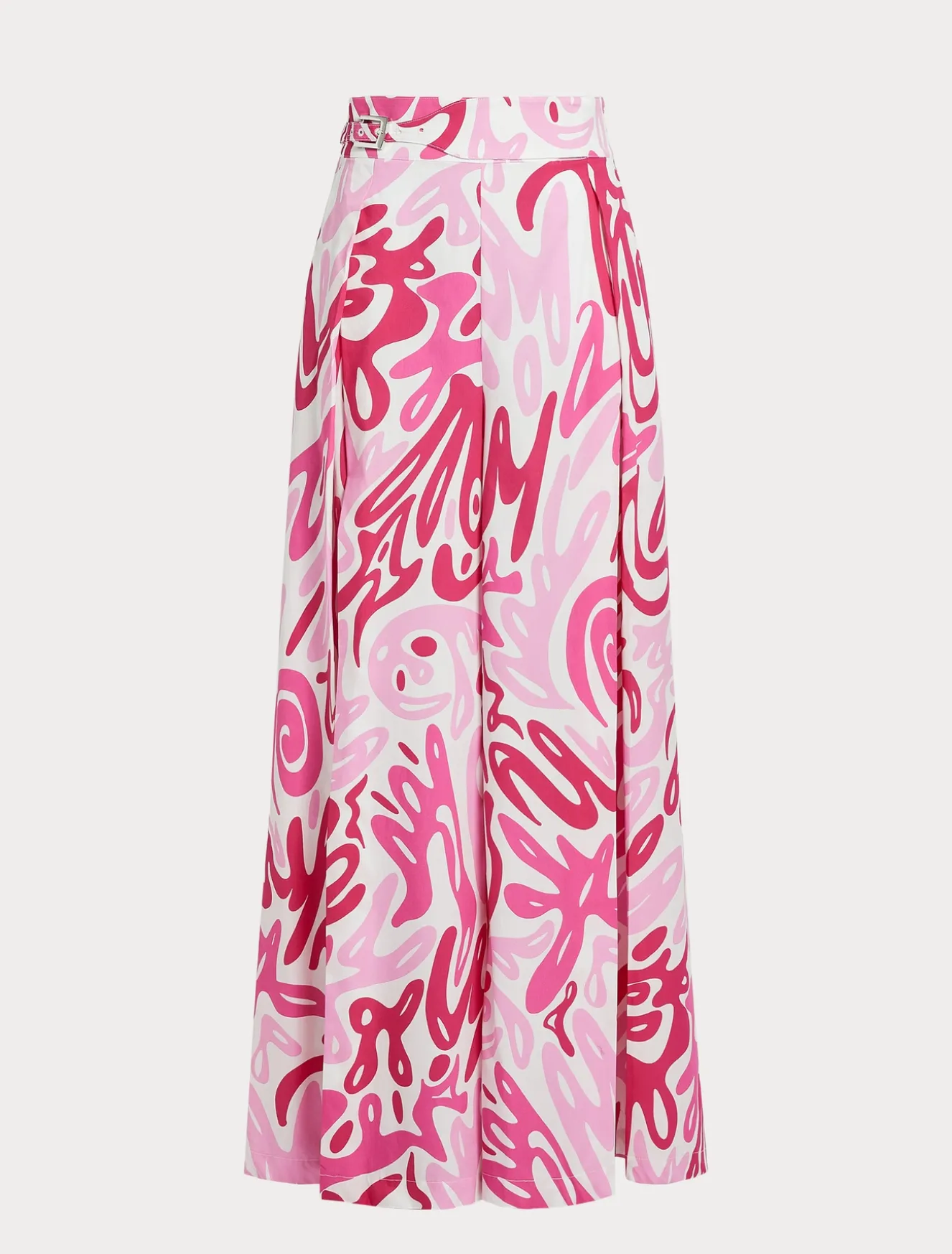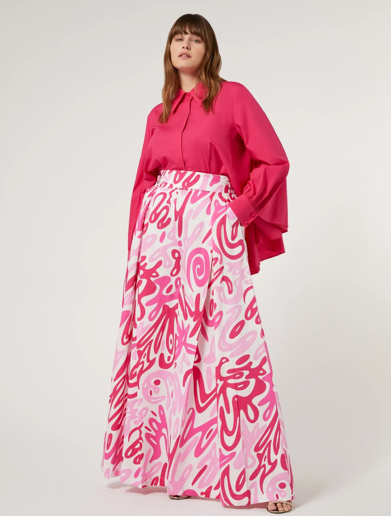 Breite Popeline-Hose mit Kellerfalten vorne und einem exklusiven Print. Taille mit raffinierter Gürtel-Optik und einer Metallschnalle.Das Kleidungsstück ist Teil der Sonderkollektion von Sara Battaglia für Marina Rinaldi.