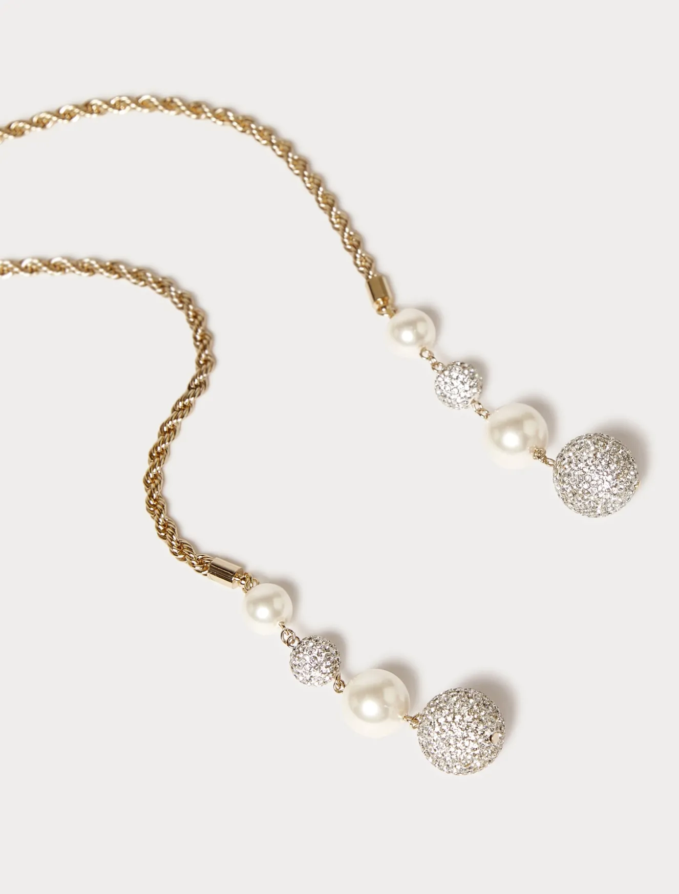 Extralange Kette tragbar als Wickelkette mit großen Perlen und Enden mit Schmuckstein. Ein raffiniertes Schmuckstück für einen Hauch von Glamour.Das Kleidungsstück ist Teil der Kollektion Elegante.