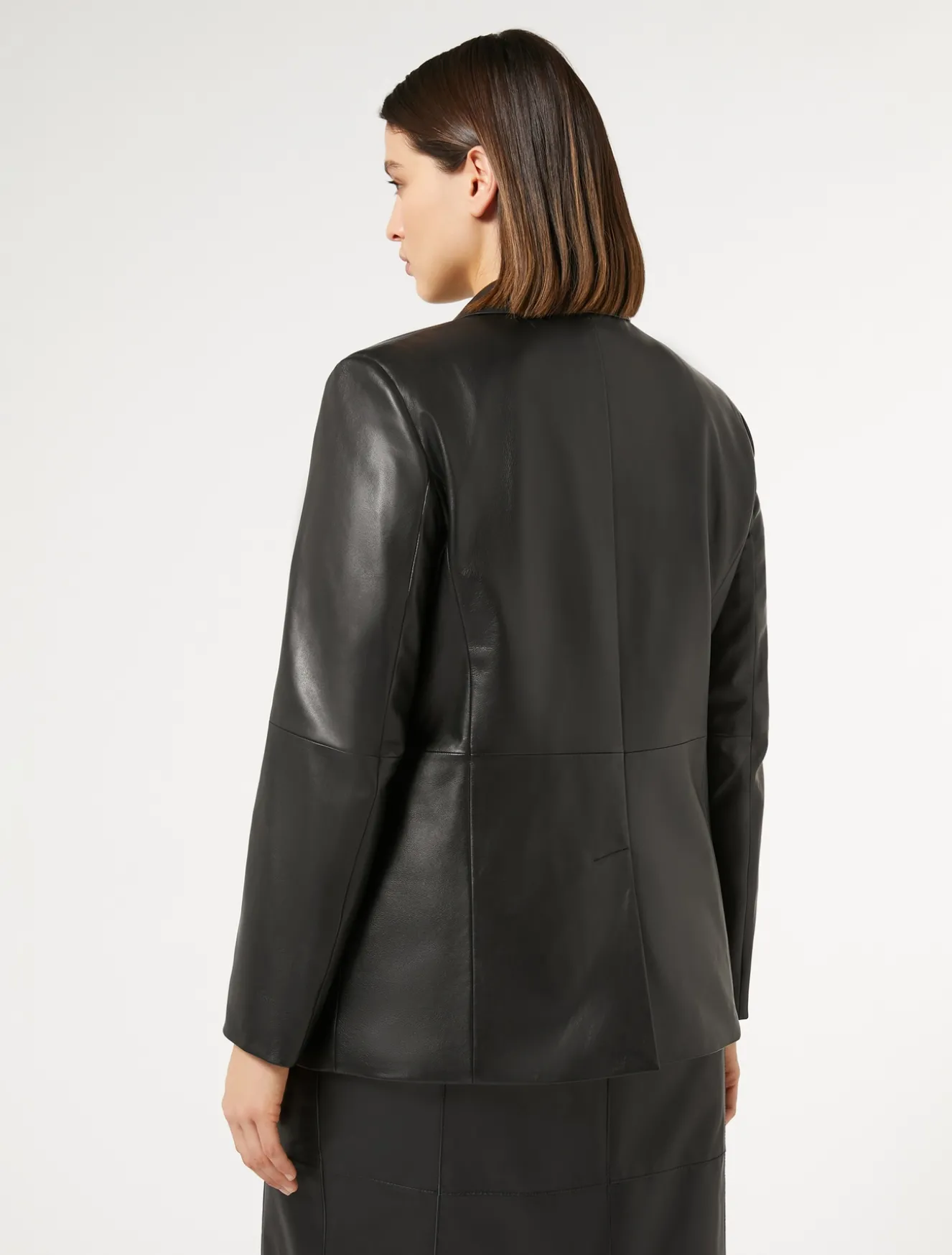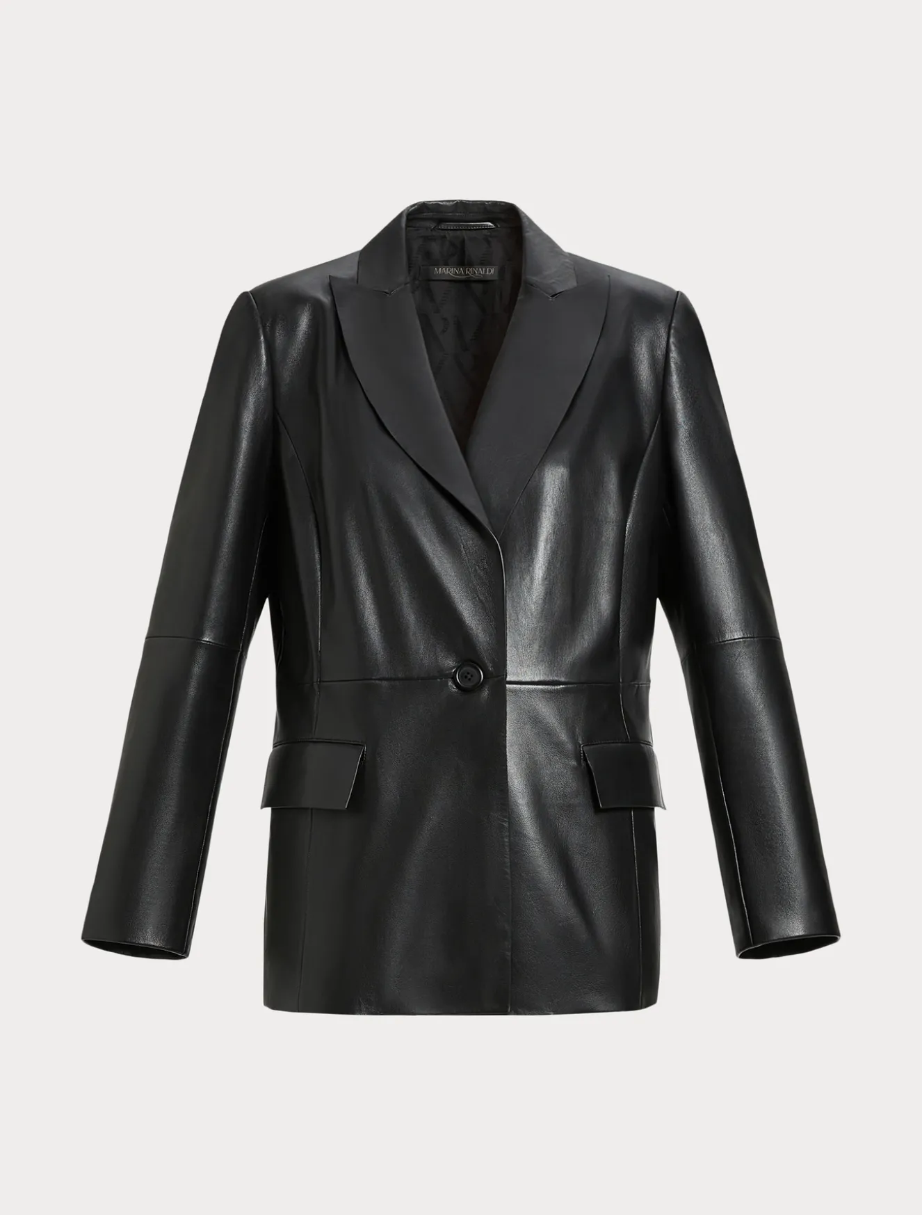Blazerjacke aus Nappaleder mit Teilungsnähten vorne und hinten für eine gelungene Couture-Optik. Der Kragen, das Revers und die Patten sind allesamt mit handgefärbten Rippen versehen. Ein luxuriöses Piece, das jeden Style modern macht.Dieses Modell gehört zur Hauptkollektion von Marina Rinaldi.