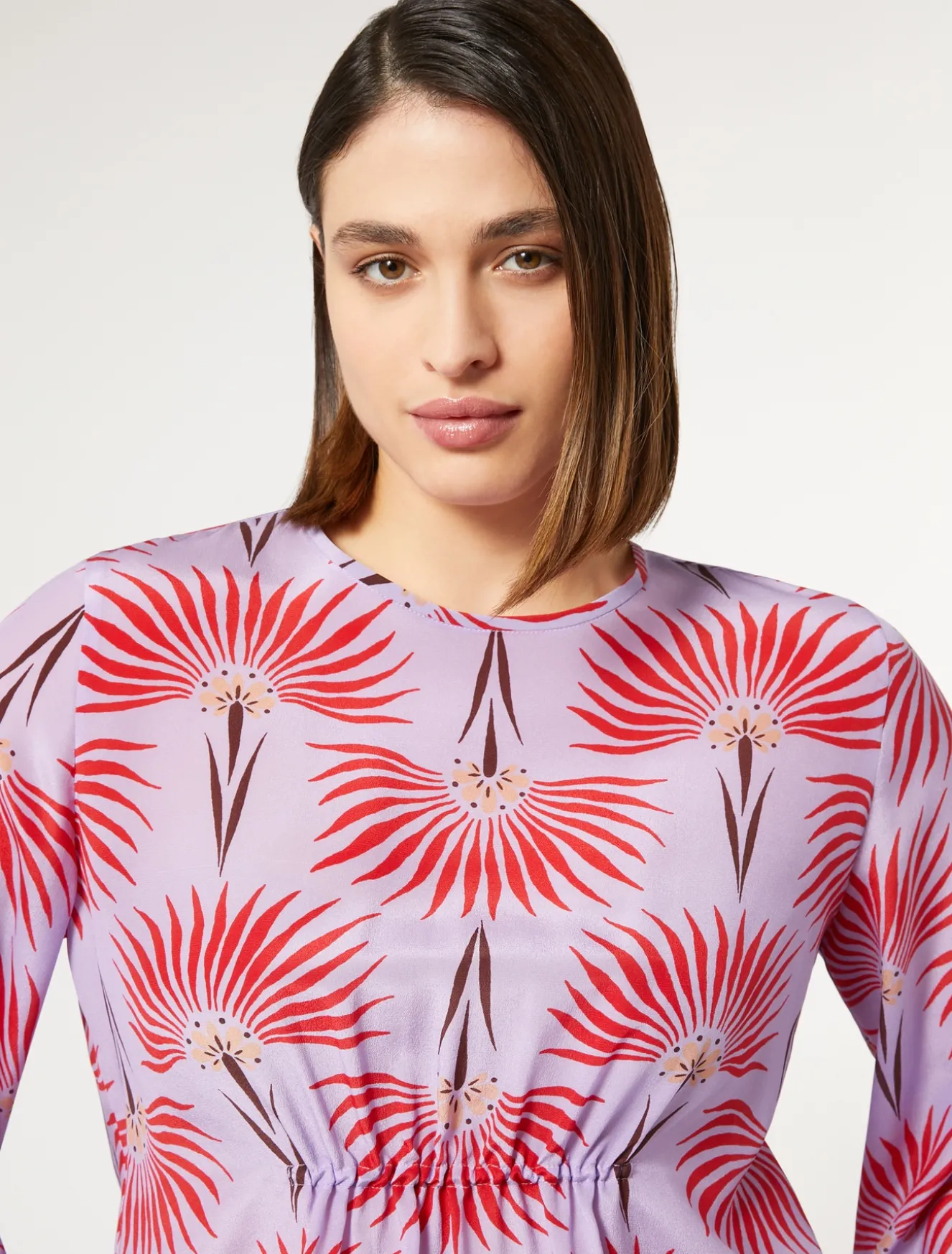 Diese bedruckte Bluse aus reinem Seiden-Crêpe de Chine besticht durch eine elastischer Vorderseite mit Raffung. Elegant und wirkungsvoll – perfekt, um deinem Outfit harakter zu verleihen.Dieses Modell gehört zur Hauptkollektion von Marina Rinaldi.