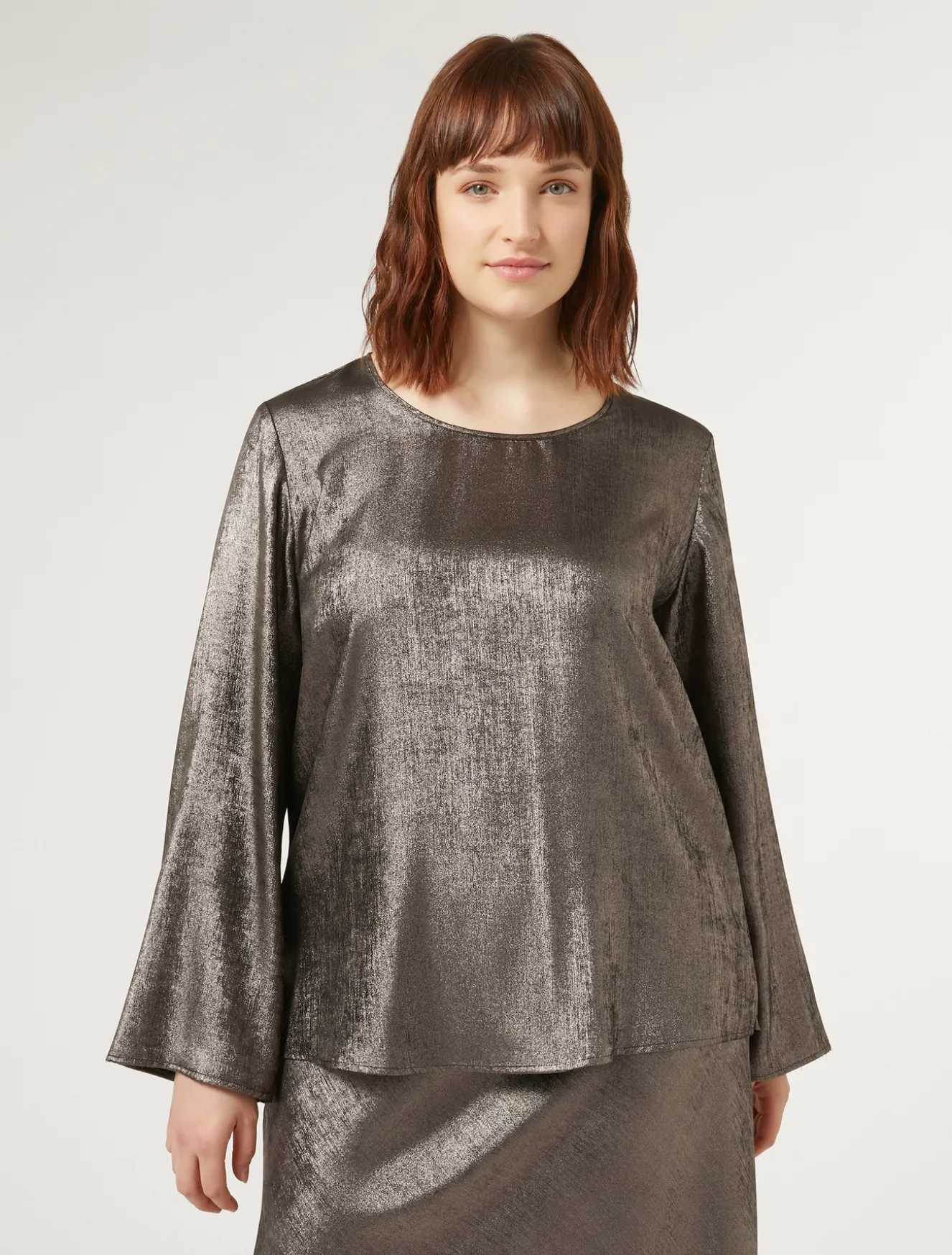 Bluse aus laminiertem Chiffon, mit Rundhalsausschnitt, langen Ärmeln und Seitenschlitzen, die sich wunderbar für zahlreiche Gelegenheiten eignet.Das Kleidungsstück ist Teil der Kollektion Persona by Marina Rinaldi.– Laminierter Chiffon– Gerader Schnitt– Rundhalsausschnitt– Weite lange Ärmel– Kleine Seitenschlitze