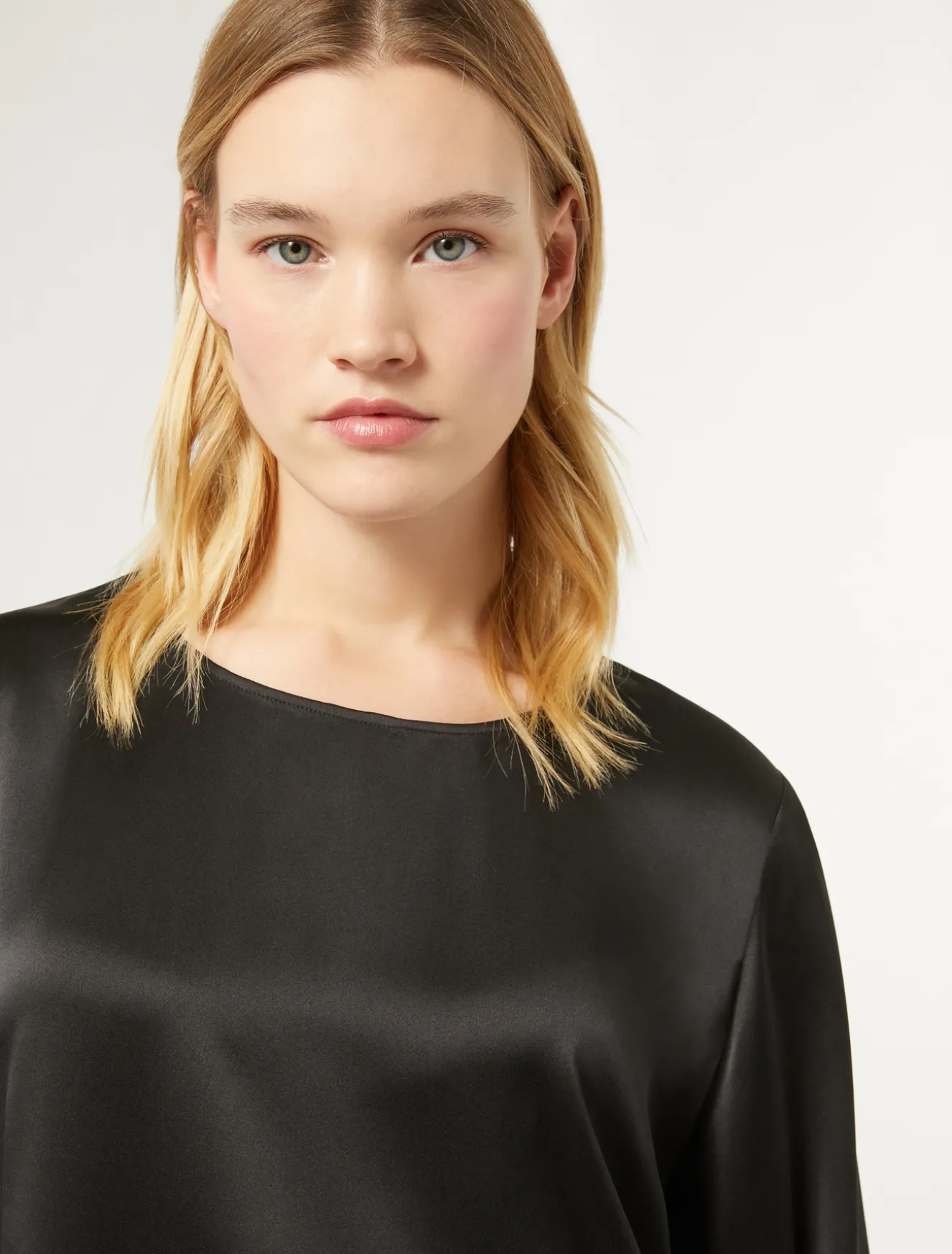 Schlichte Eleganz zeichnet diese gerade geschnittene Bluse aus gewaschenem Seidensatin aus. Das Modell eignet sich perfekt, um sowohl Tages- als auch Abendlooks einen raffinierten und modernen Touch zu verleihen.Das Kleidungsstück ist Teil der Kollektion „Voyage“.