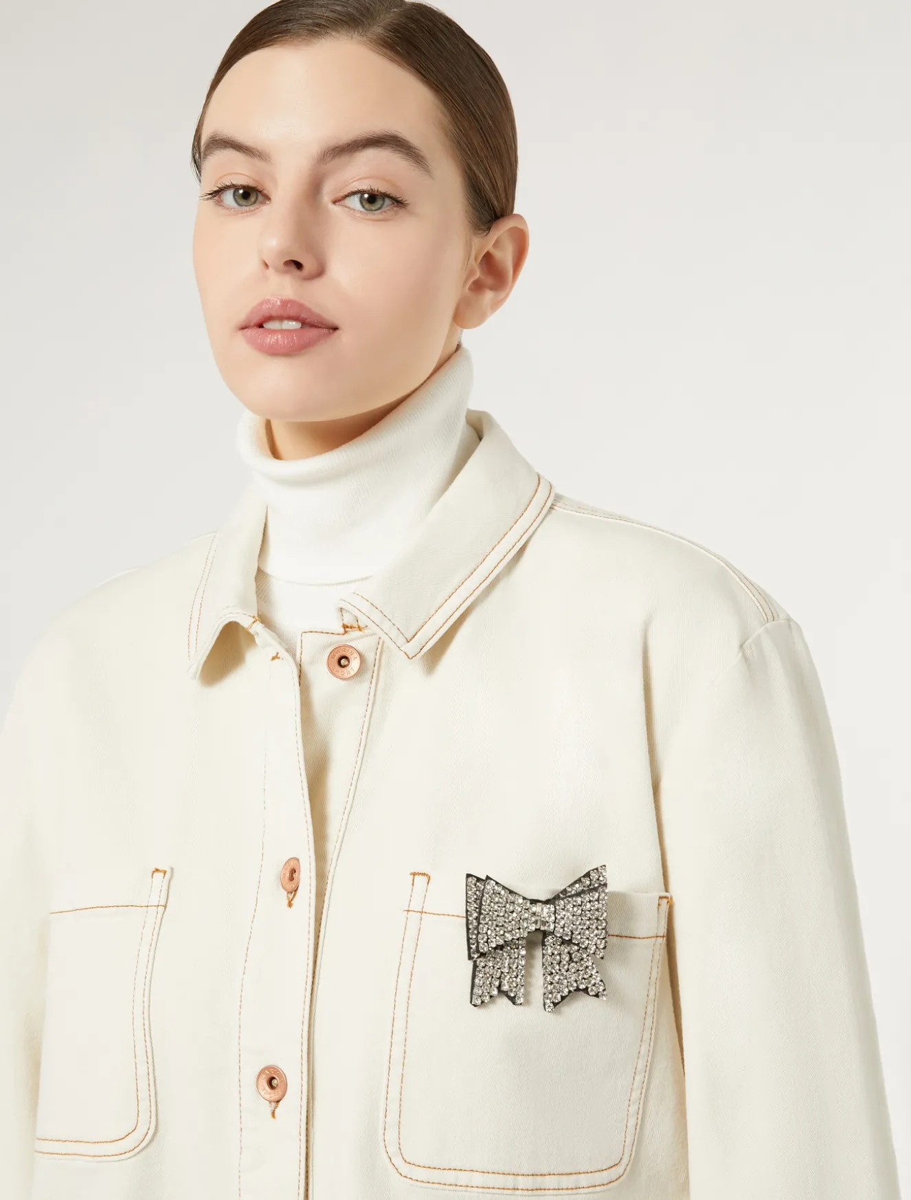 Diese Schmuckbrosche mit Stoffbasis ist mit Strasssteinen aus Glas verziert. Perfekt, um Alltagslooks einen Hauch Glamour zu verleihen.Das Kleidungsstück ist Teil der Kollektion Marina Sport.