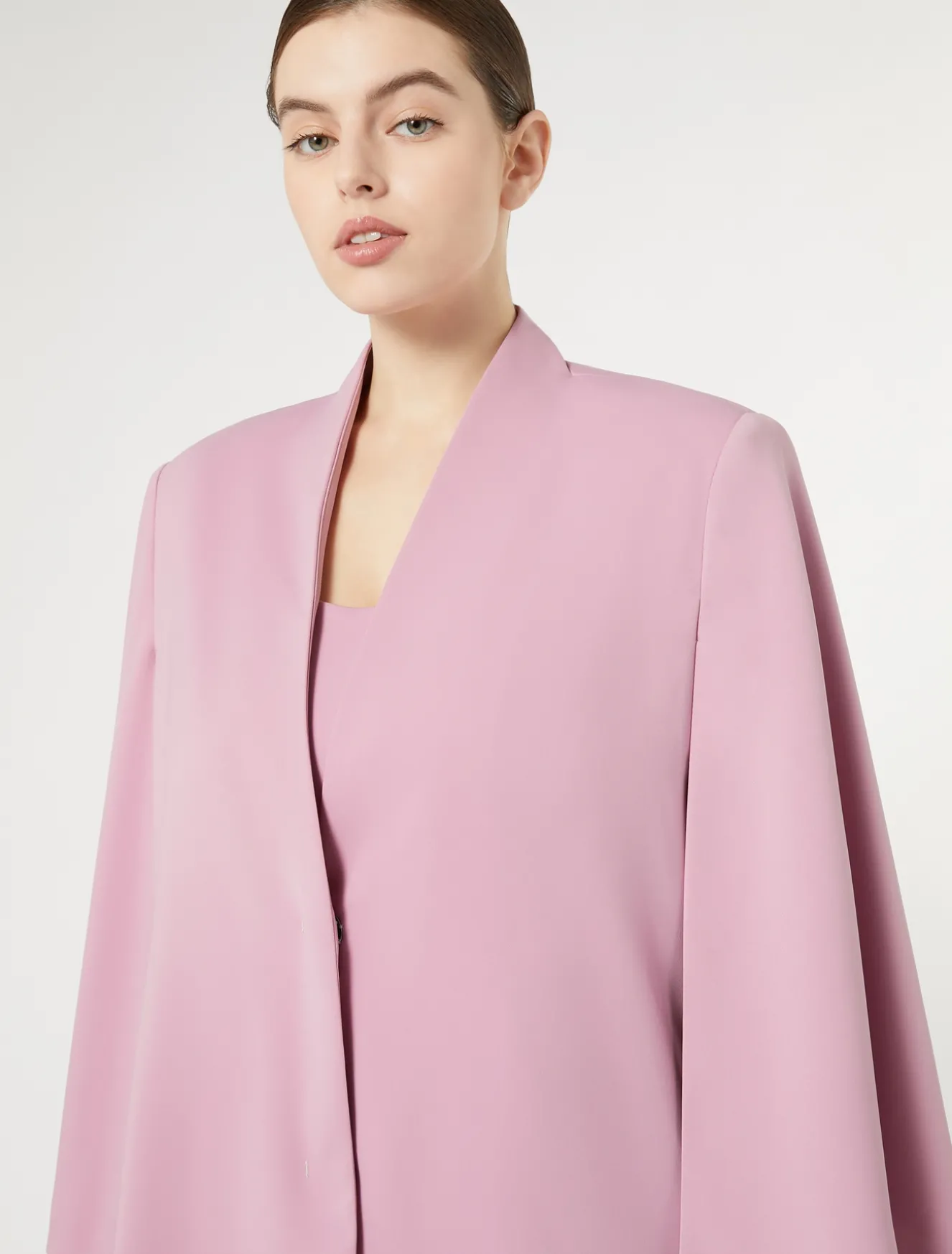 Die Cape-Jacke aus Cady mit V-Ausschnitt und Schlitzen vorne umhüllt die Silhouette in klarer Linienführung und fließender Passform. Der Druckknopfverschluss ermöglicht einen sofortigen Sitz.Das Kleidungsstück ist Teil der Kollektion Persona by Marina Rinaldi.