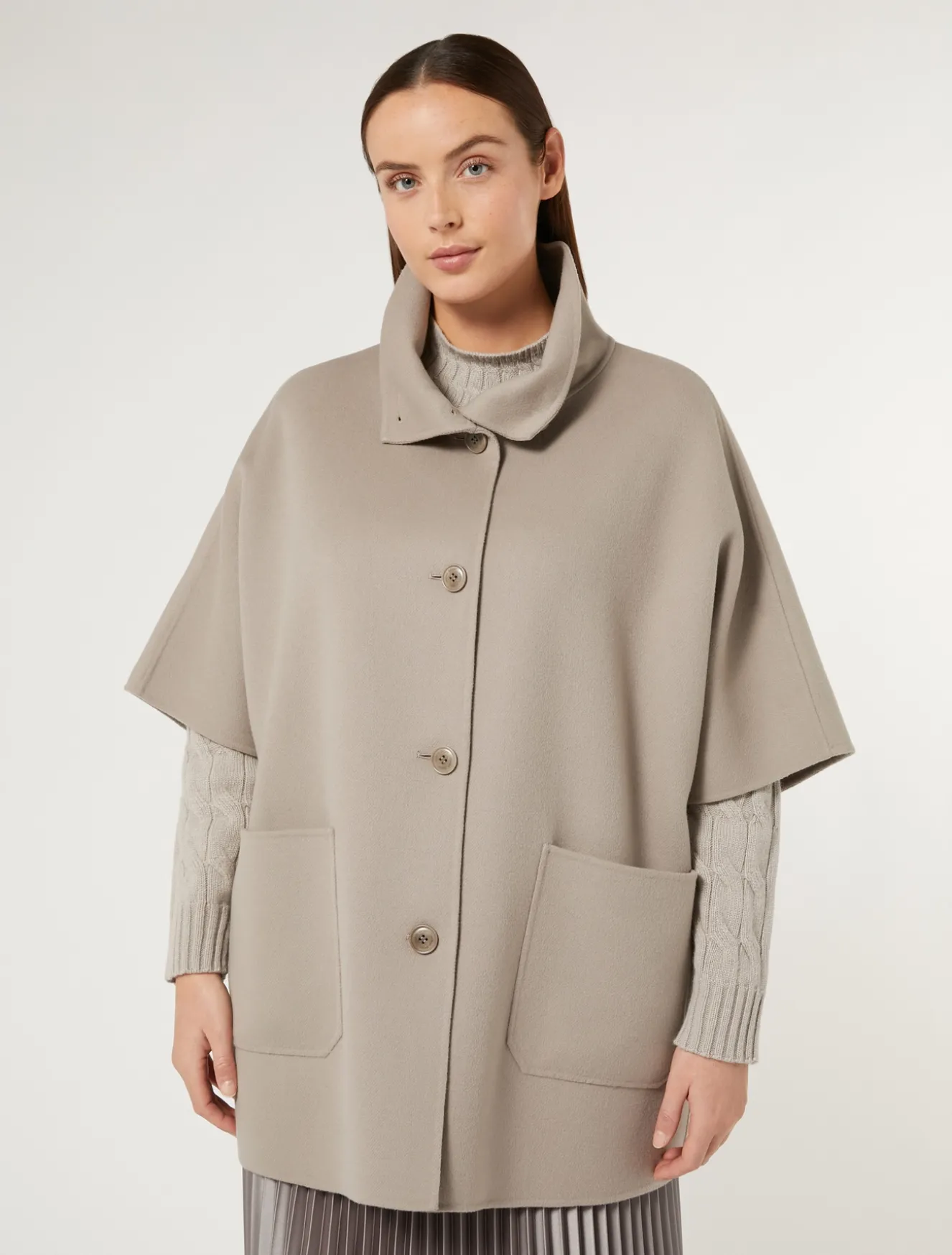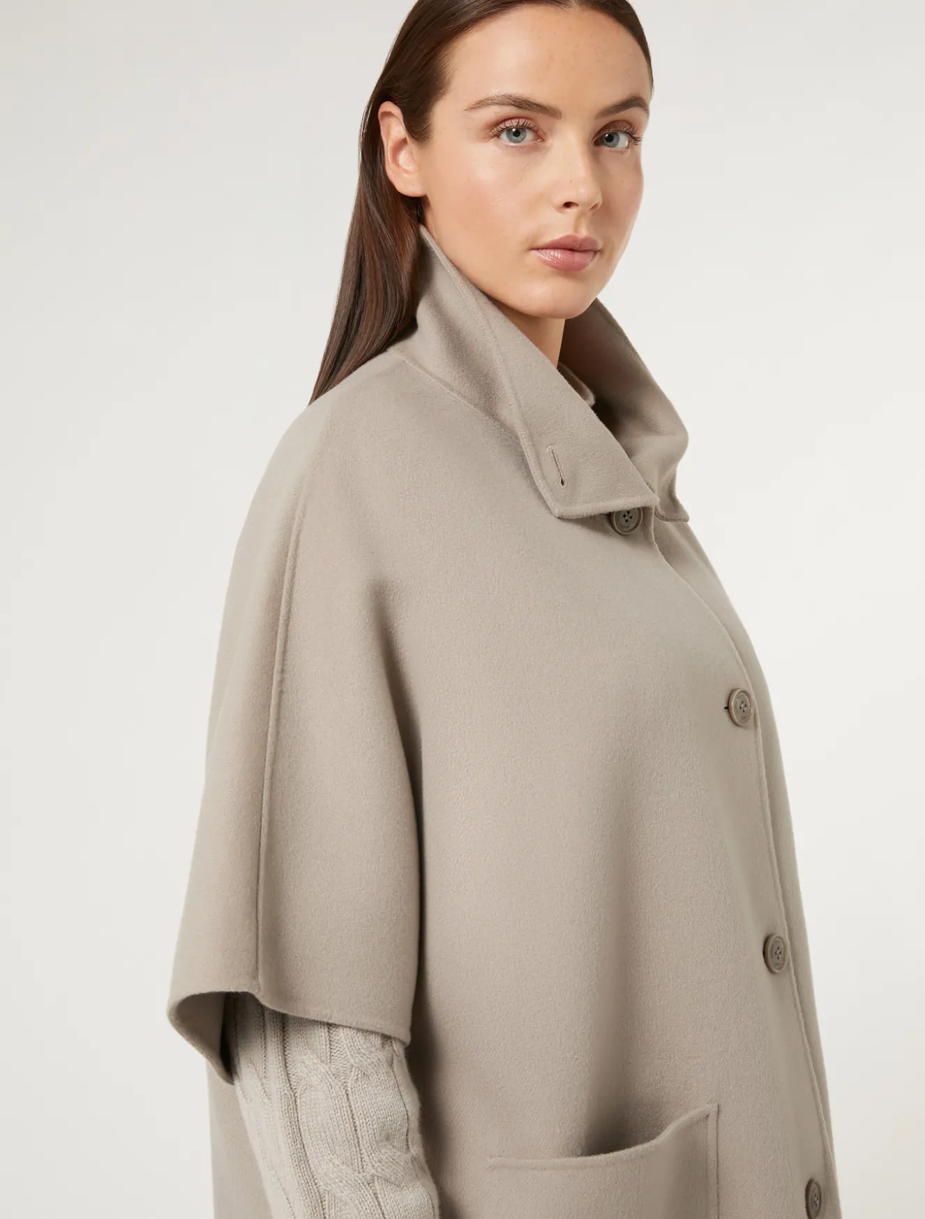Dieses überschnittene Cape ist aus doppelter Wolle und Nylon gefertigt und mit handgenähten Kimonoärmeln versehen. Elegant und vielseitig – perfekt für den Alltag.Das Kleidungsstück ist Teil der Kollektion Marina Sport.