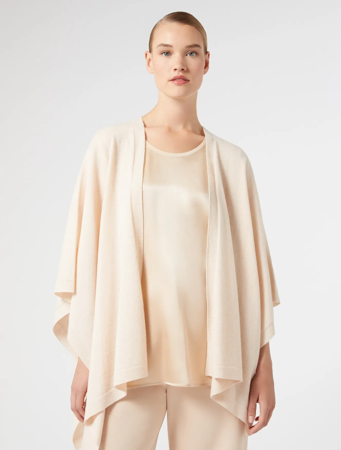 Das luxuriöse Cape aus reinem Woll-Streichgarn verleiht Outfits sofort noch mehr Stil. Perfekt für den Lagenlook und Outfit-Kombinationen.