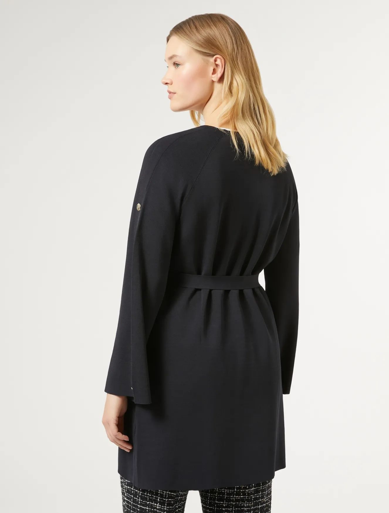 Raffinierter Cardigan aus blickdichtem Comfort-Viskosestoff mit tiefen Ärmelausschnitten und Schmuckknöpfen. Lässt sich wunderbar mit dem mitgelieferten Gürtel tragen. Lässt sich wunderbar mit der dazu passenden Hose kombinieren.Dieses Modell gehört zur Hauptkollektion von Marina Rinaldi.