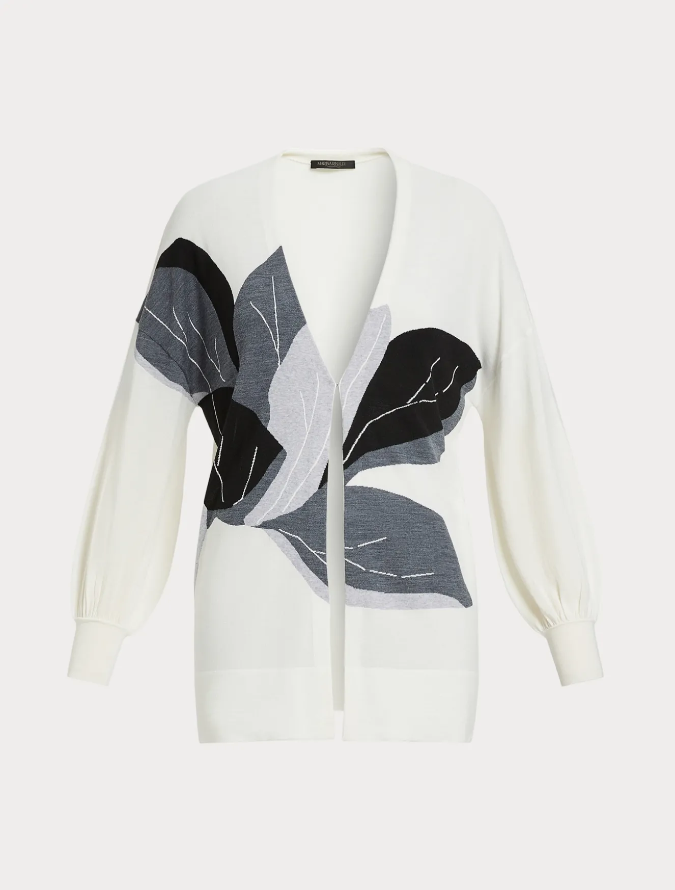 Cardigan aus Wolle, Seide und Kaschmir mit Ärmel aus Intarsienstrick und einer Vorderseite mit Makroblumenmotiv Ein raffinierter Style für einen raffinierten Look.Dieses Modell gehört zur Hauptkollektion von Marina Rinaldi.