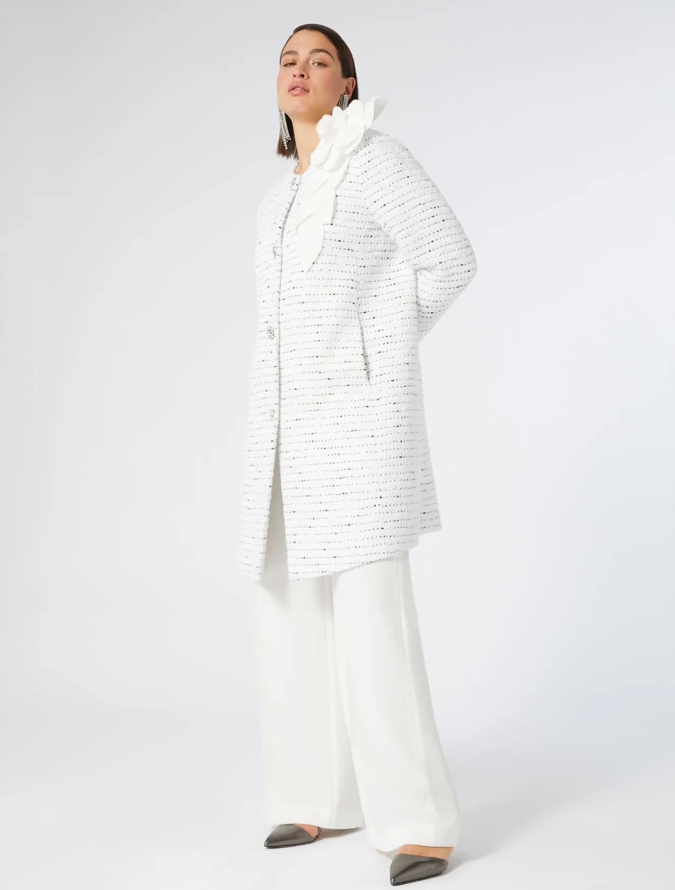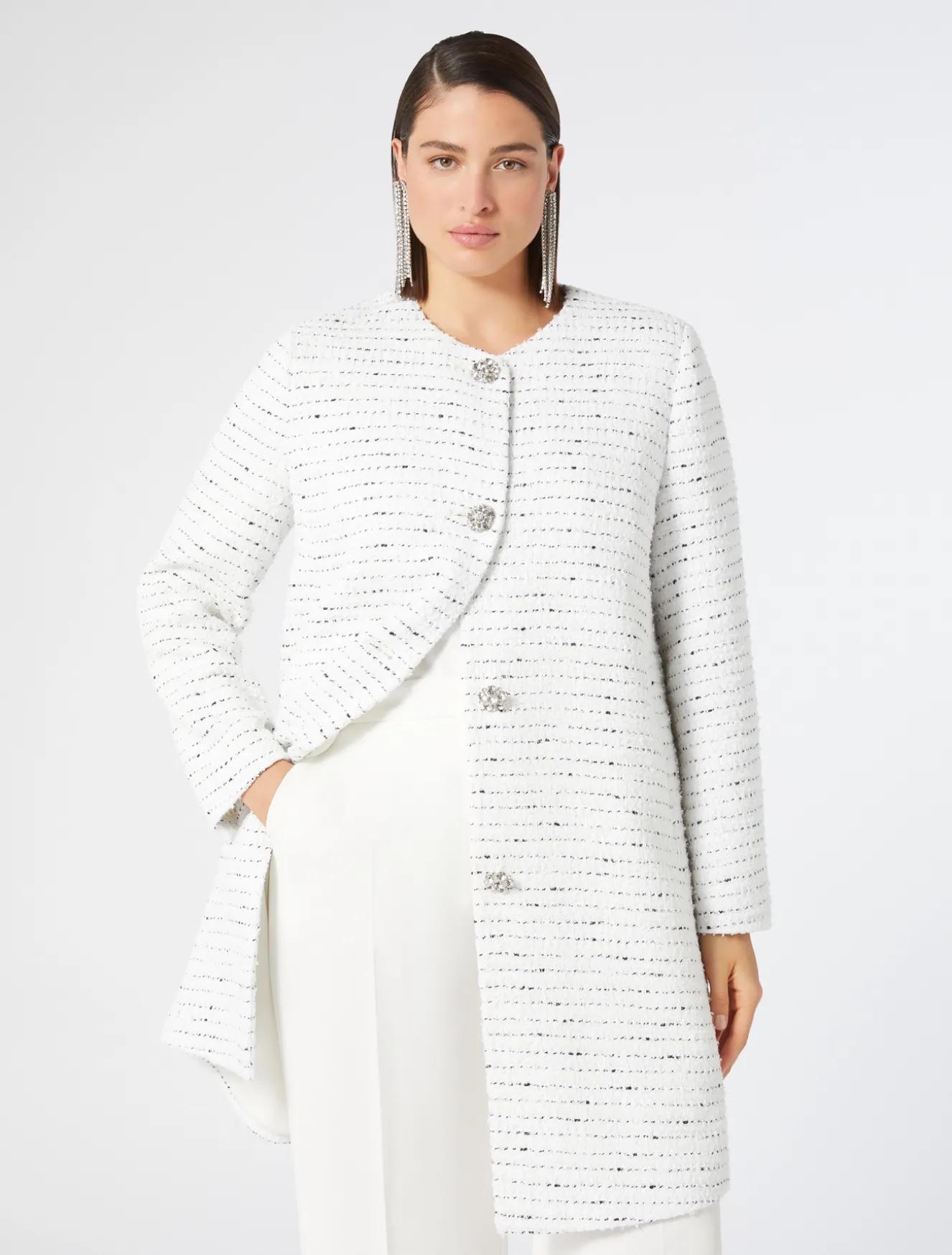 Vervollständigen Sie Ihre Outfits für besondere Anlässe mit diesem gerade geschnittenen, garngefärbten leichten Mantel. Schmuckknöpfe aus Glaskristall sorgen für einen glamourösen Touch, der Ihren Stil zu etwas ganz Besonderem macht.