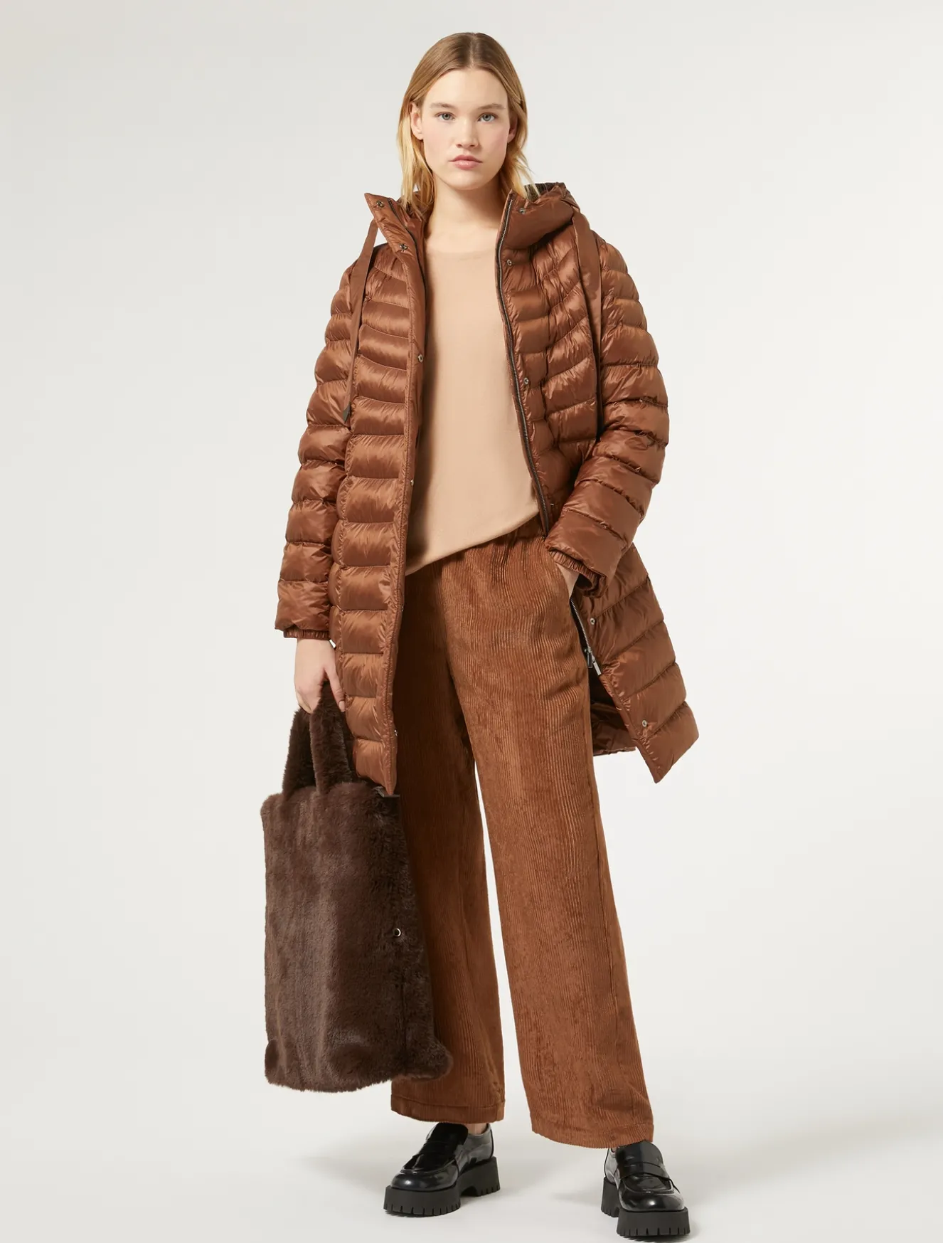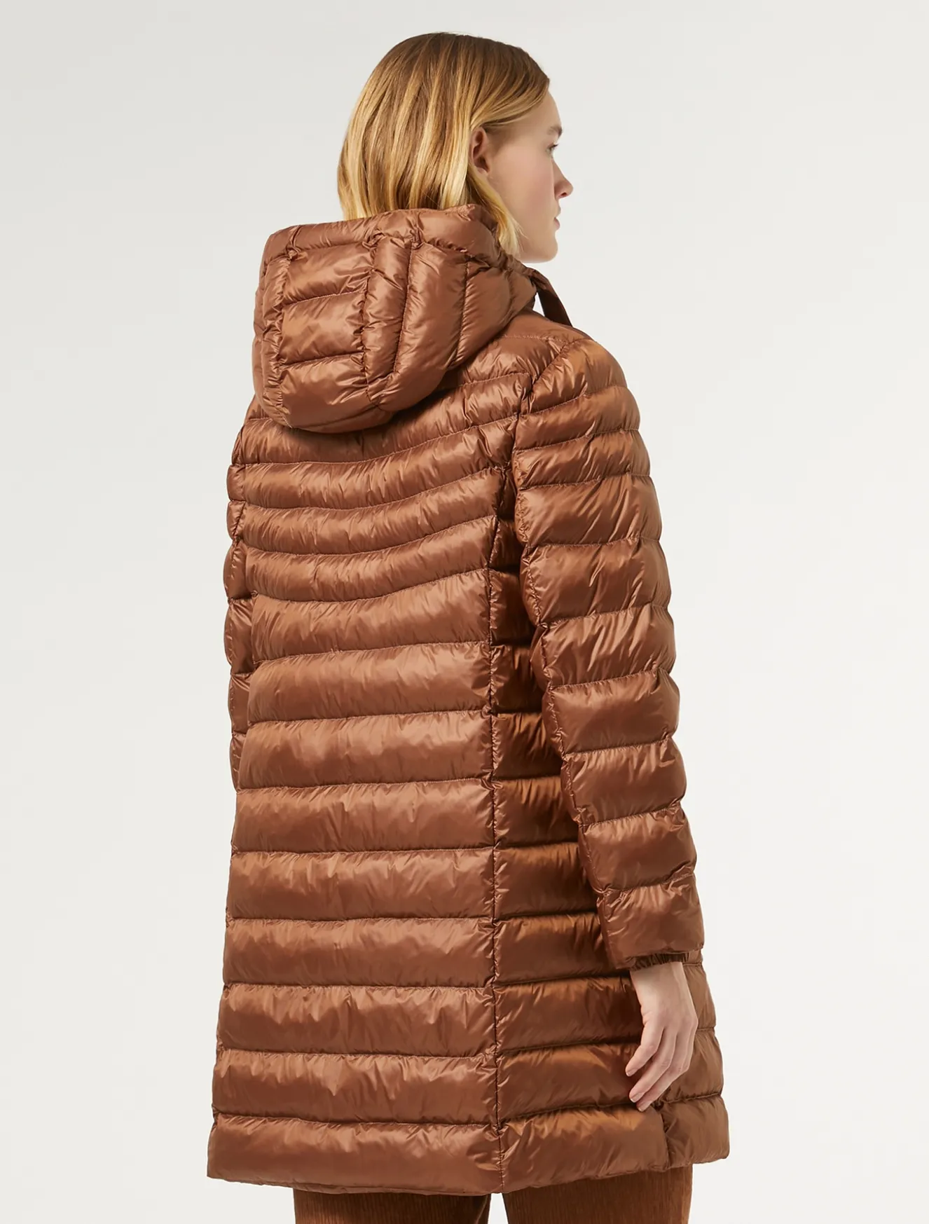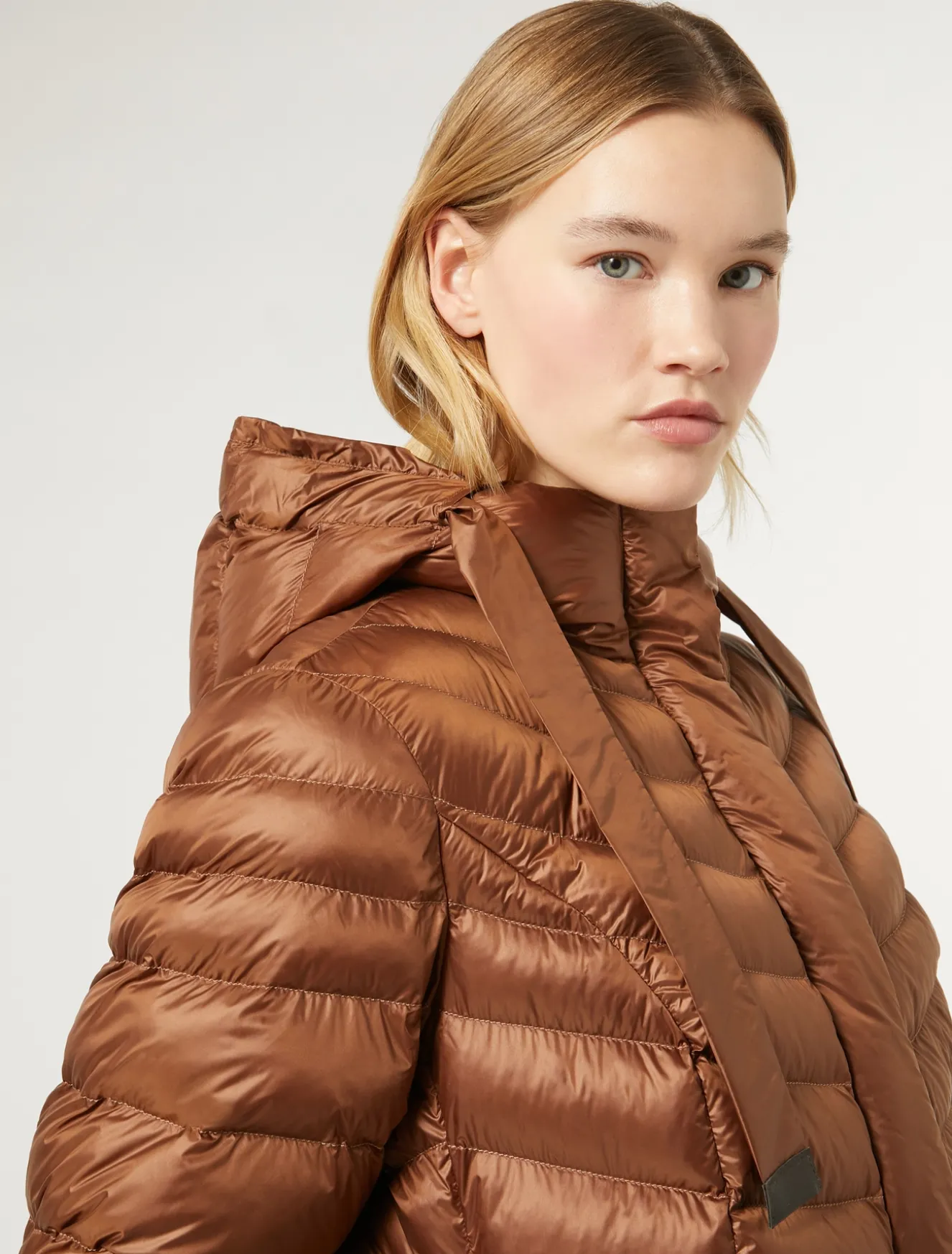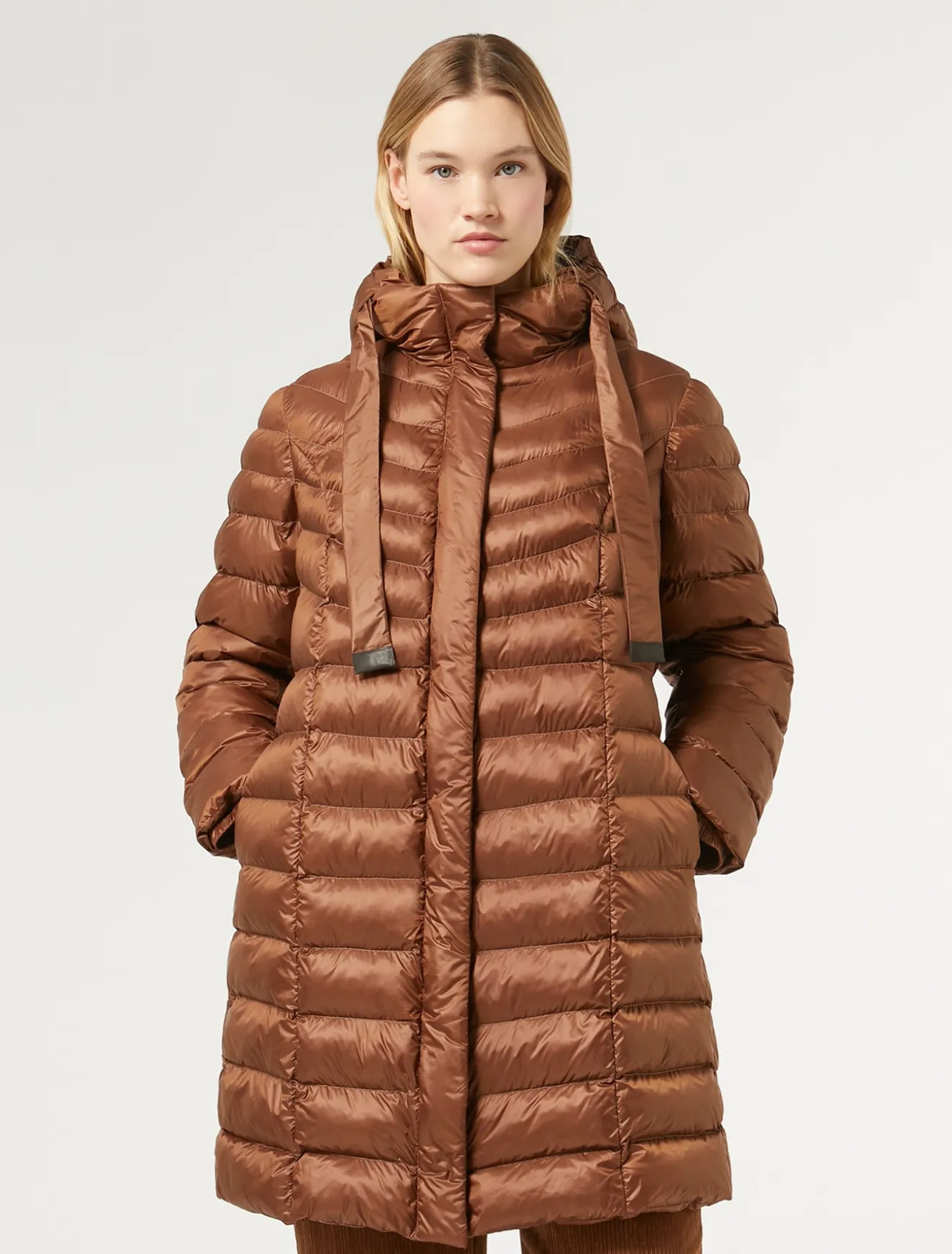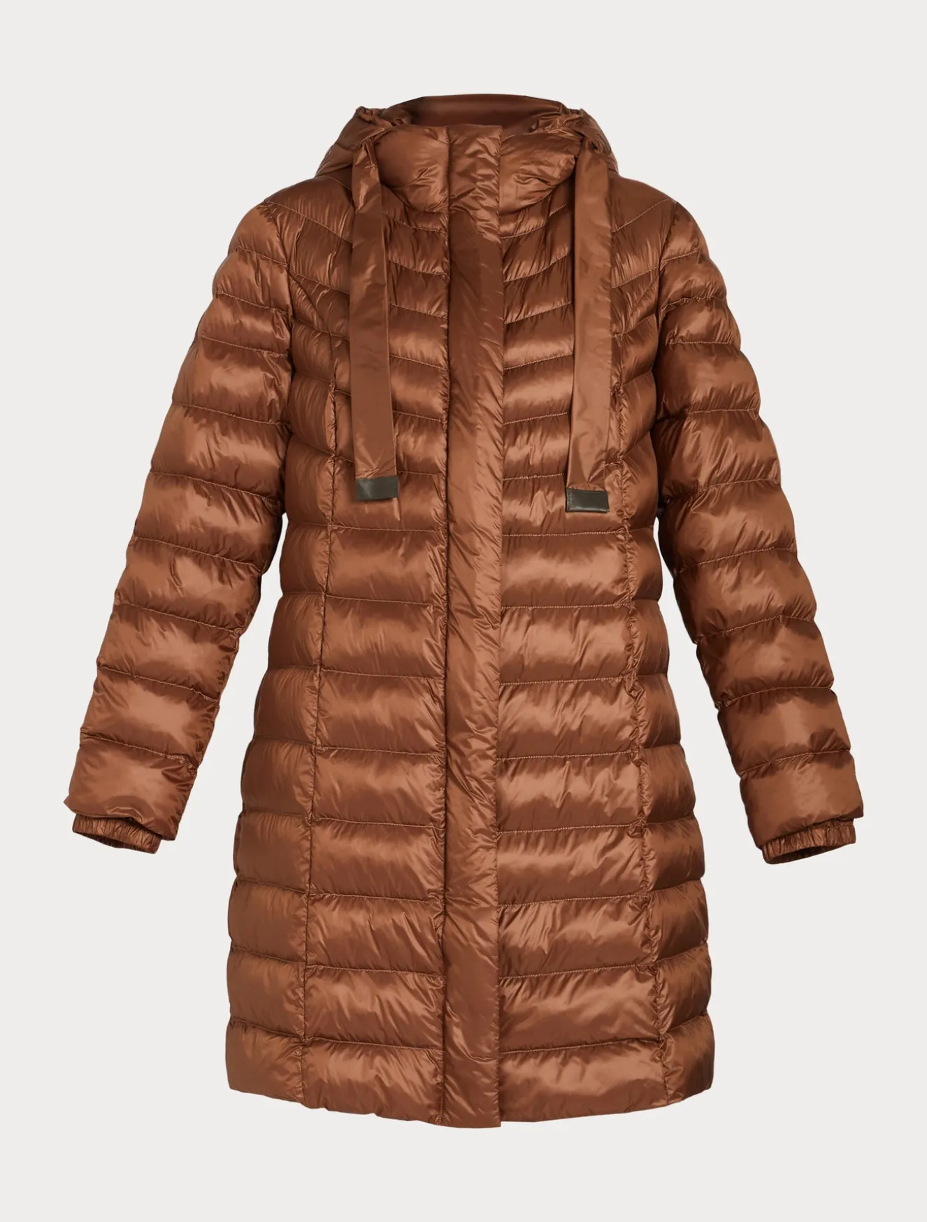 Die gedoppelte Robenjacke aus wasserabweisendem Canvas besitzt ergonomischens Steppmuster auf dem oberen Teil, das die Silhouette verlängert. Die Luxepad Ultra Fine Insulating Technology-Wattierung wurde entwickelt, um auch an kalten Tagen für eine optimierte Körpertemperatur zu sorgen.Das Kleidungsstück ist Teil der Kollektion „Voyage“.