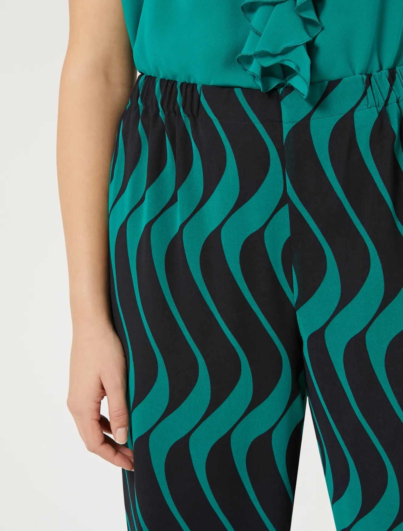 Diese leichte Hose aus Georgette hat eine gerade Passform, einen Elastikbund und ein Innenfutter für eine besonders bequeme Passform.Das Kleidungsstück ist Teil der Kollektion Persona by Marina Rinaldi.