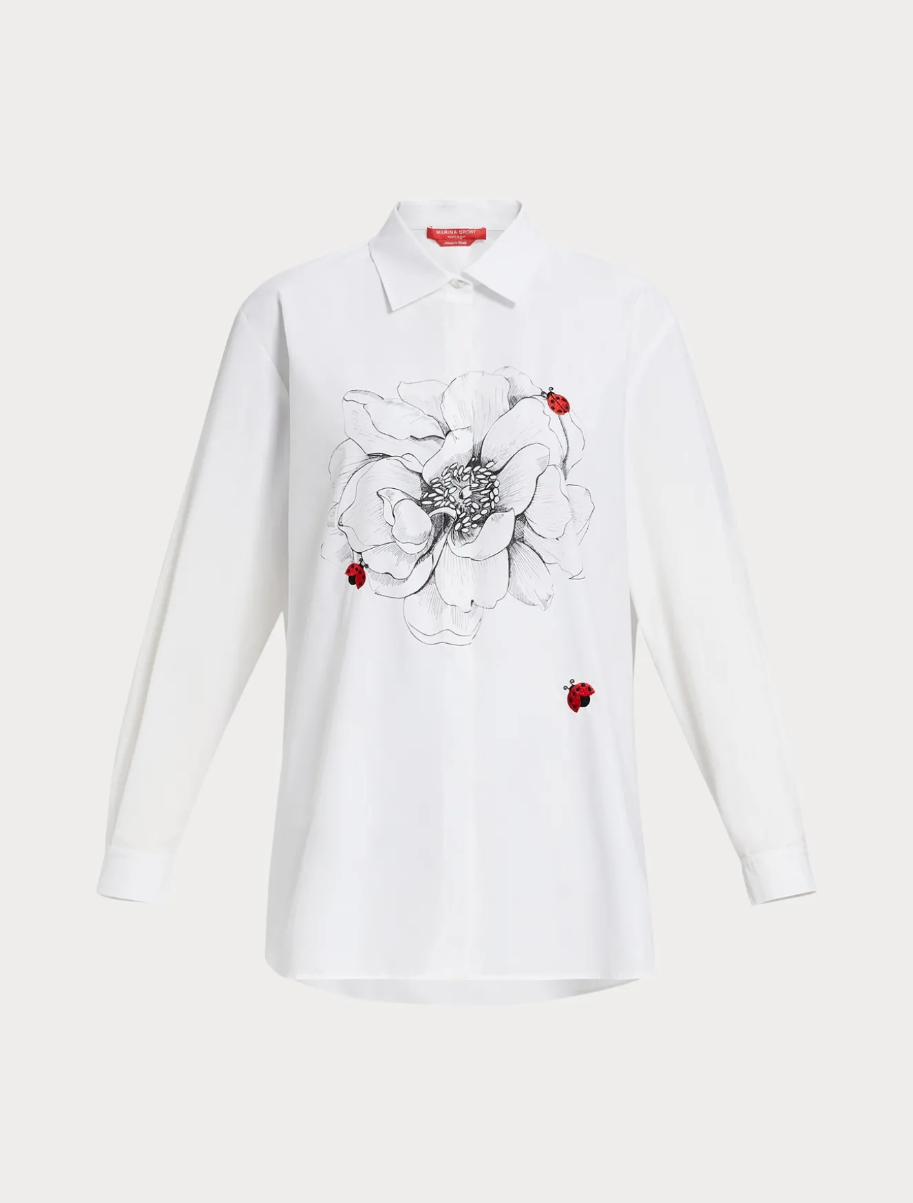 Dieses gerade geschnittene Hemd aus Baumwollpopeline zeichnet sich durch einen exklusiven Print und eine dekorative Stickerei aus. Ein raffiniertes Modell, um deine Alltagslooks aufzufrischen.Das Kleidungsstück ist Teil der Kollektion Marina Sport.