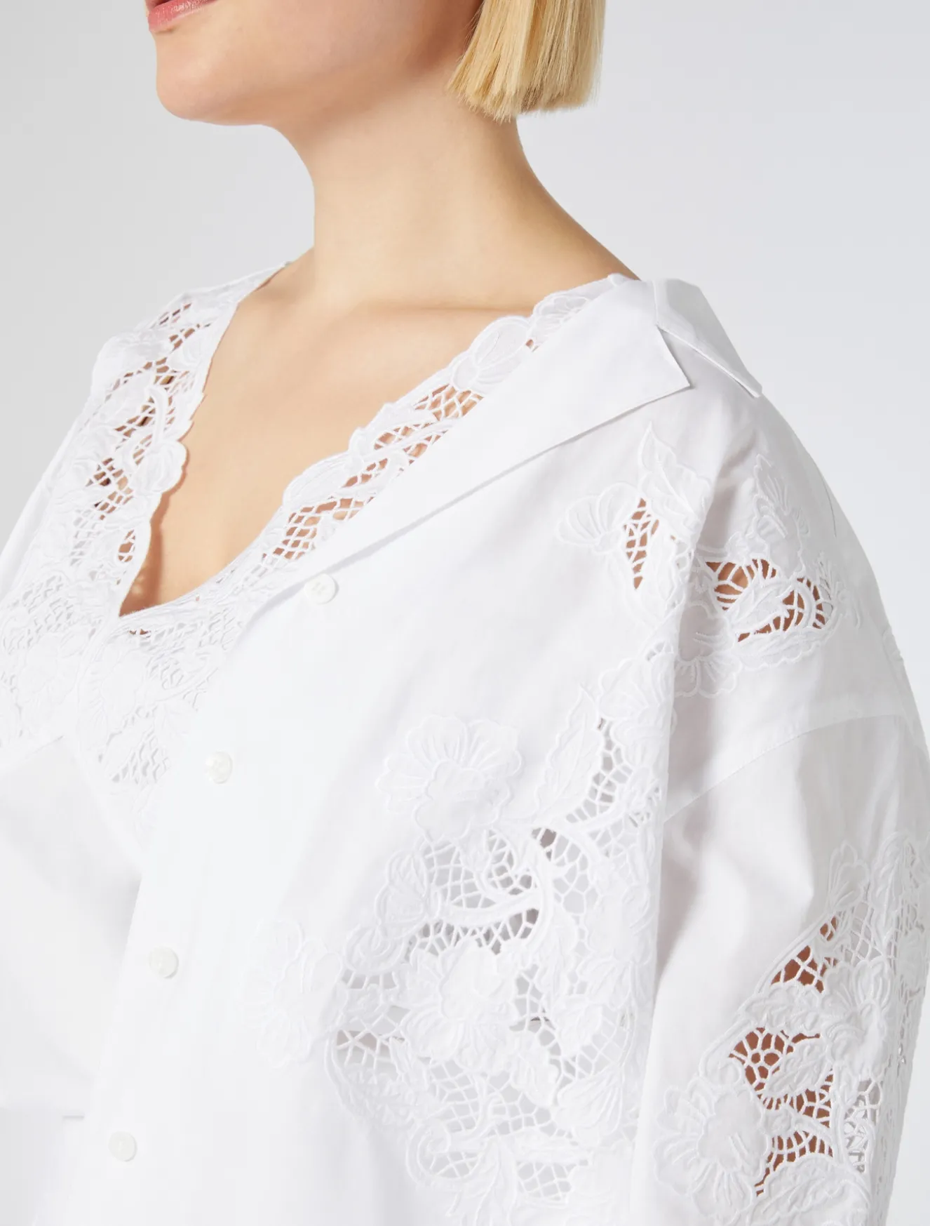 Die edle Stickerei mit Lochmuster macht diese Hemdbluse aus Baumwollpopeline in Boxy Fit einzigartig. Einfach nur hineinschlüpfen um jeden Look im Handumdrehen aufzuwerten.