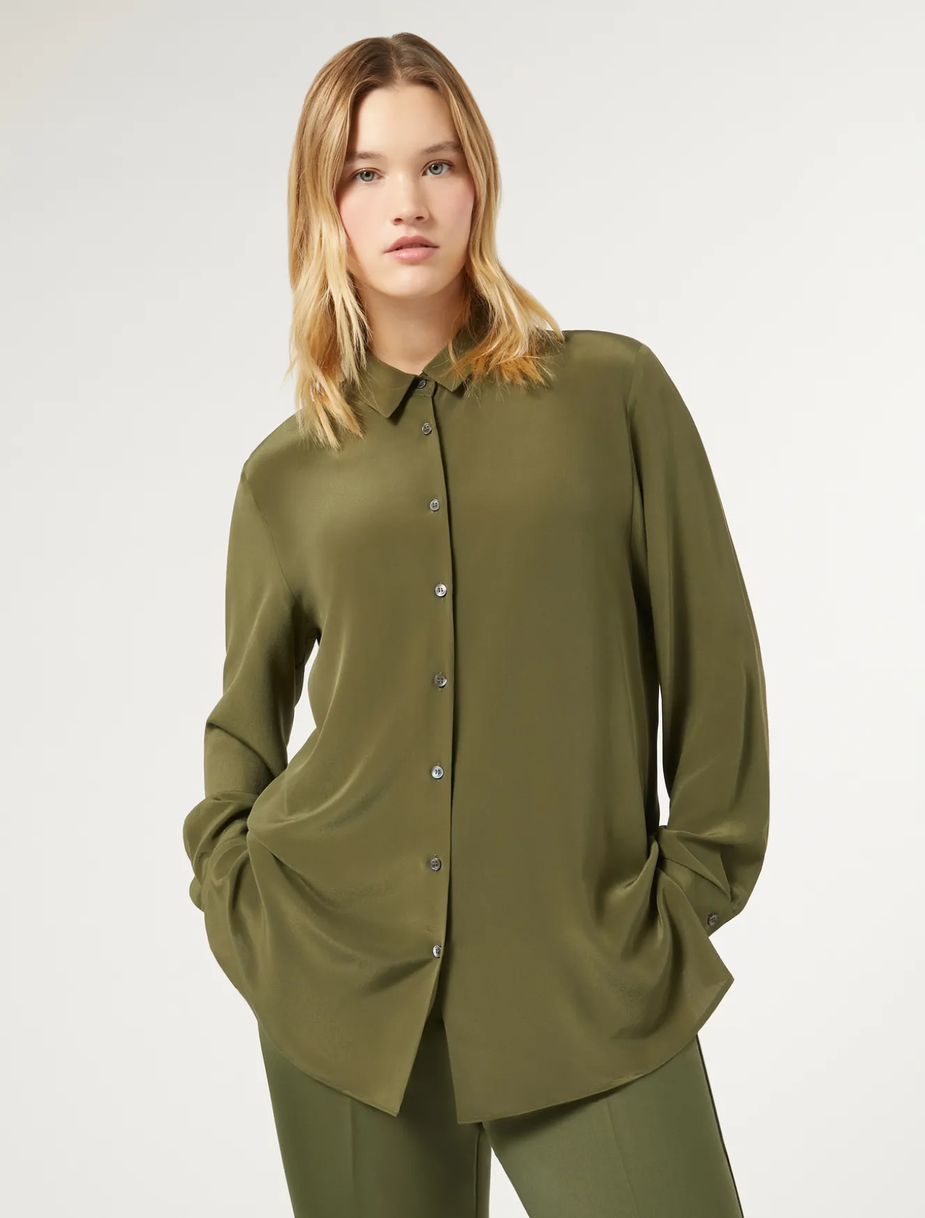 Gerade geschnittene Hemdbluse aus edlem Seiden-Crêpe-de-Chine. Das Gewebe ist pflegeleicht und kann mit Wasser gewaschen werden. Ein Must-have, das für eine Extraportion Eleganz sorgt.Das Kleidungsstück ist Teil der Kollektion „Voyage“.