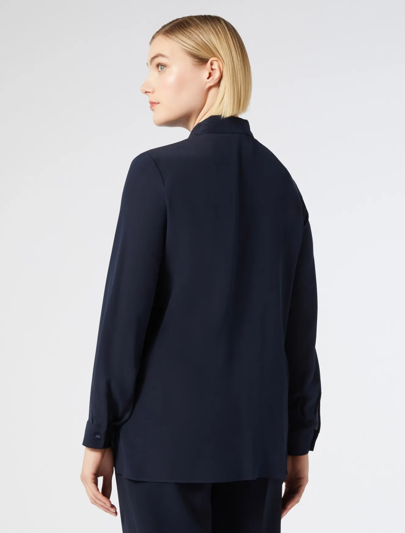 Diese gerade geschnittene Hemdbluse aus Seiden-Crêpe-de-Chine lässt sich leicht kombinieren. Das Gewebe ist pflegeleicht und kann mit Wasser gewaschen werden. Ein eleganter Joker mit schlichter Eleganz. Dieses Kleidungsstück ist Teil der Kollektion Easy by Marina Rinaldi.
