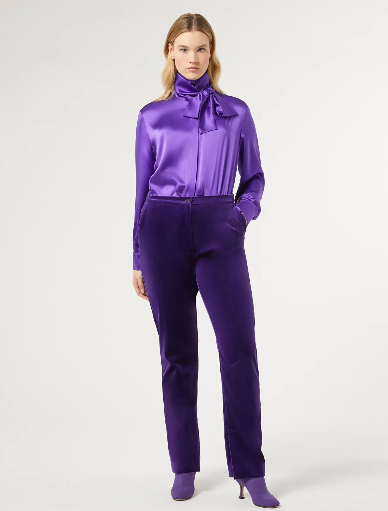Dieses Hemd aus reinem Seidensatin mit Schalkragen zum Binden gehört einfach in jeden Kleiderschrank. Perfekt geeignet, um einer Vielzahl von Stilen gerecht zu werden.Dieses Modell gehört zur Hauptkollektion von Marina Rinaldi.