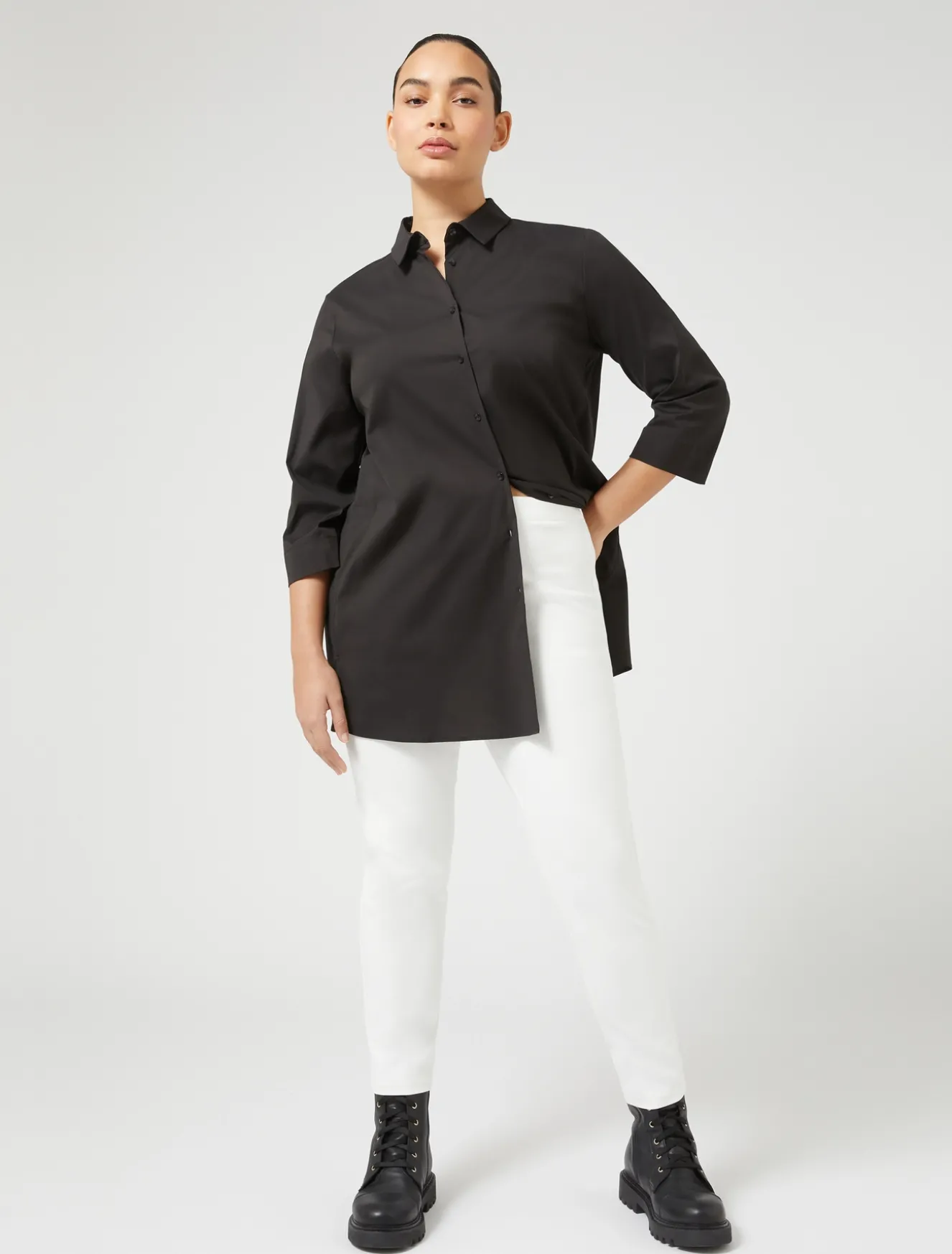 Gerade geschnittene Hemdbluse aus Baumwollpopeline und Nylon-Stretch mit Passepartout-Eigenschaften. Ein eleganter Joker mit schlichter Eleganz. Dieses Kleidungsstück ist Teil der Kollektion Easy by Marina Rinaldi.